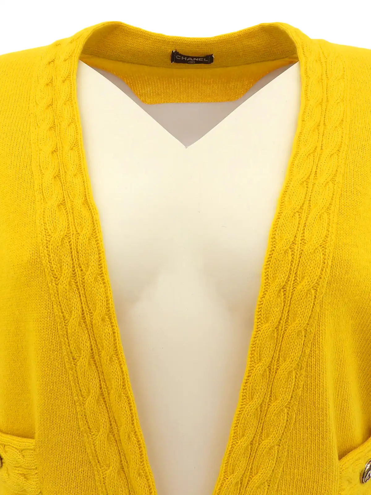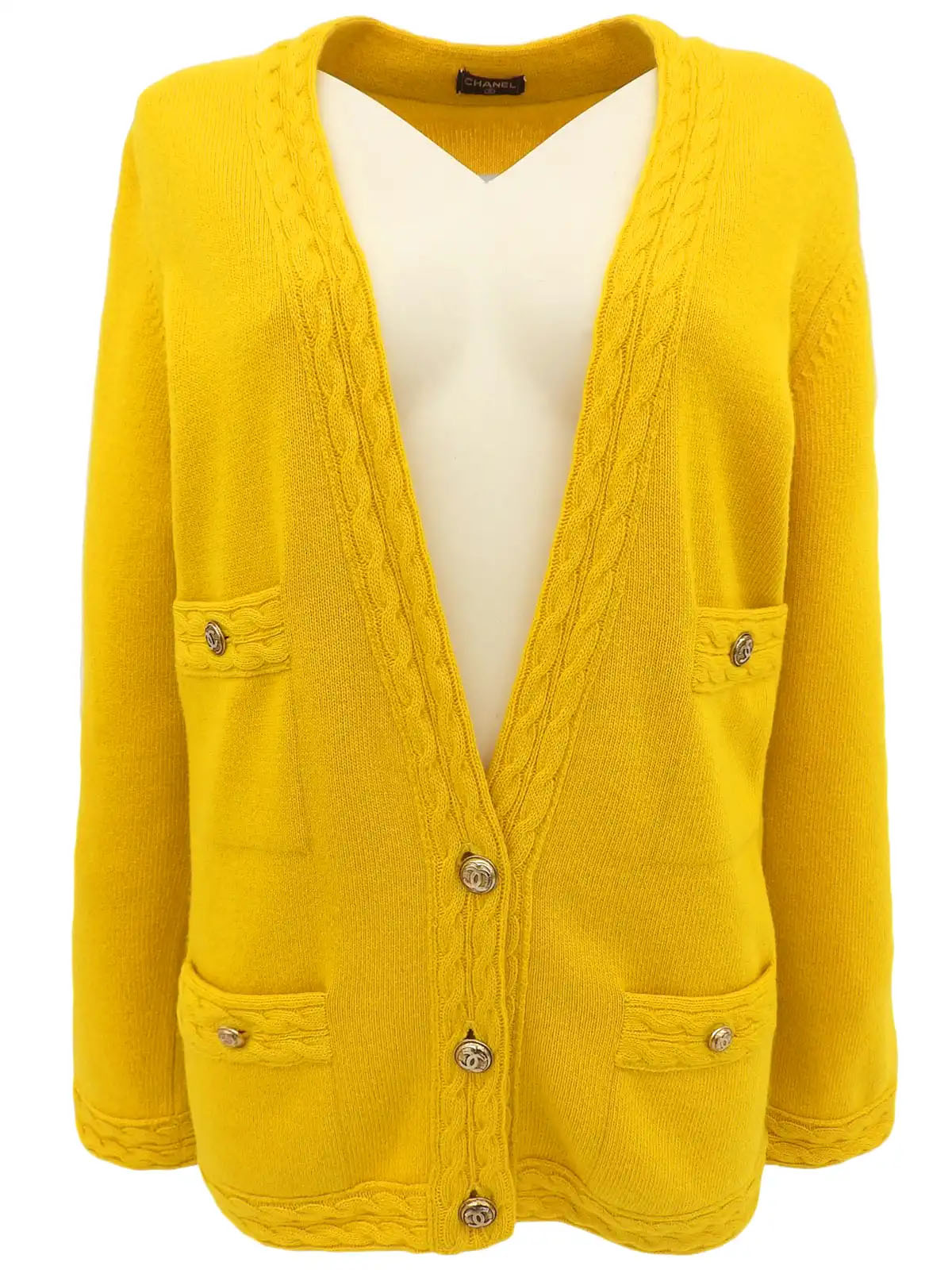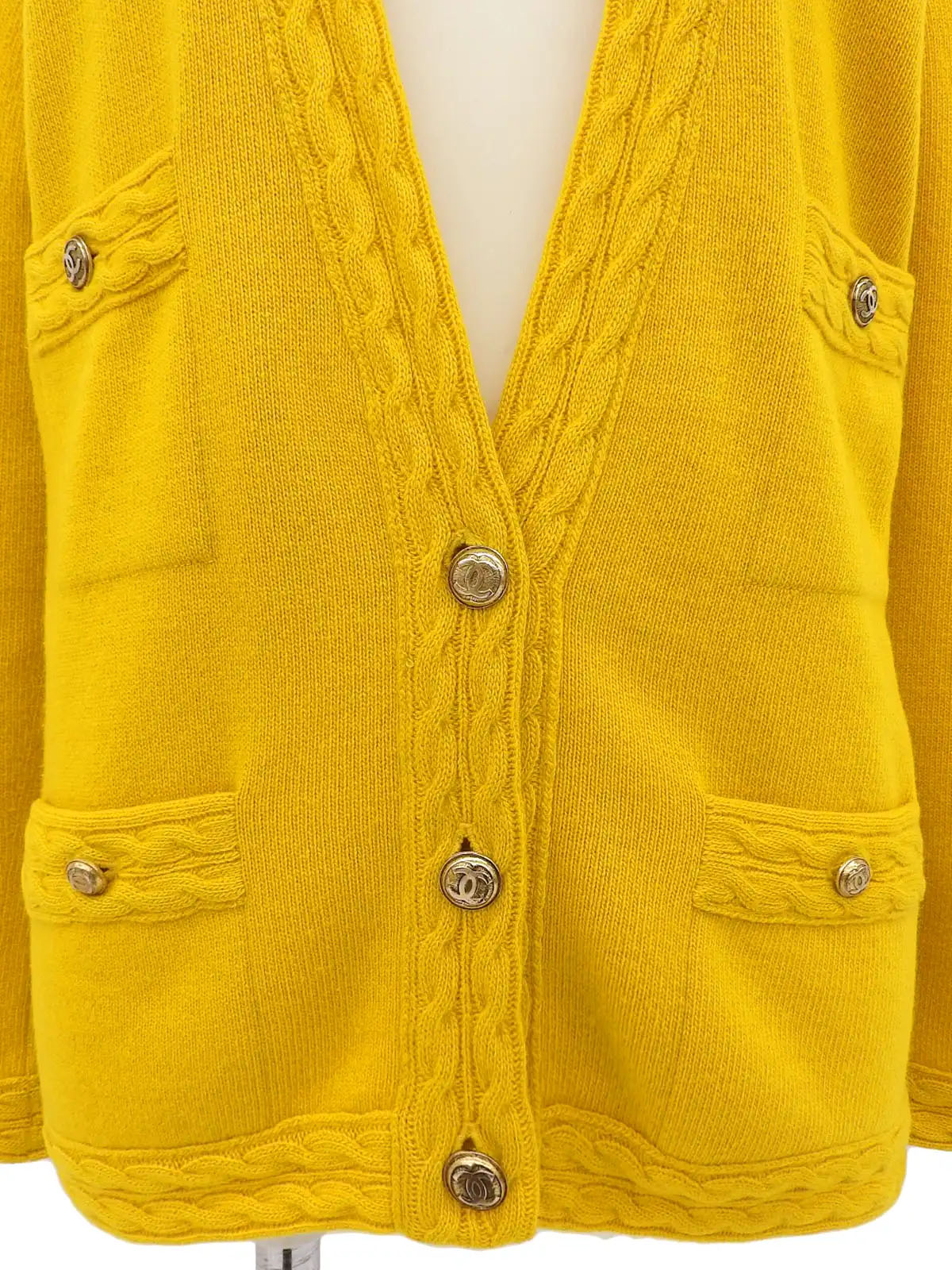 カシミアCCマークボタンカーディガン イエロー