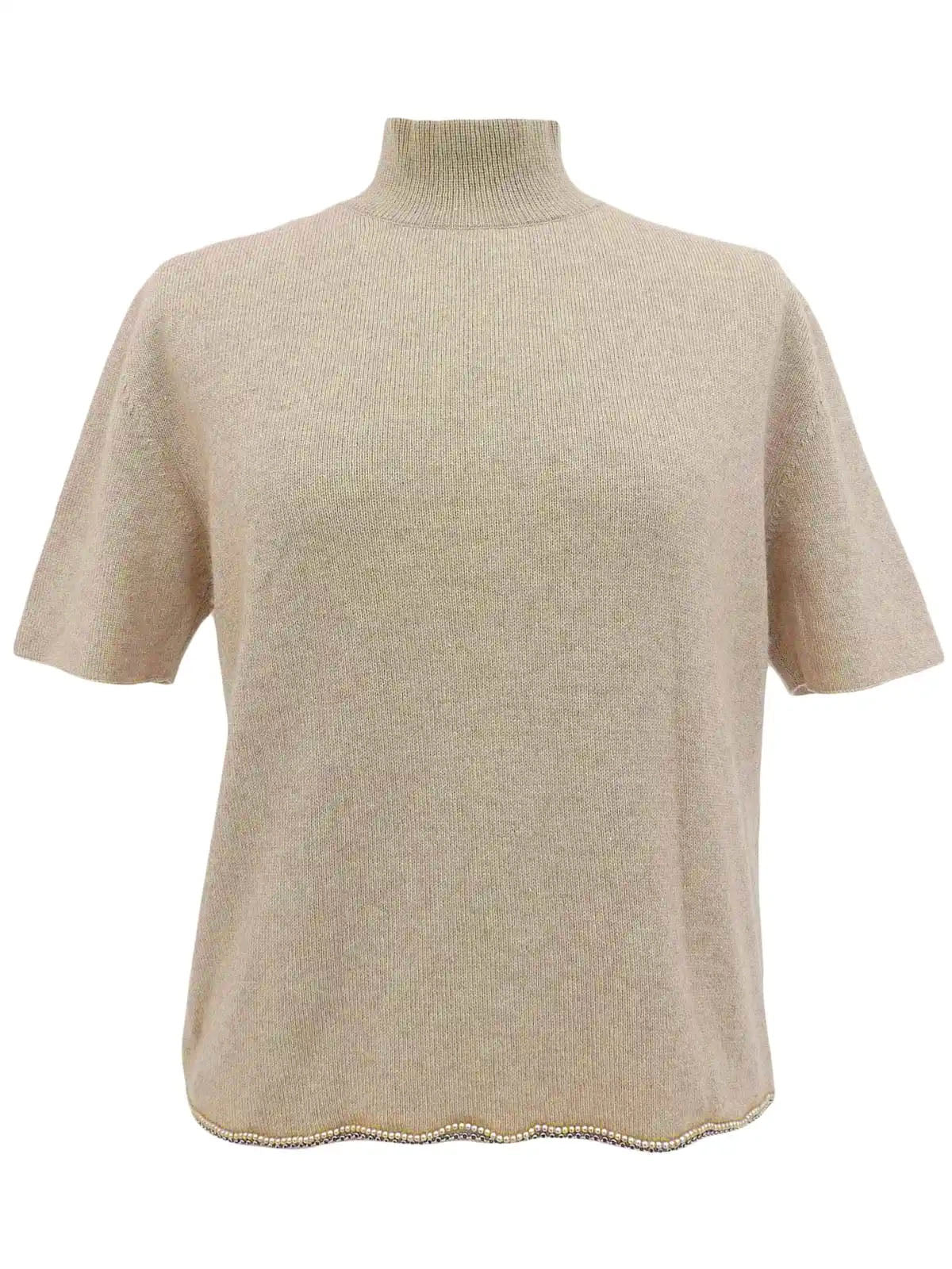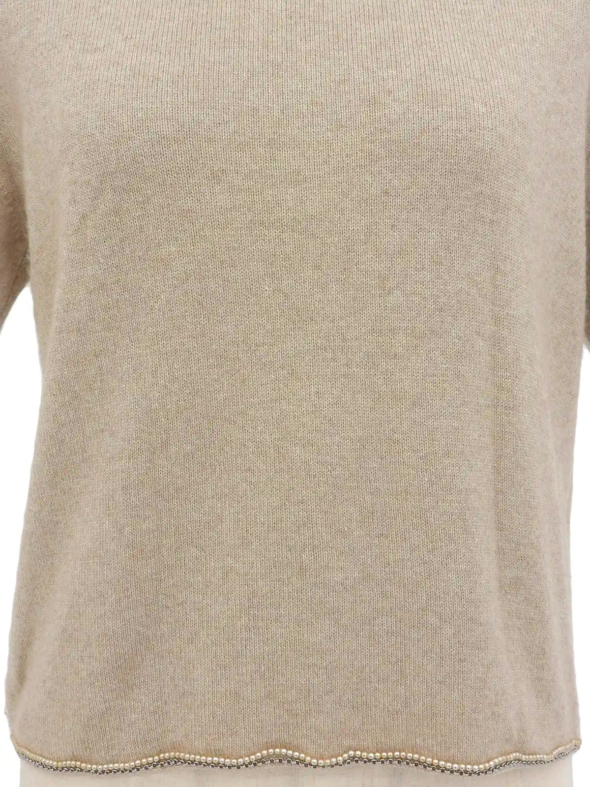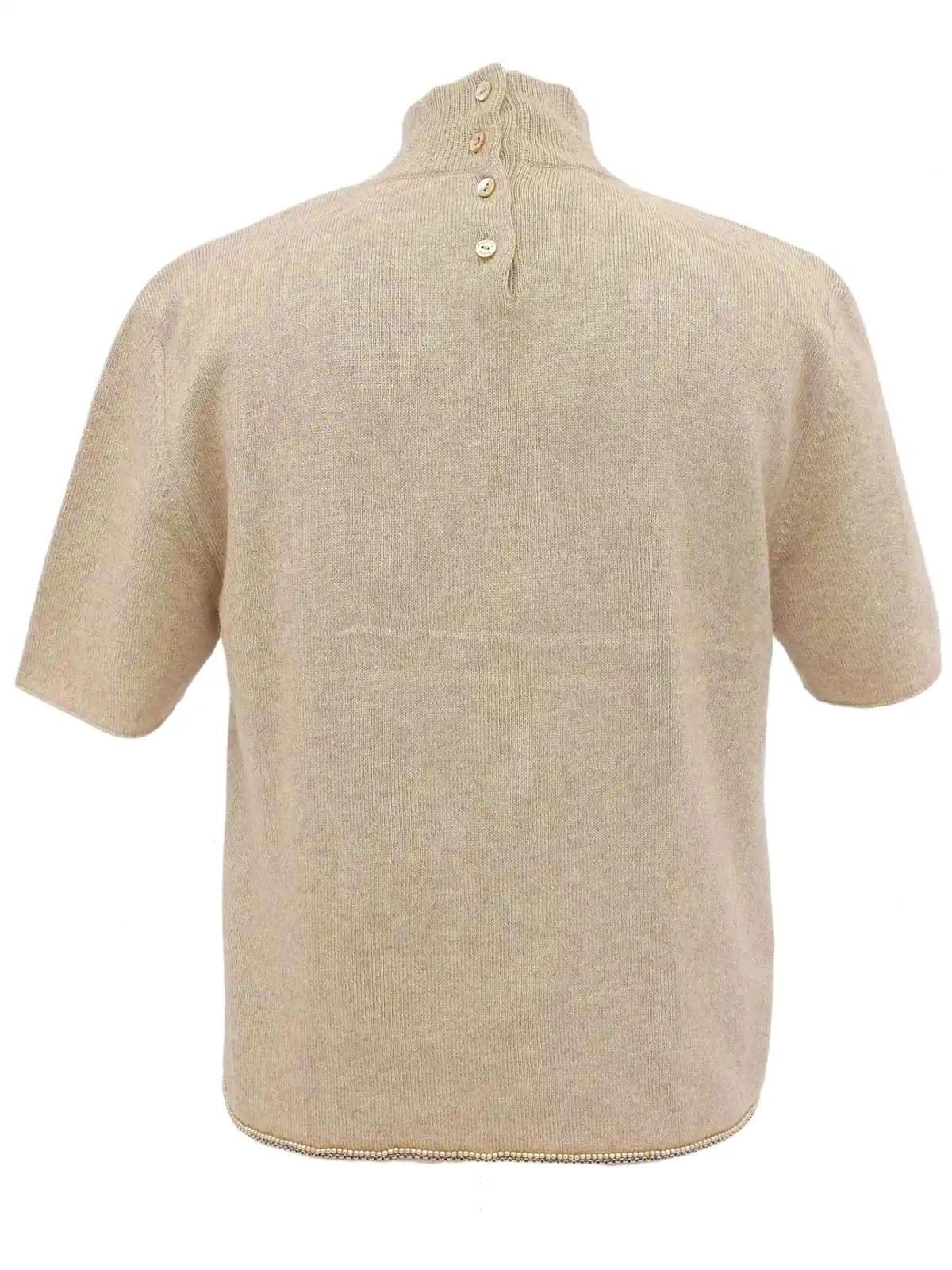 1998年製 パールチェーンデザインロゴボタンハーフスリーブニットトップス ライトベージュ