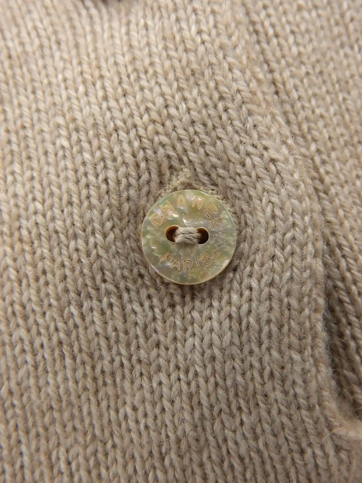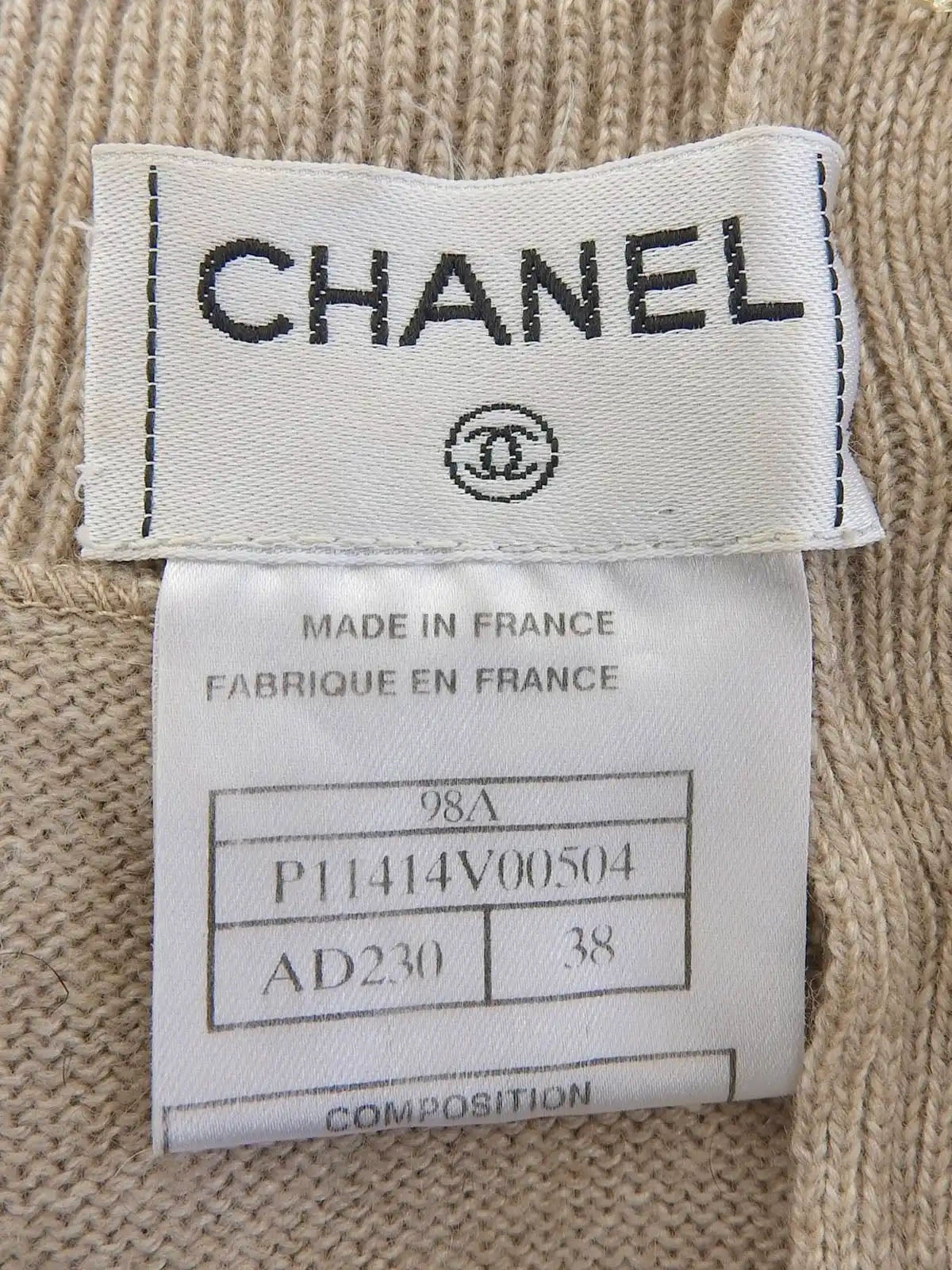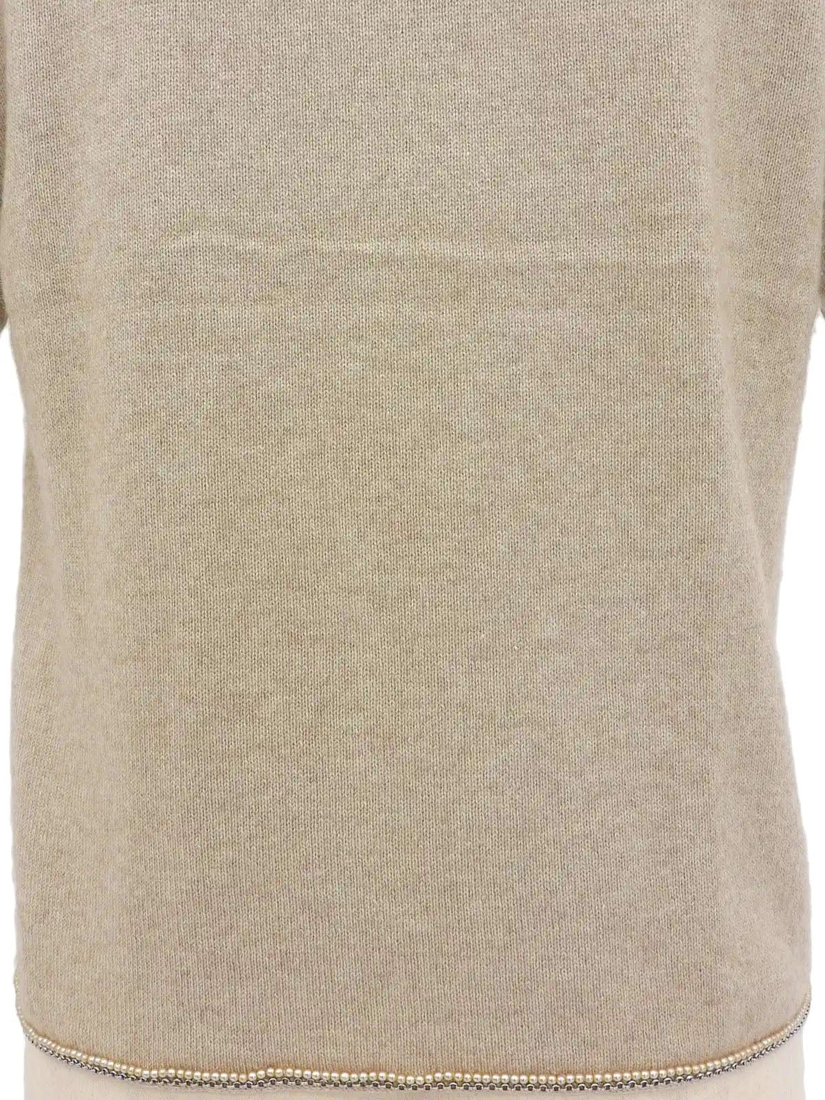 1998年製 パールチェーンデザインロゴボタンハーフスリーブニットトップス ライトベージュ