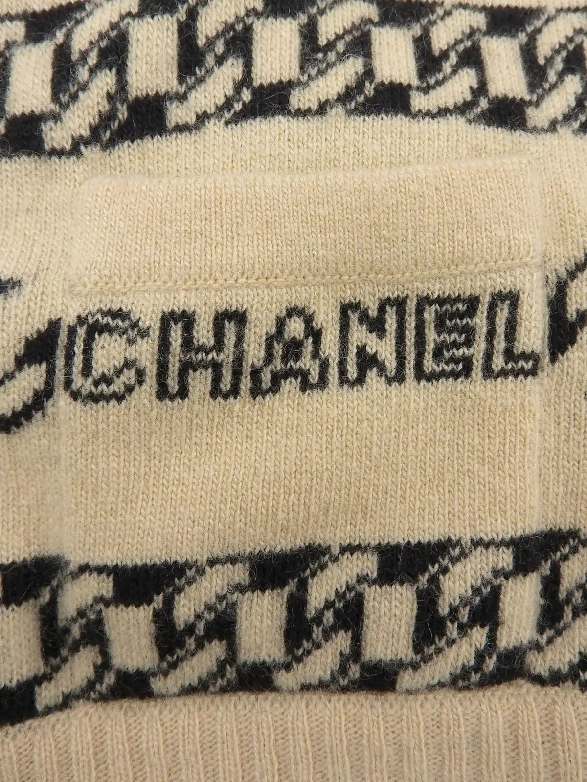 2001年製 カシミアロゴチェーンボーダーパターンニットトップス ベージュ