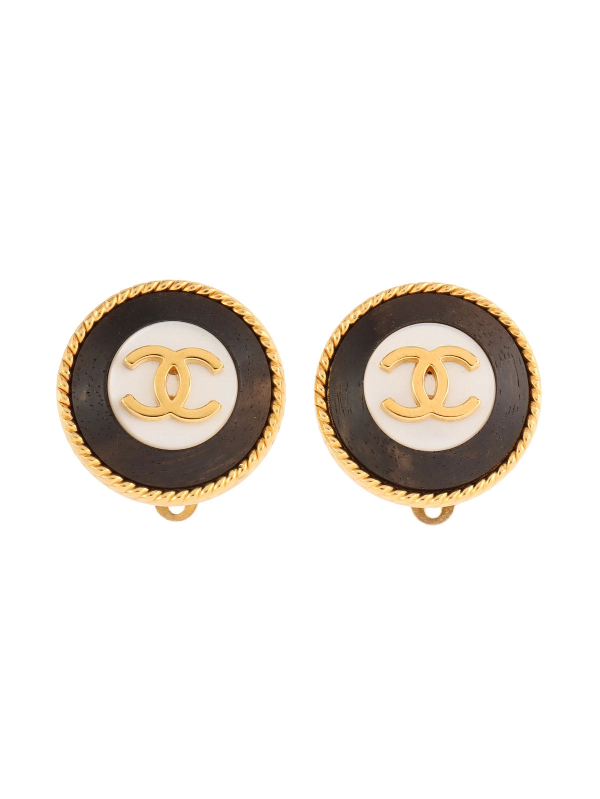 1997年製 ラウンドウッドシェルCCマークイヤリング ゴールド/ブラック/ホワイト