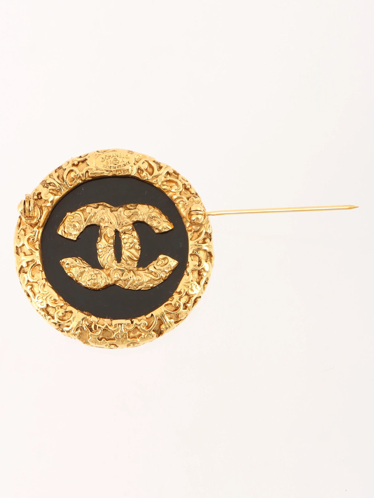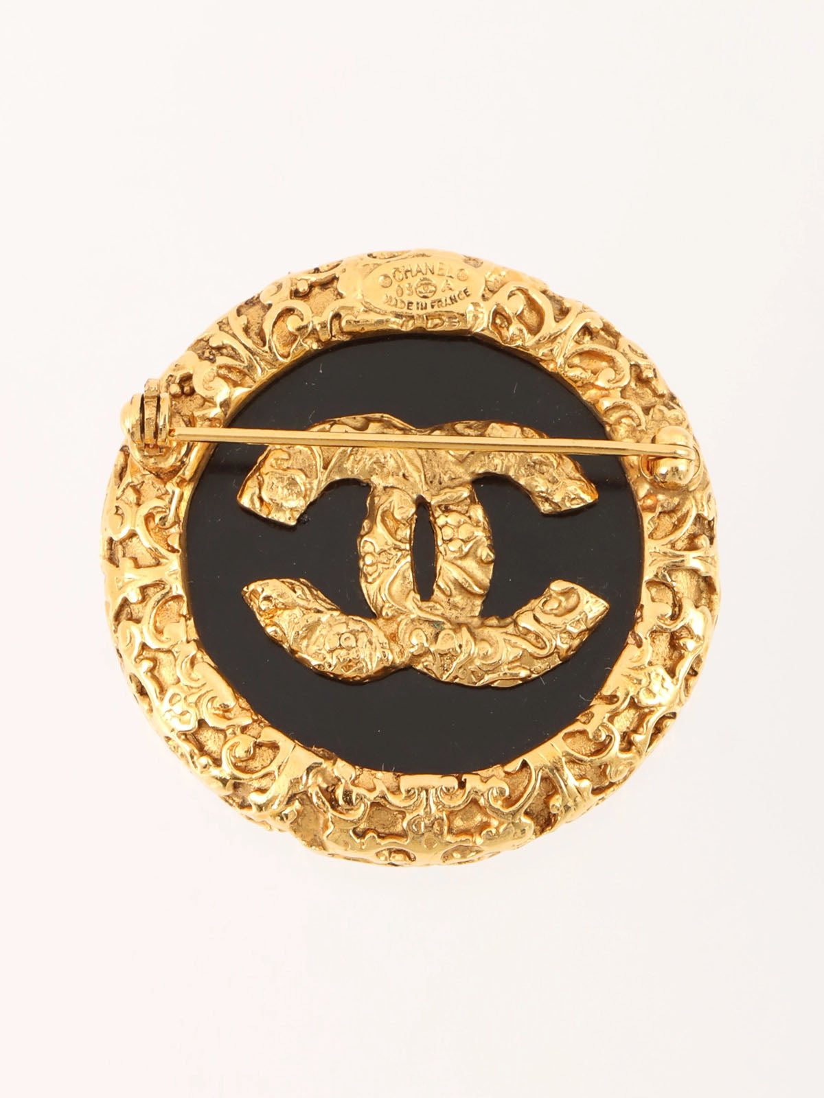 1993年製 ラウンドデザインCCロゴブローチ ブラック/ゴールド