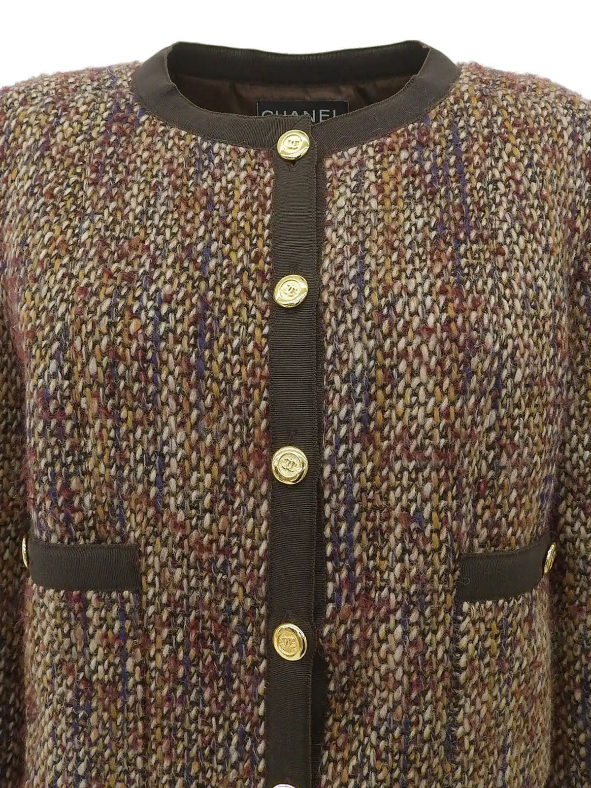 ツイードCCマークノーカラージャケット ブラウン/マルチ