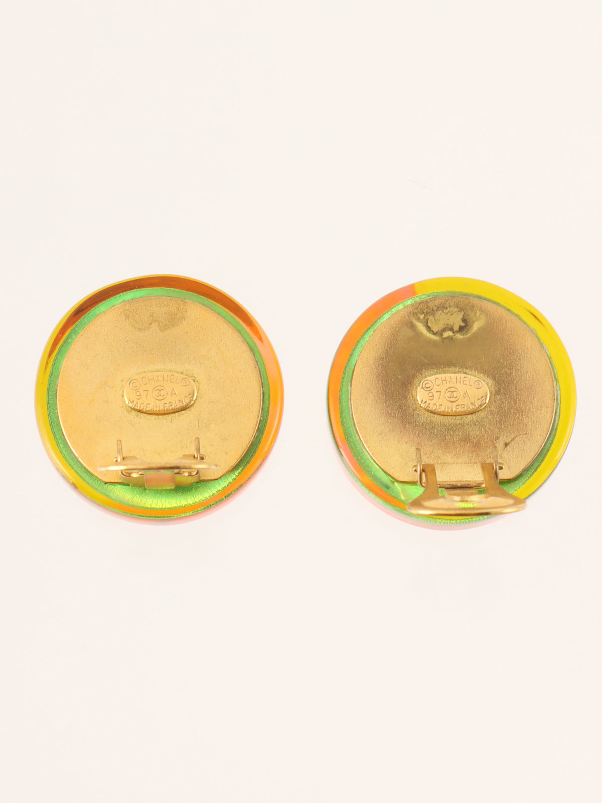 1997年製 オーロララウンドCCマークマルチモチーフイヤリング ゴールド/オレンジ