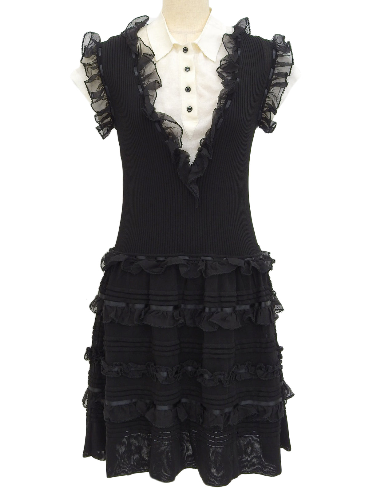 2007年製 バイカラーロゴボタンフリルワンピース ブラック/ホワイト