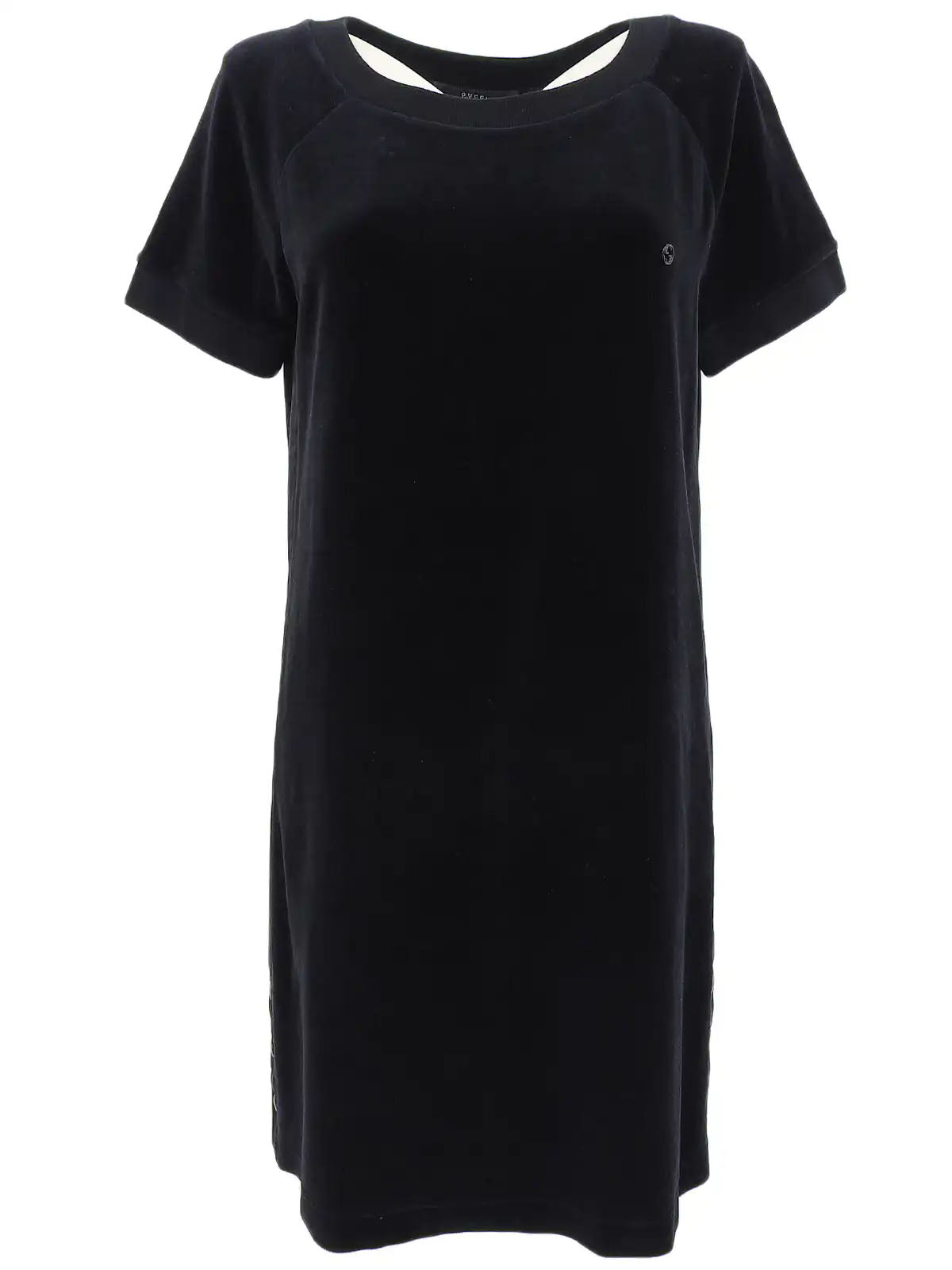 ベロアロゴプレート半袖ワンピース ブラック
