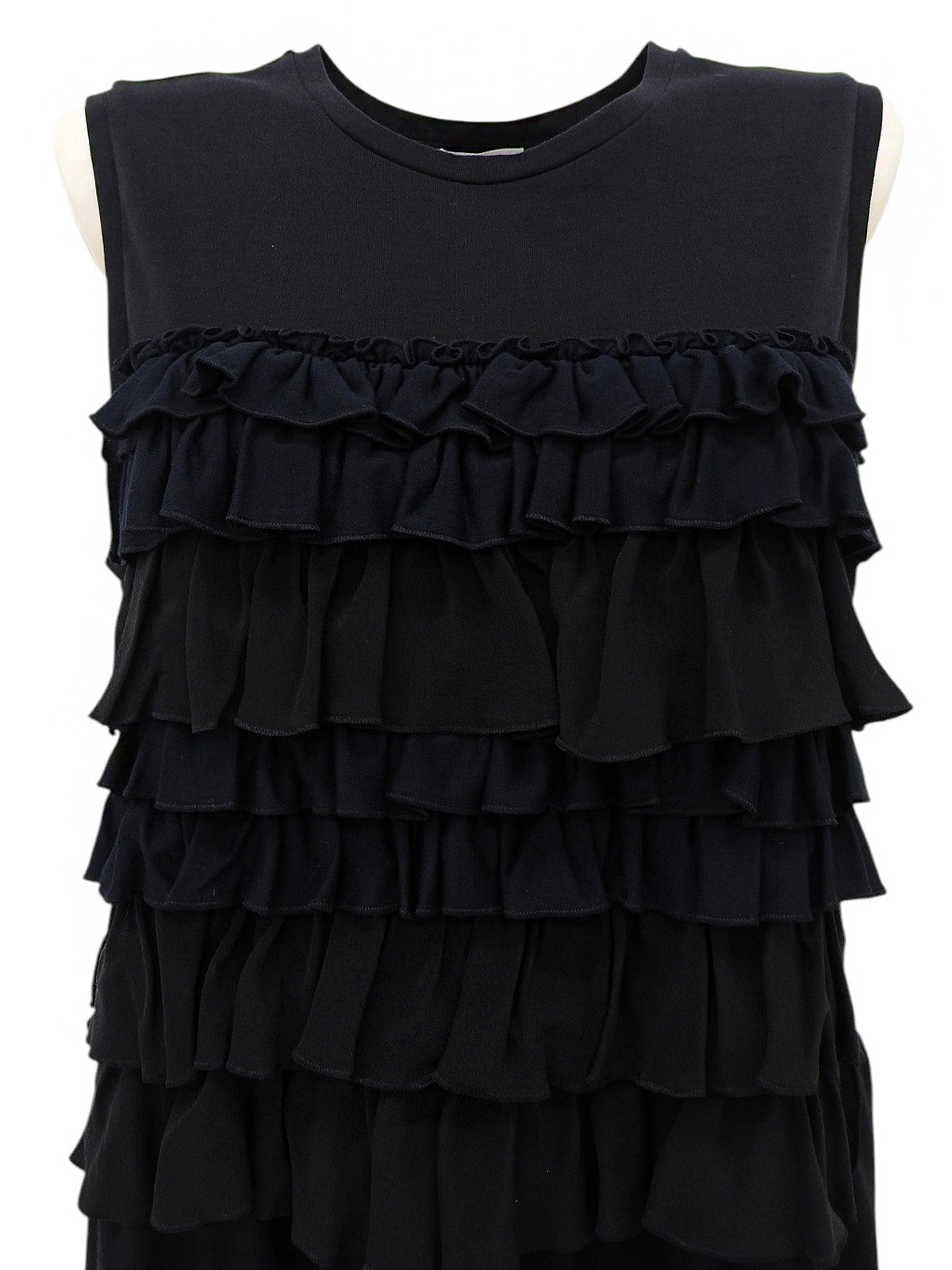 フリルデザインノースリーブワンピース ブラック/ネイビー