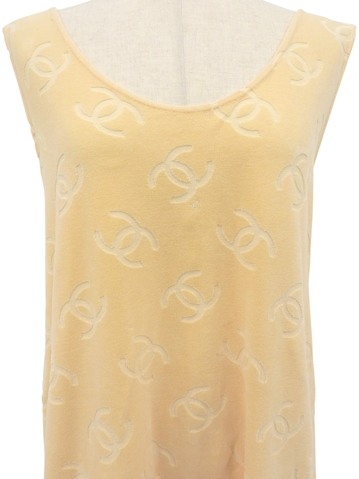 1996年製 ベルベットCCマークノースリーブワンピース クリームイエロー