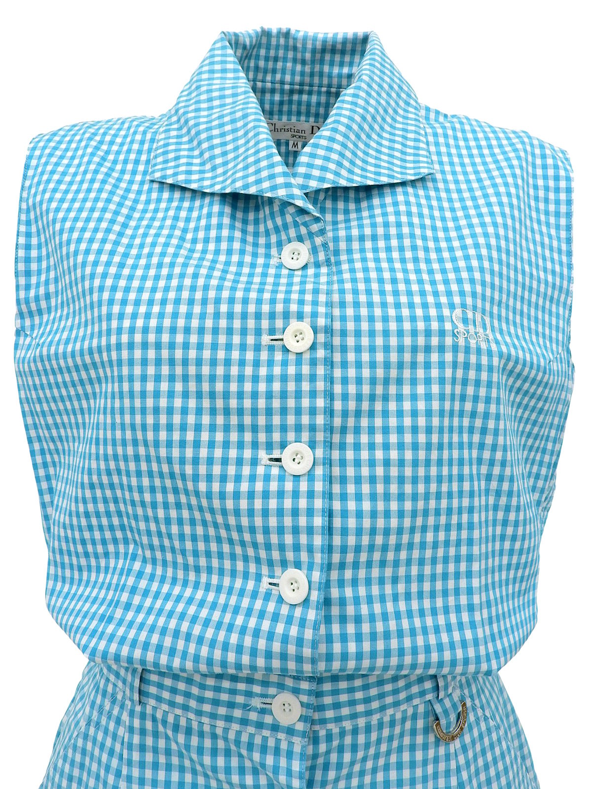 ギンガムチェックパターンロゴ刺繍オールインワン ライトブルー