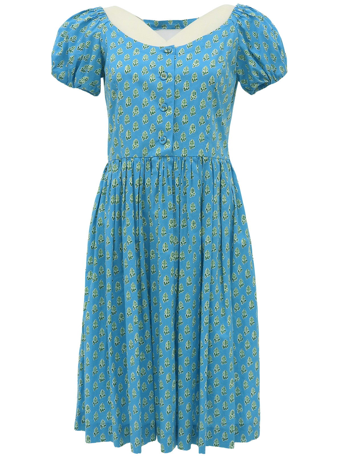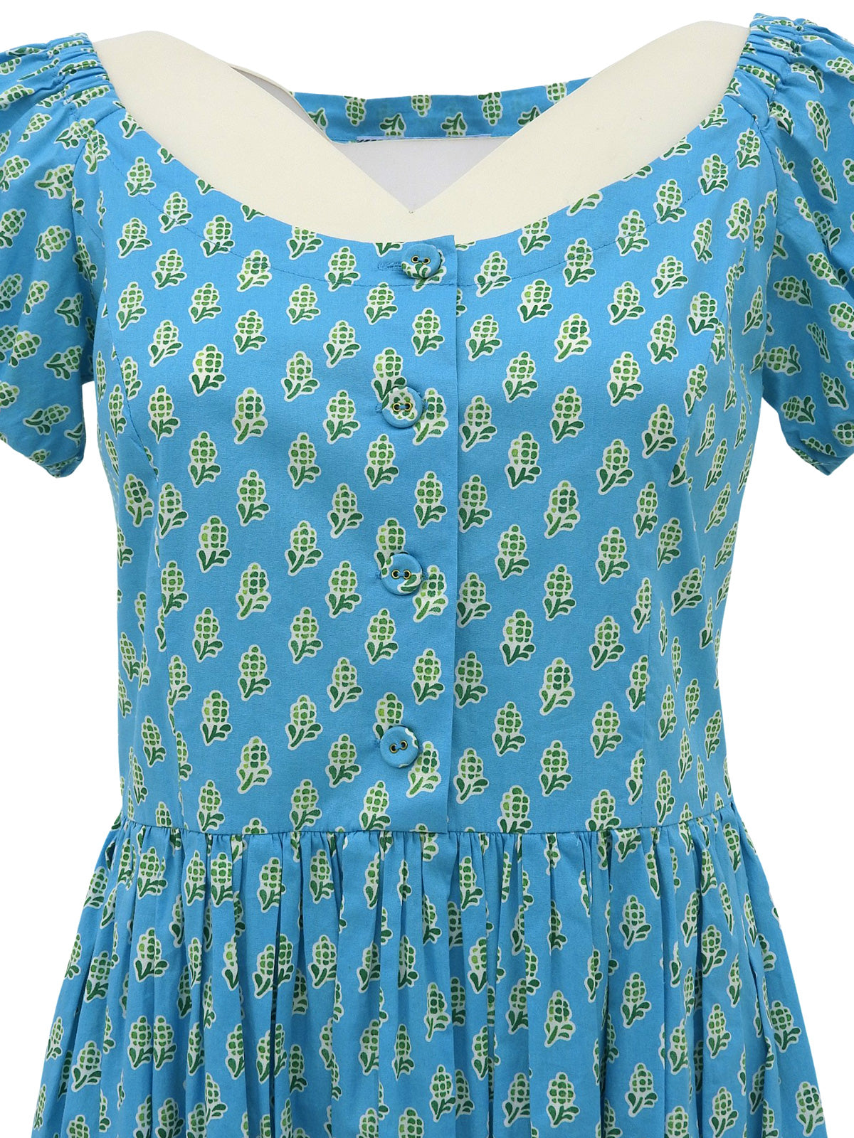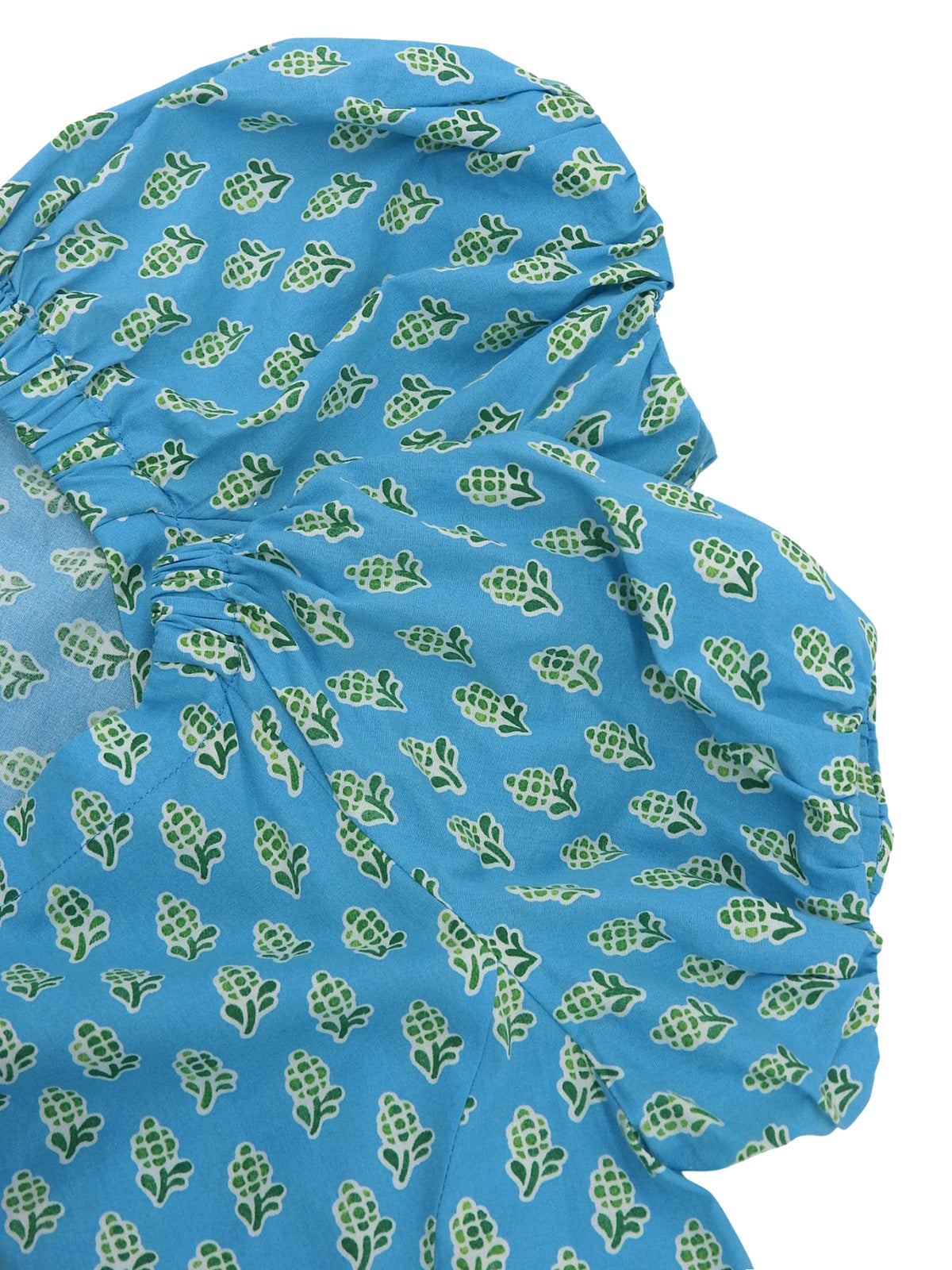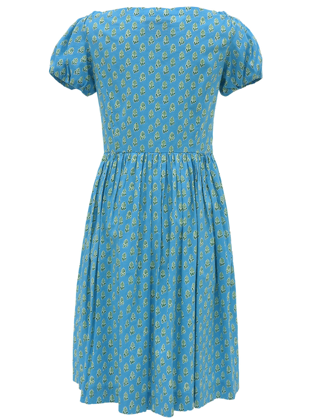 デザインパターンギャザー半袖ワンピース ライトブルー