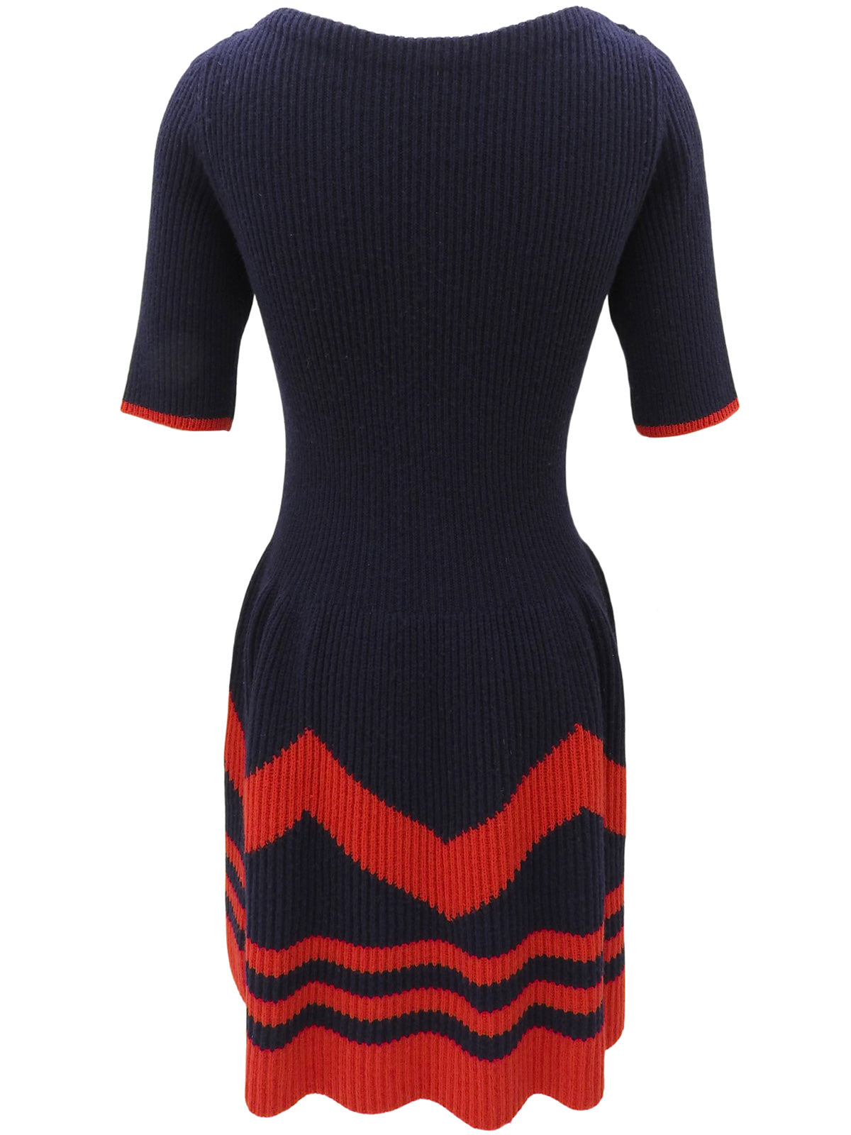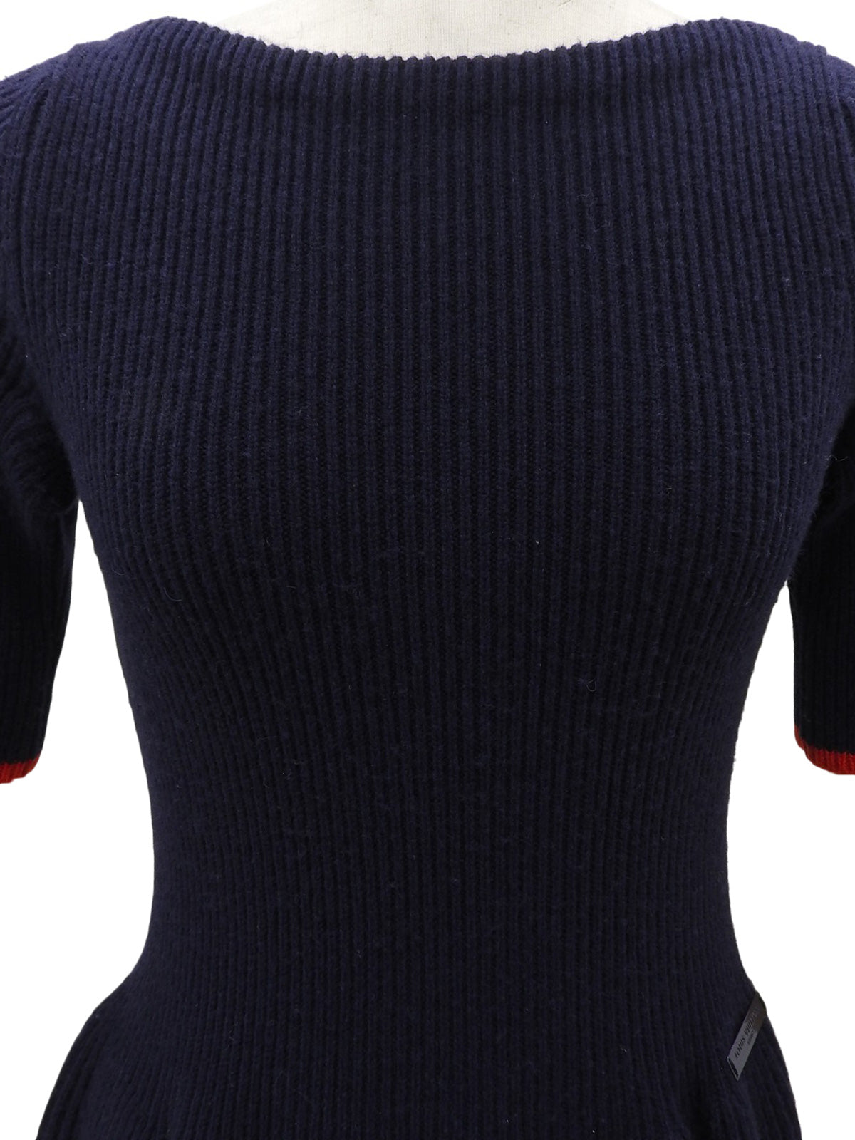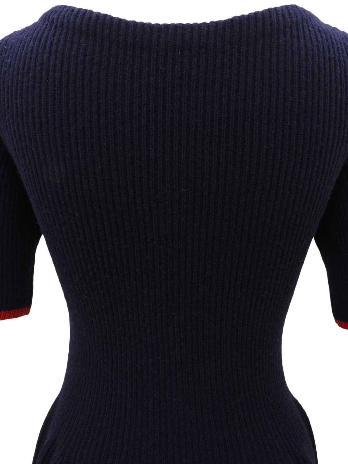 ロゴプレート半袖ニットワンピース ネイビー/レッド