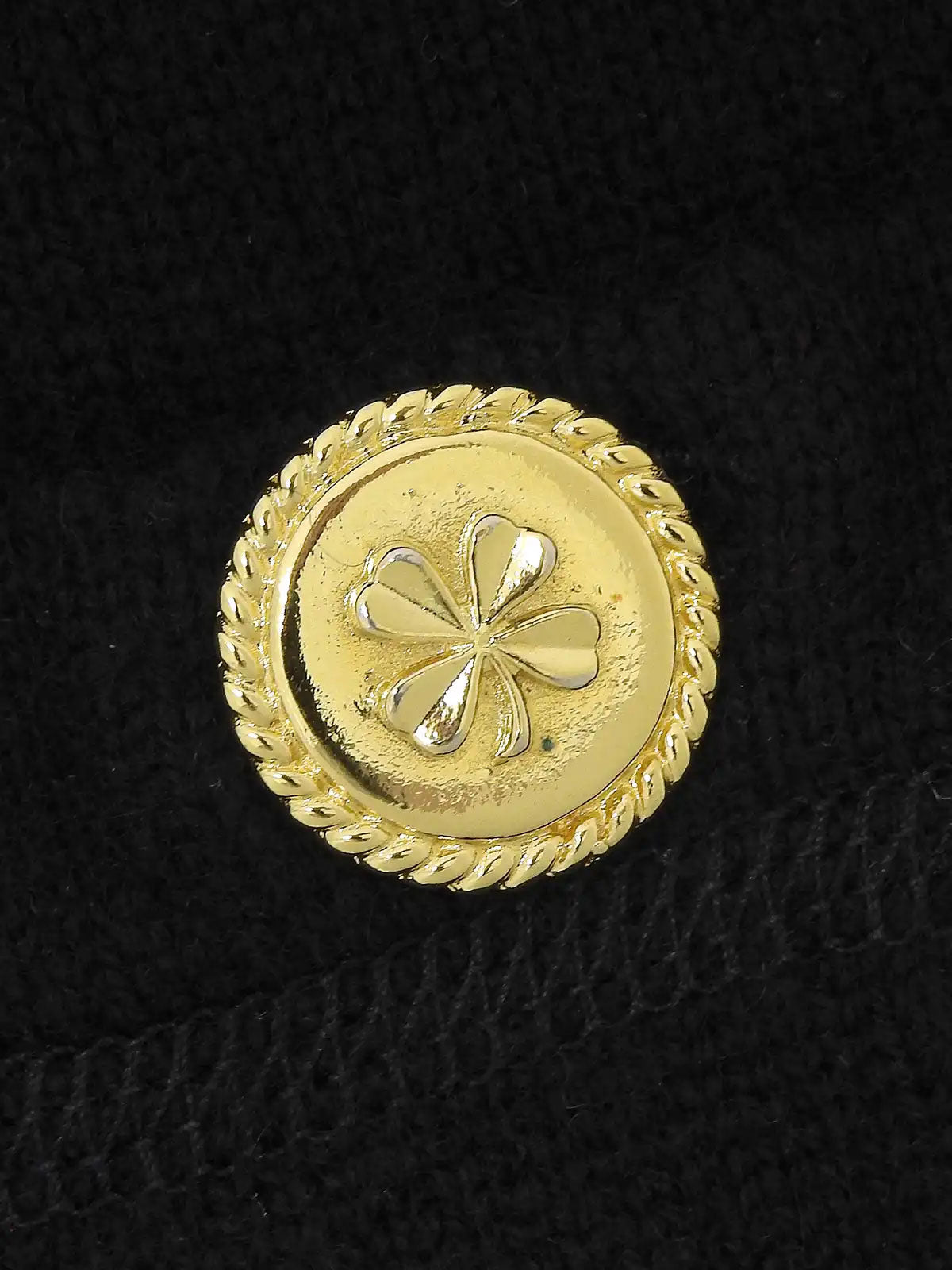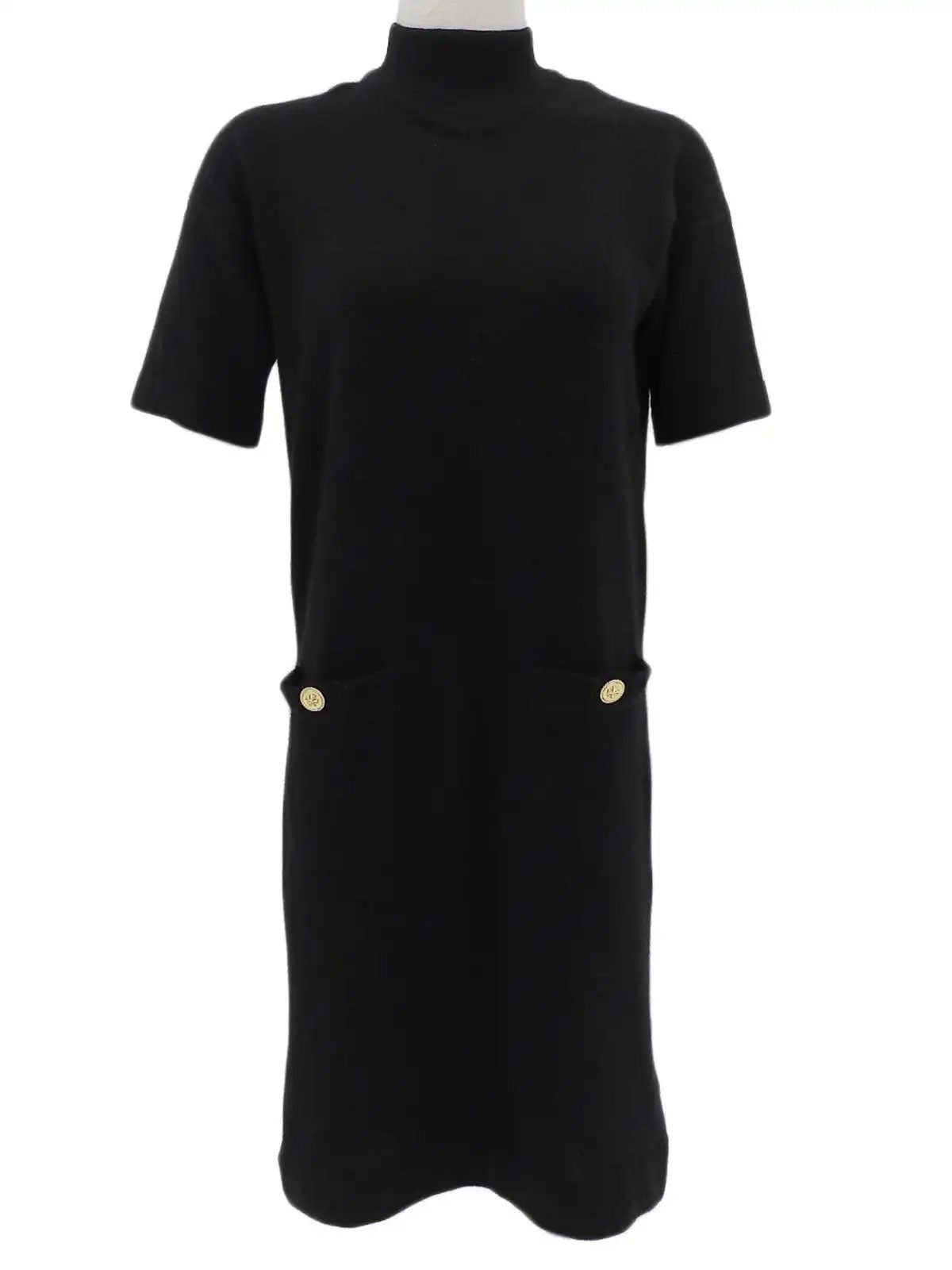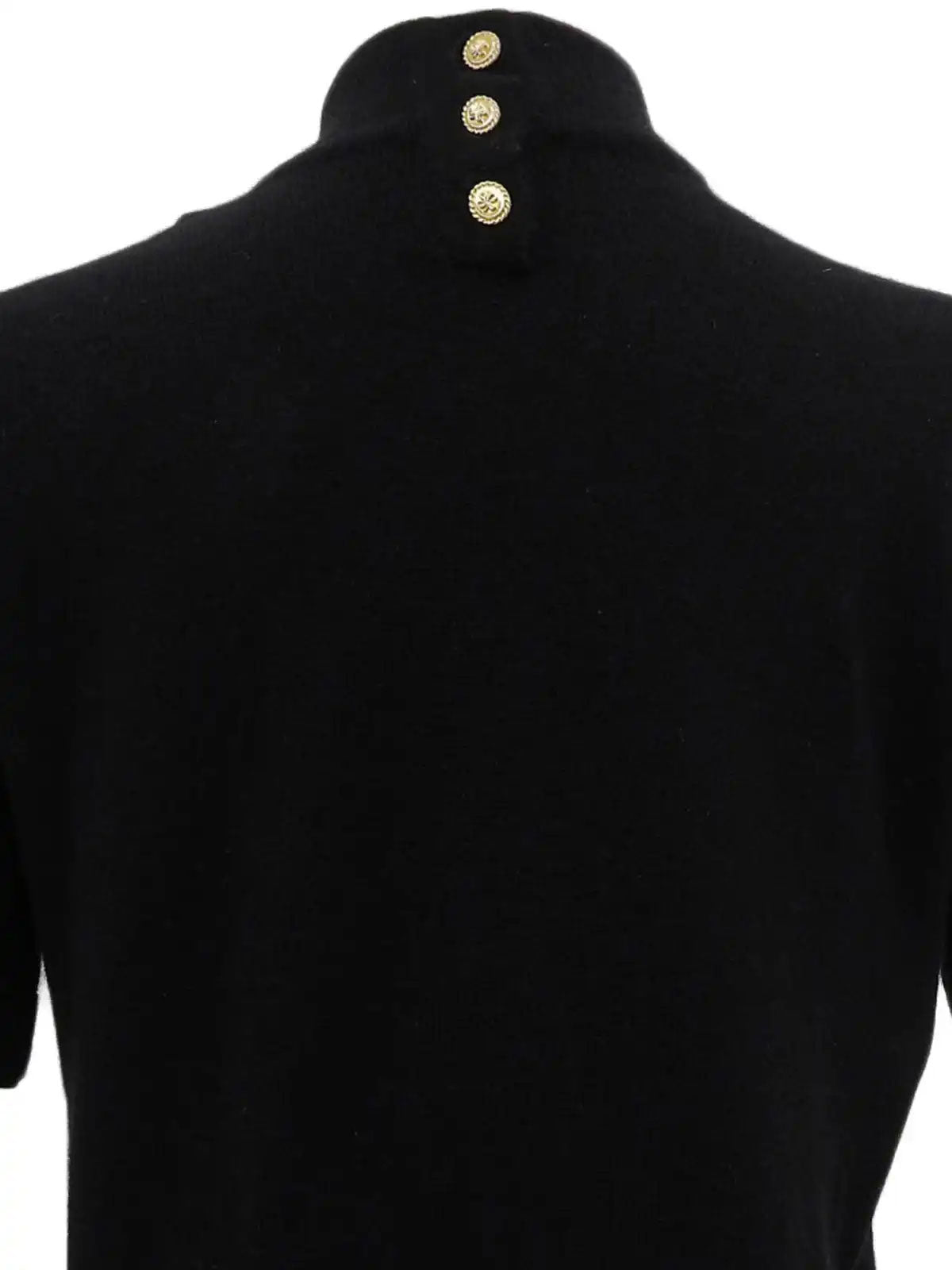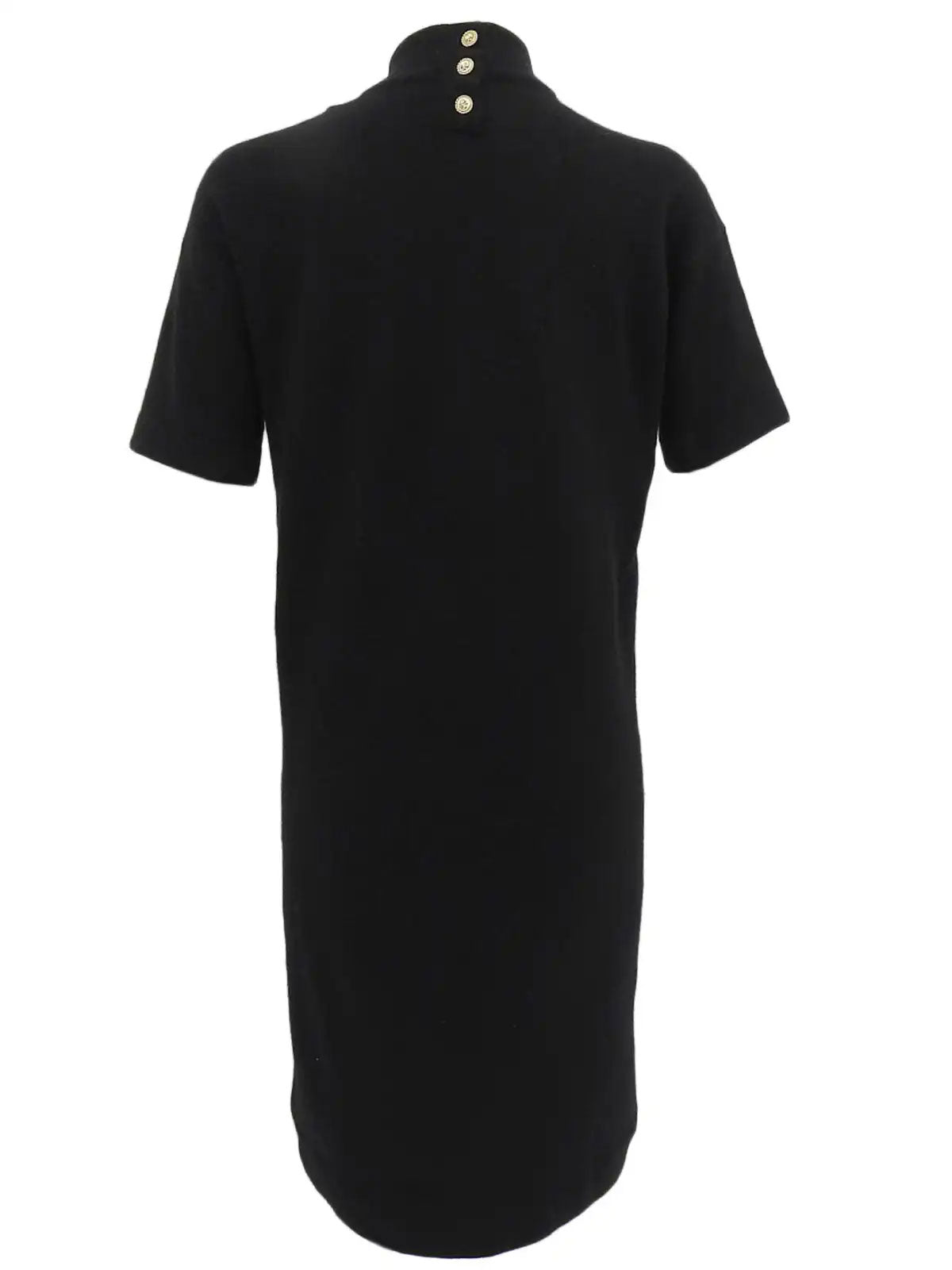 カシミアクローバーボタンハーフスリーブニットワンピース ブラック