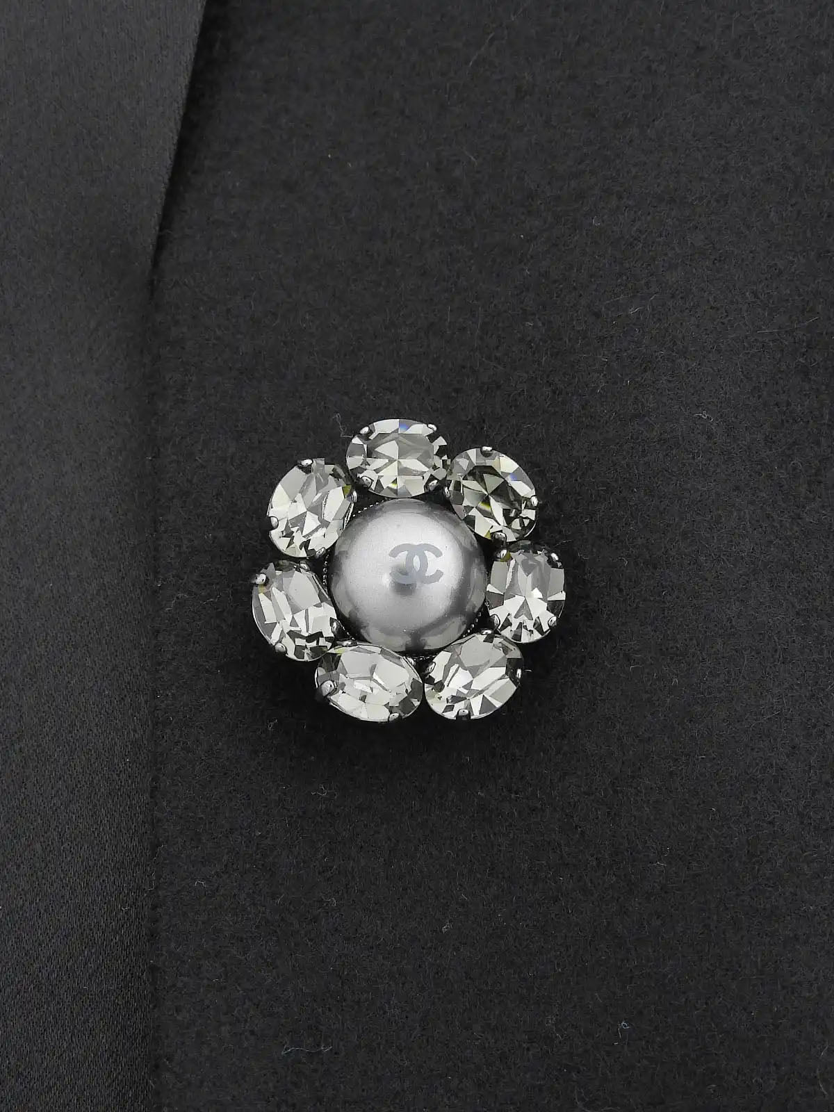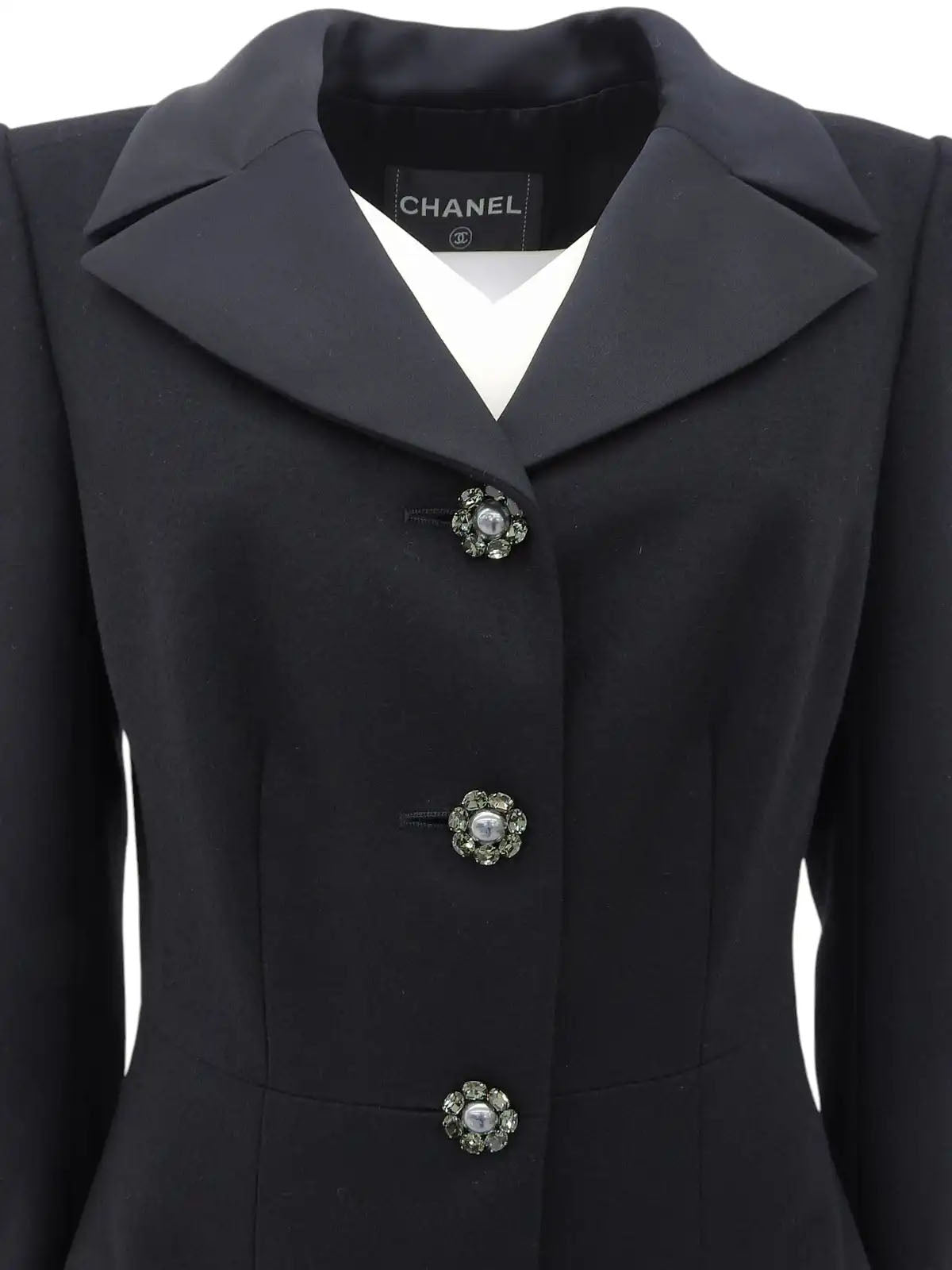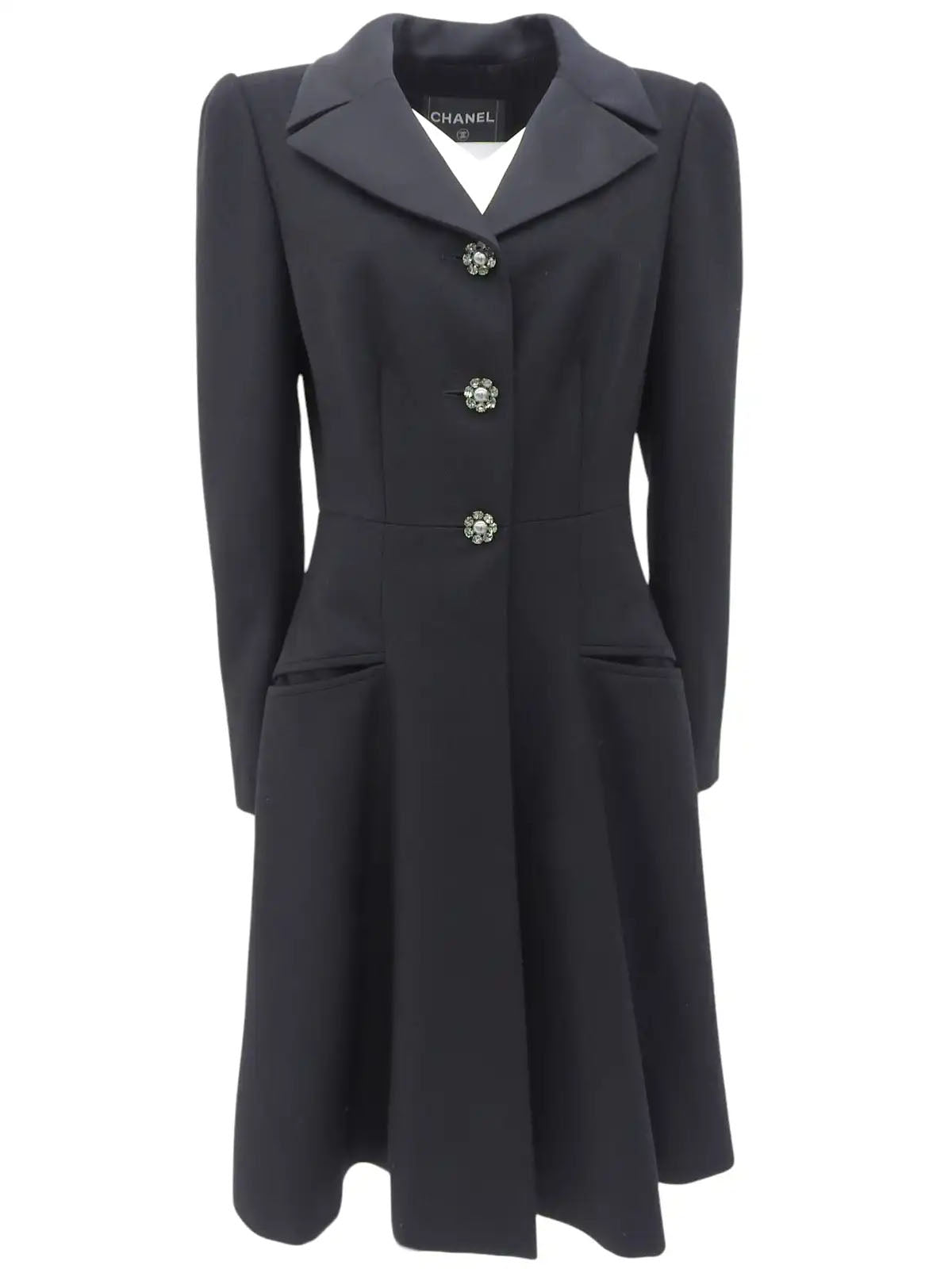 2008年製 ビジューパールCCマークボタンコート ブラック