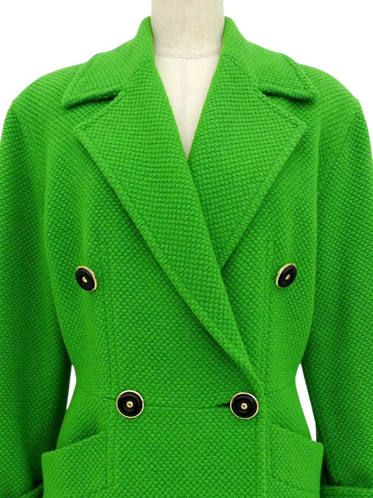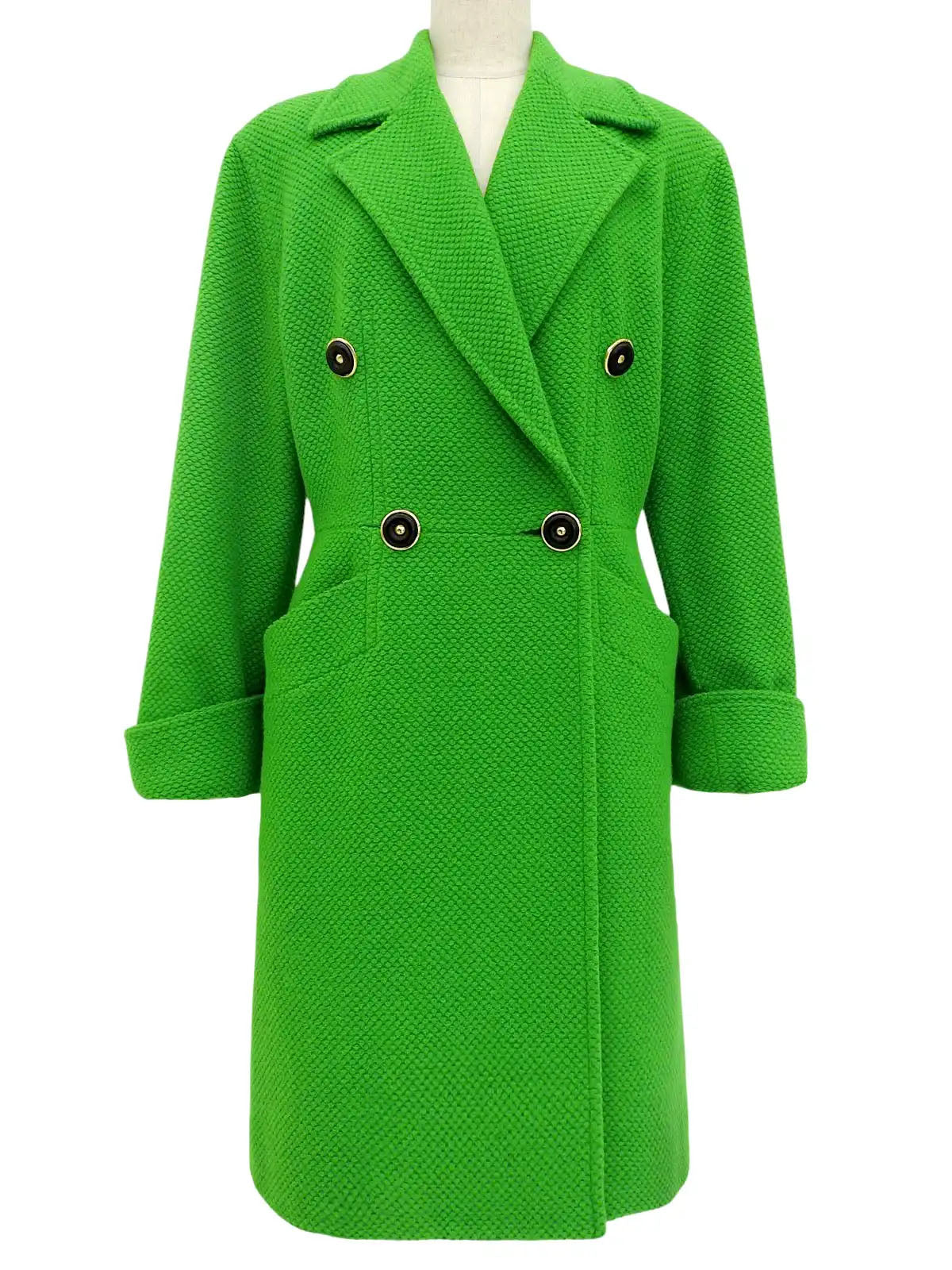 ウールデザインボタンロングコート グリーン