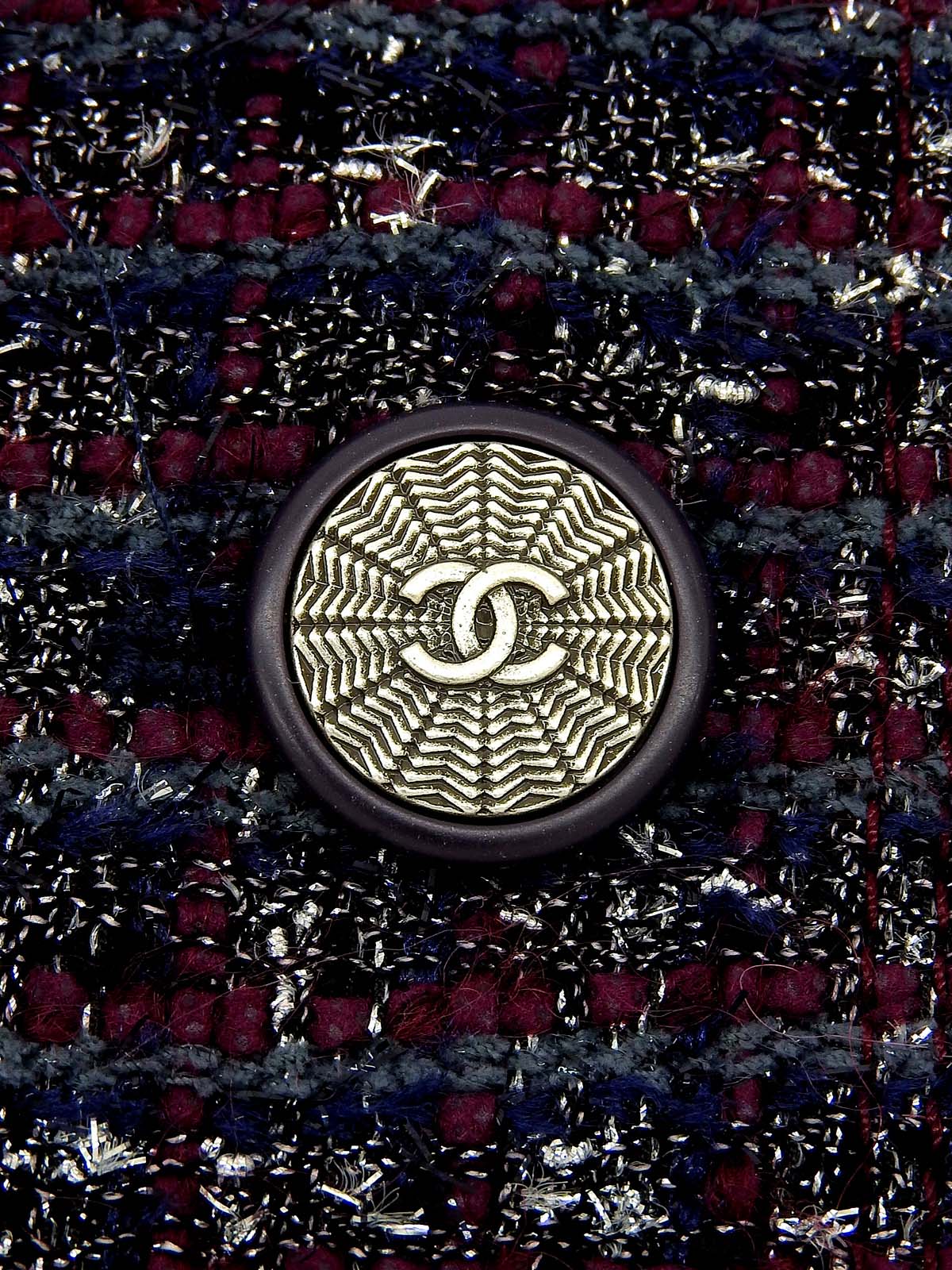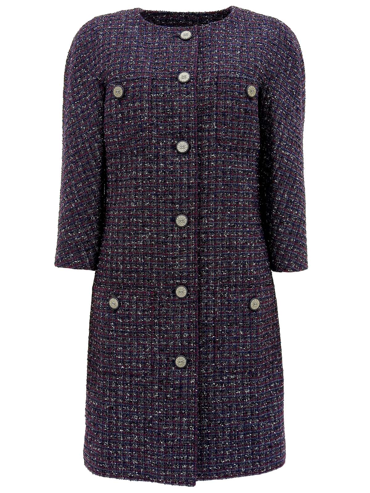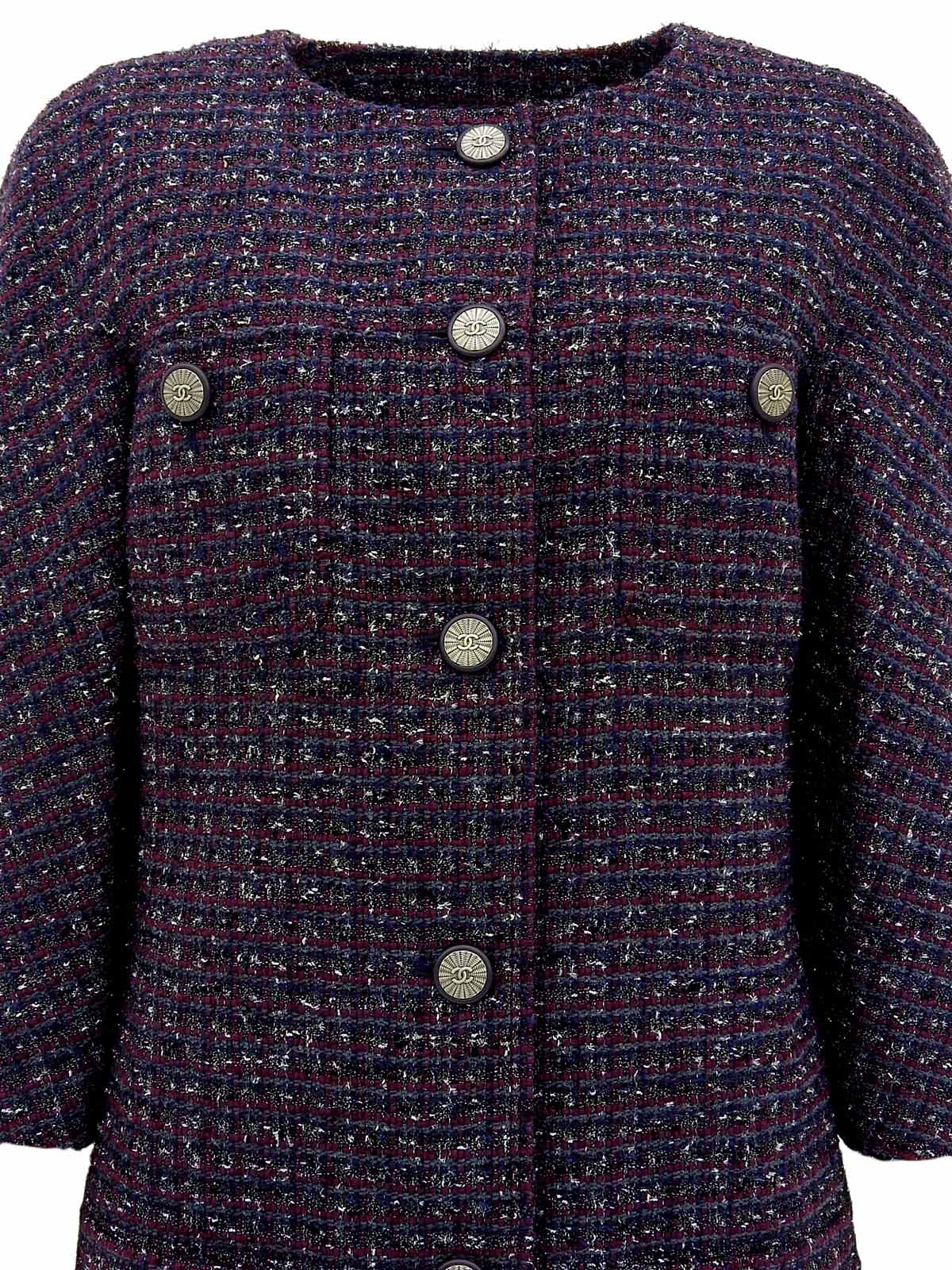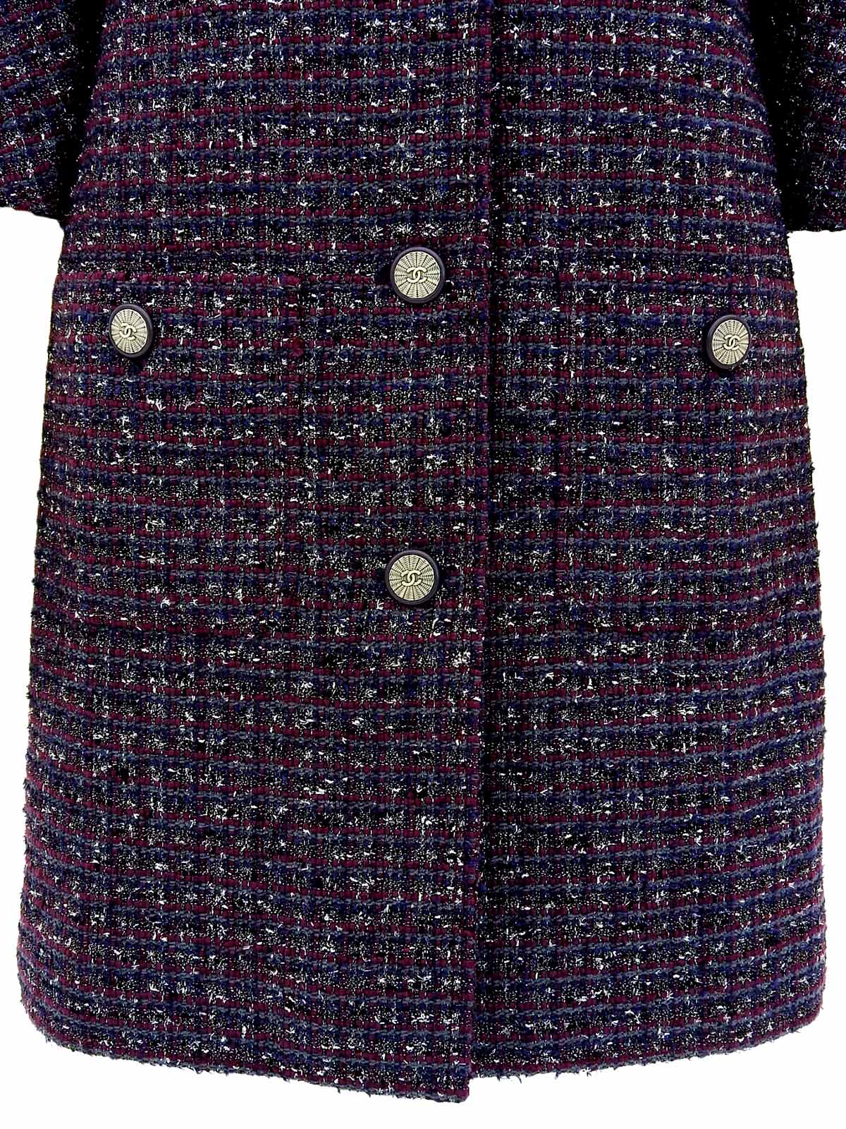 ツイードラメCCマークボタンノーカラーコート ボルドー/マルチ