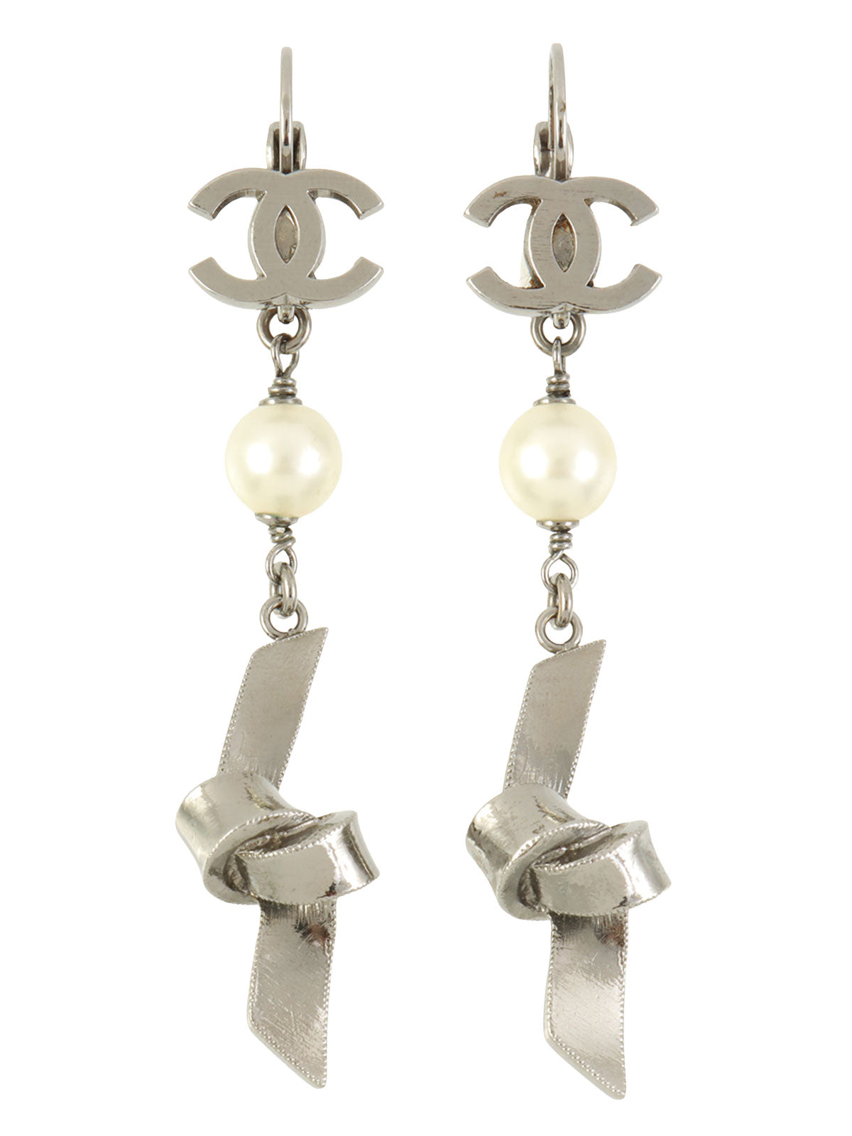 2005年製 CCマークパールリボンデザインスウィングピアス シルバー
