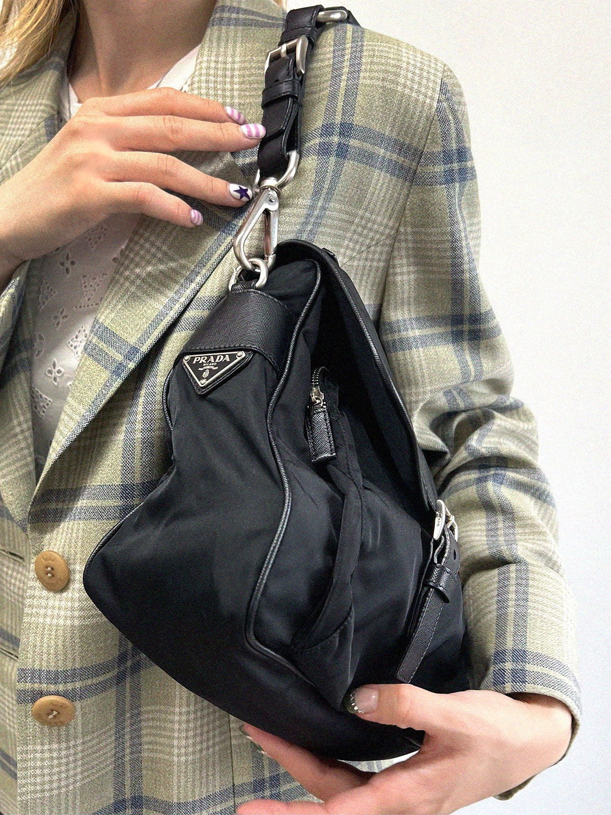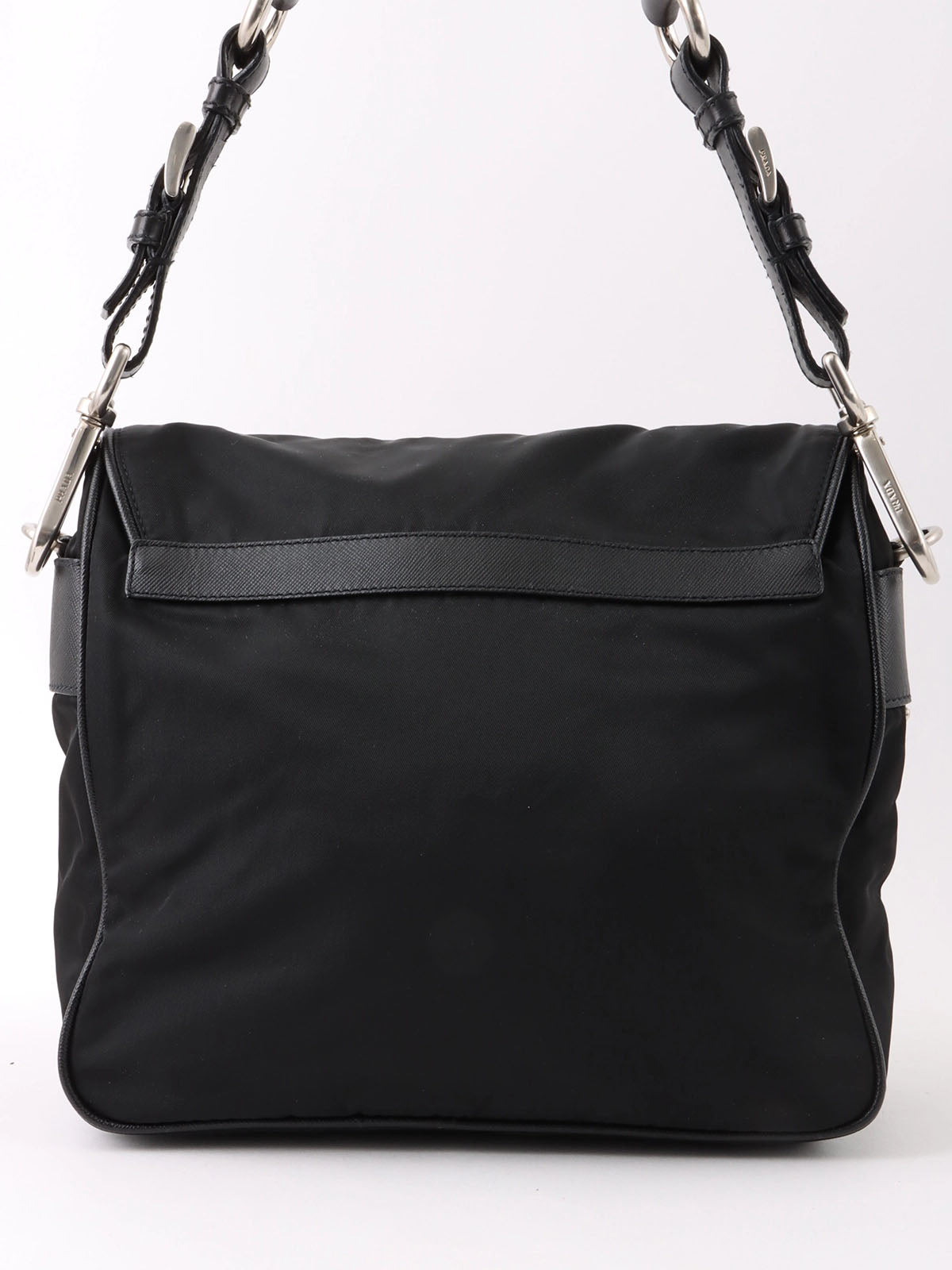 ナイロンロゴプレートワンショルダーバッグ ブラック