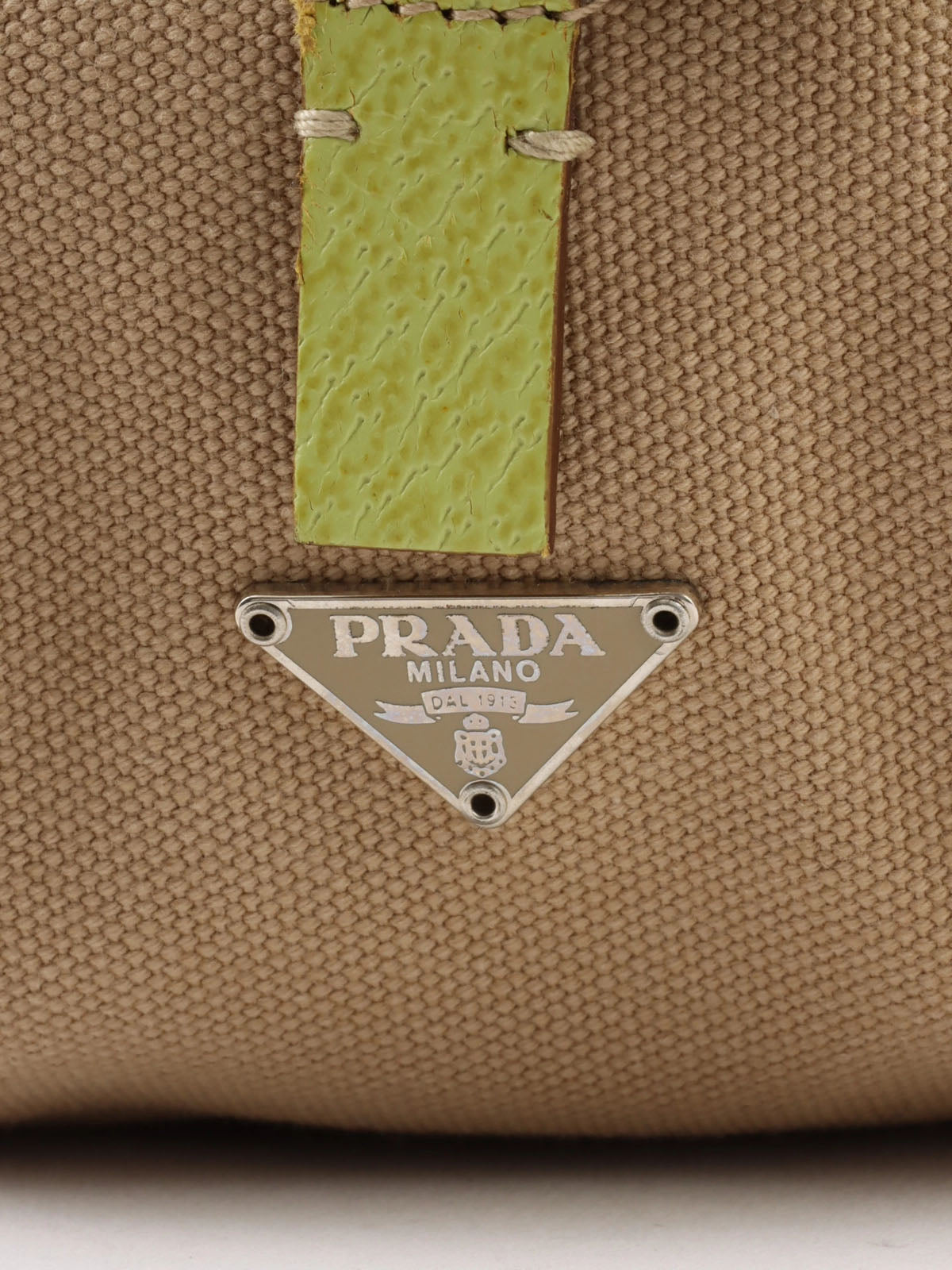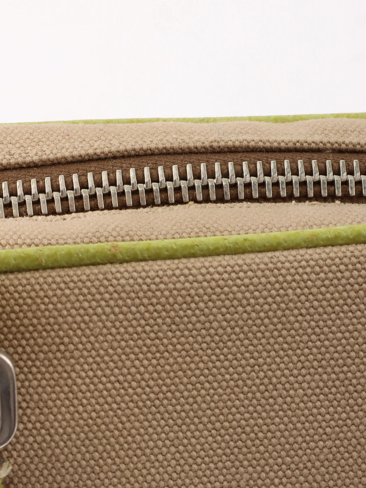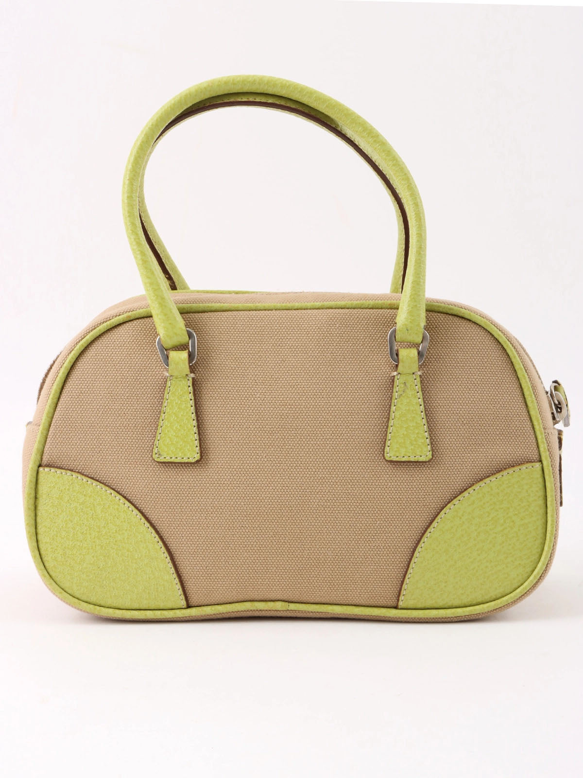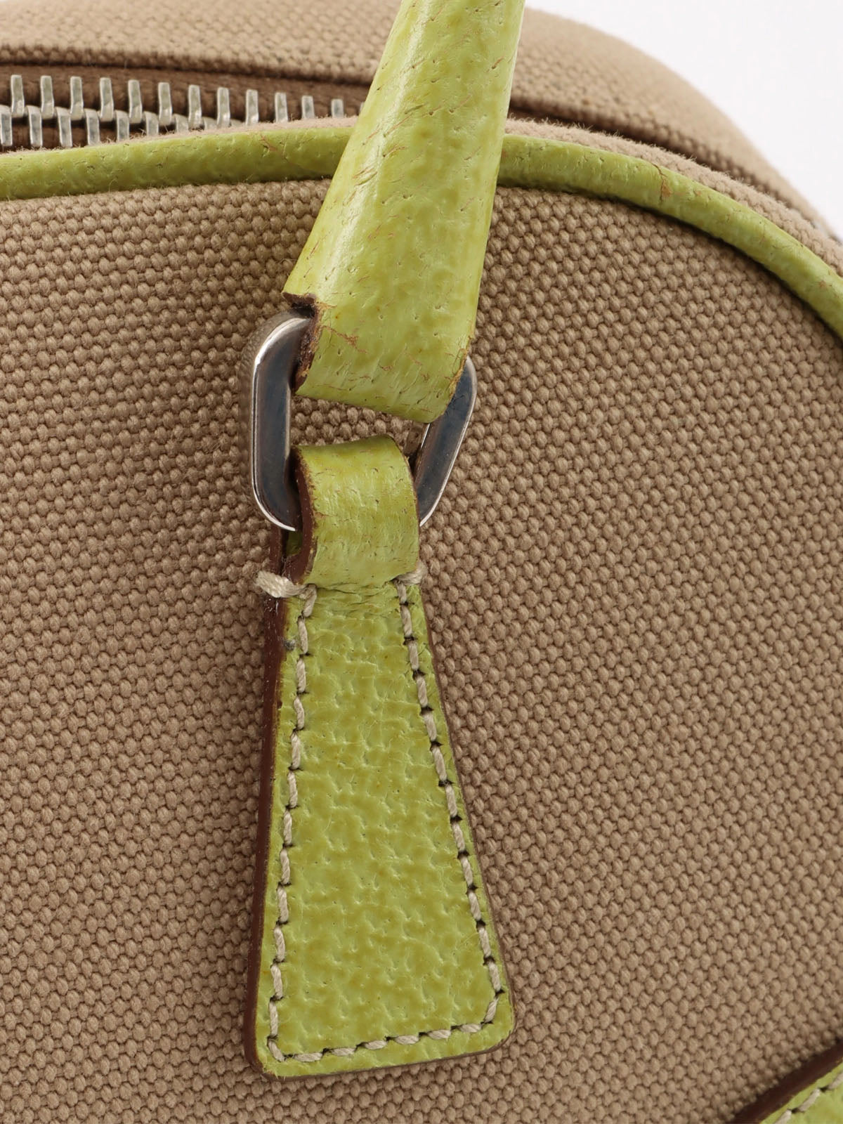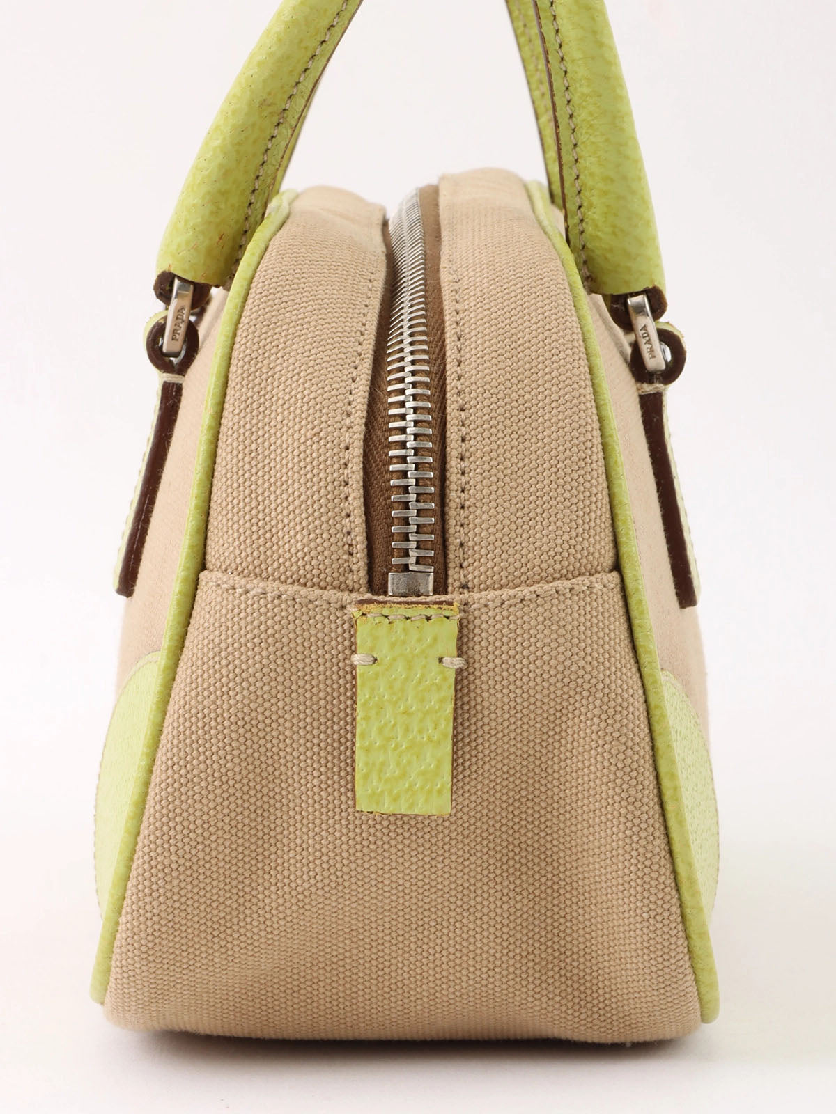 キャンバスレザーコンビハンドバッグ ベージュ/グリーン