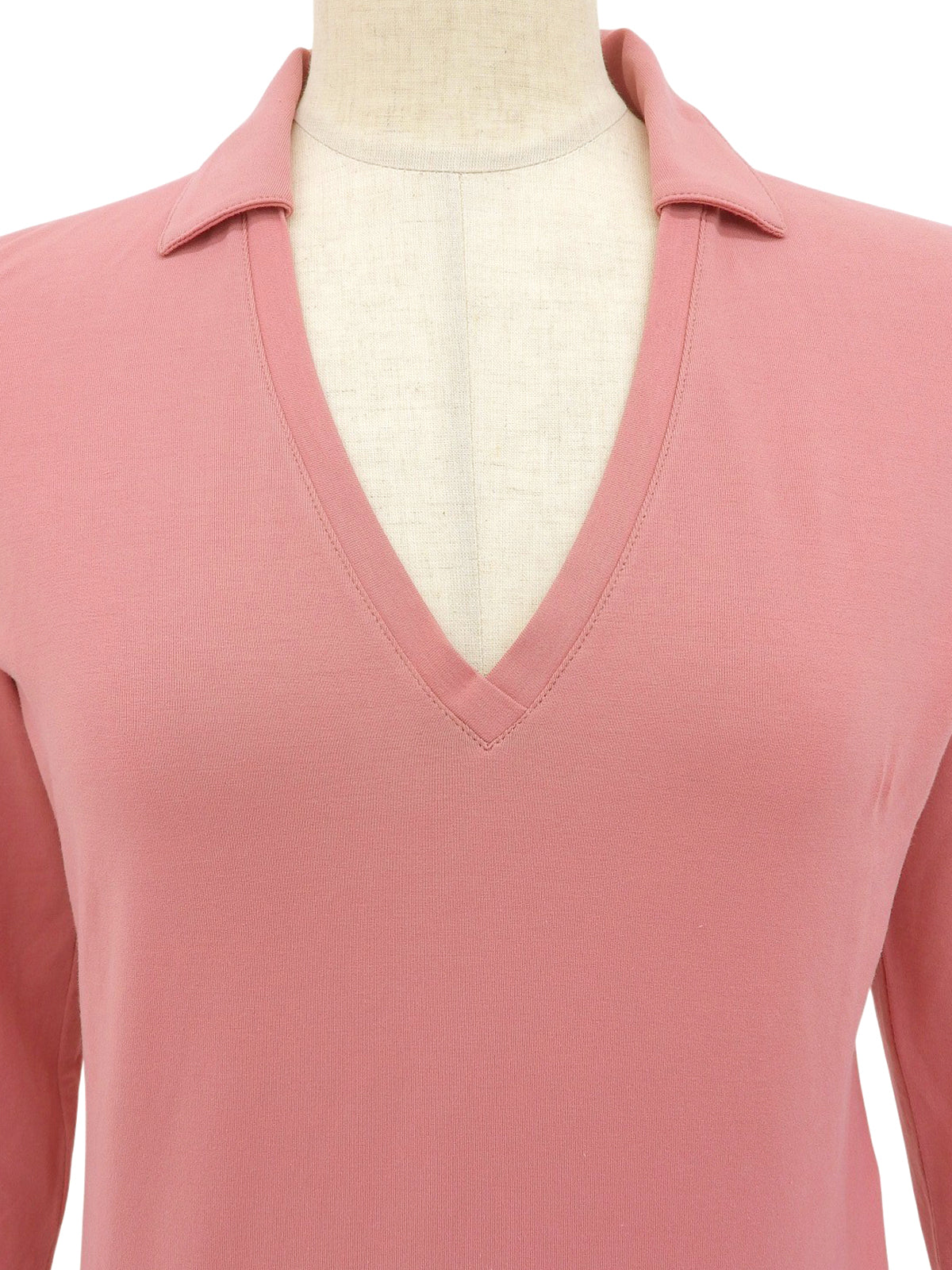 コットンVネック七分袖トップス ピンク