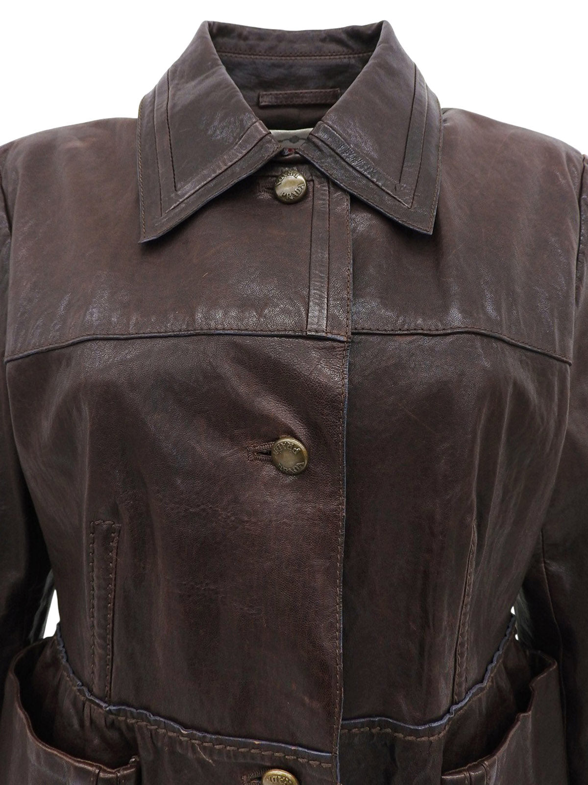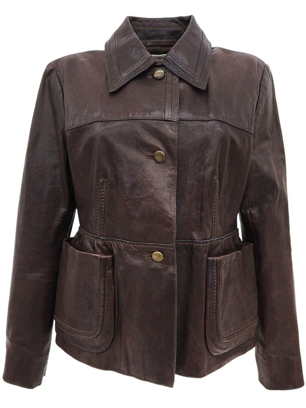 レザーロゴボタンジャケット ダークブラウン