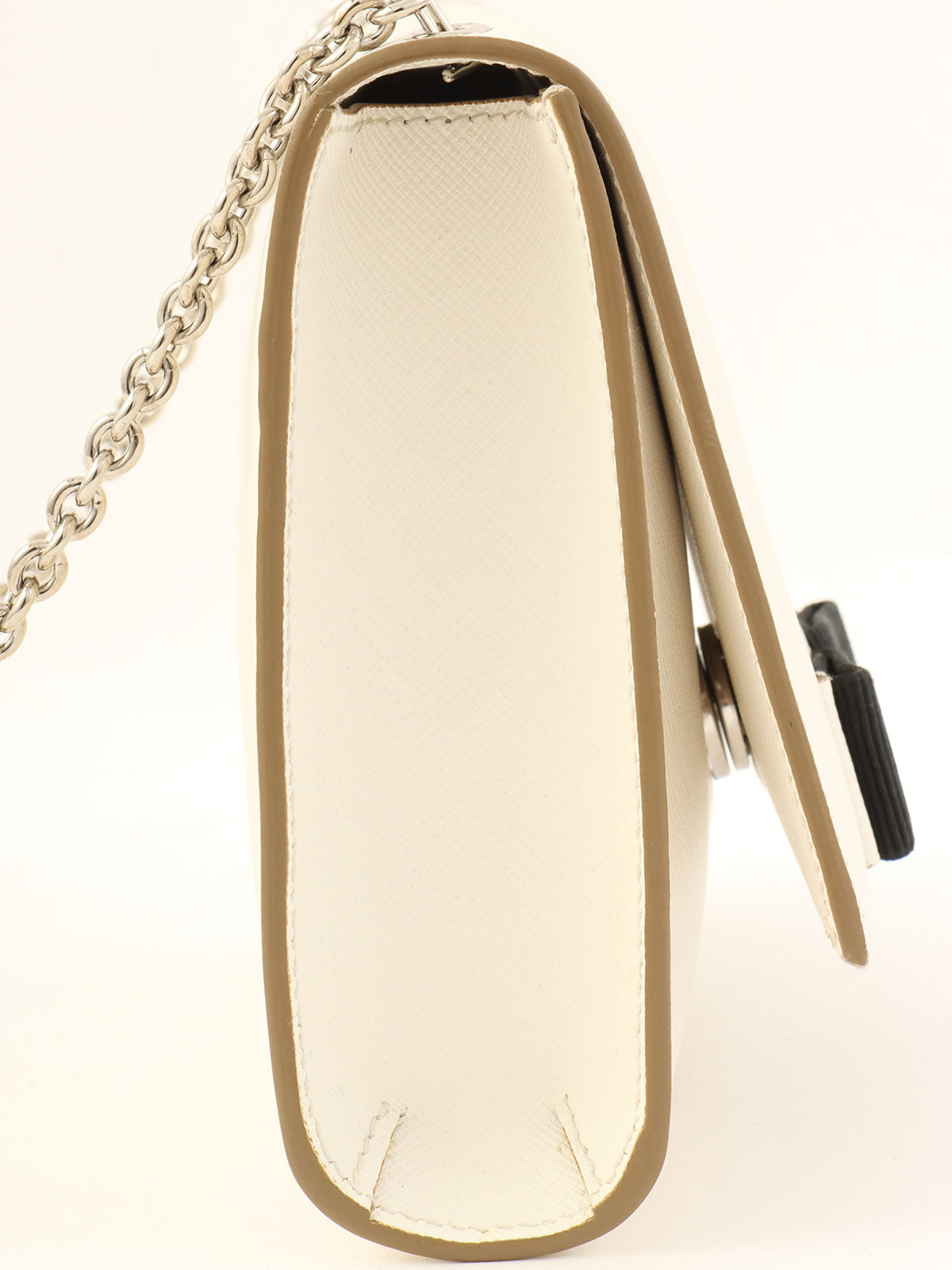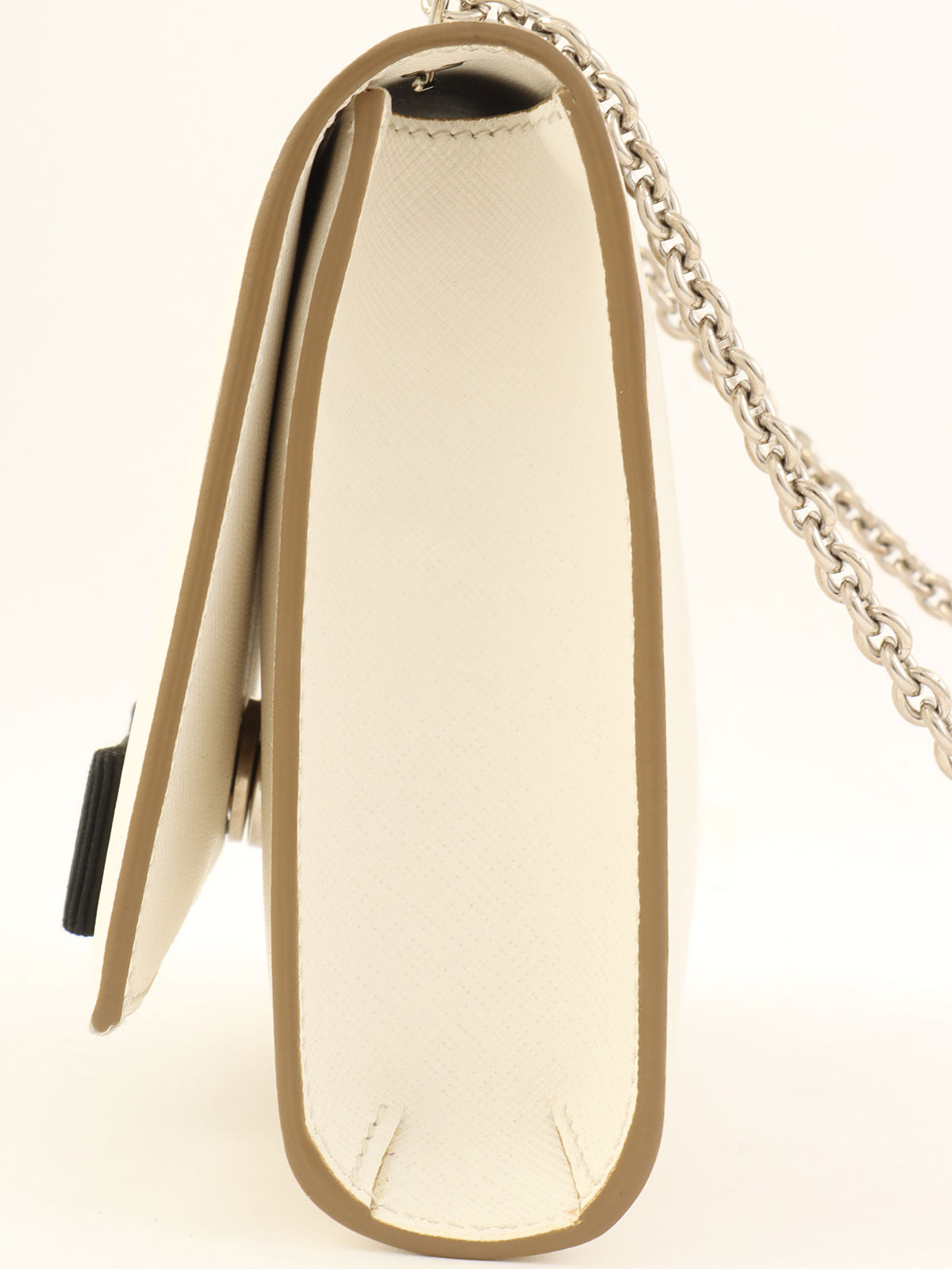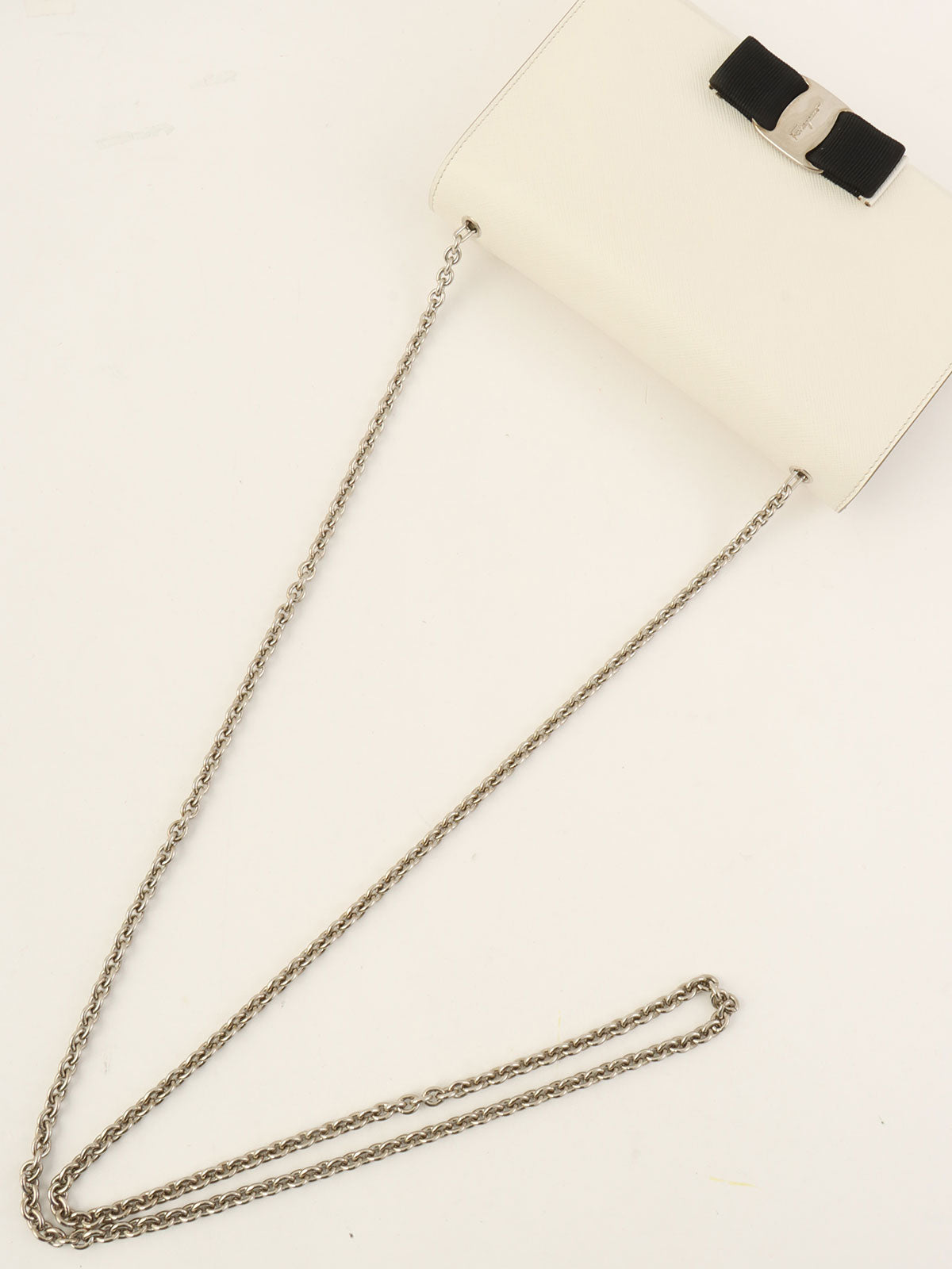 サフィアーノヴァラリボンチェーンショルダーバッグ ホワイト