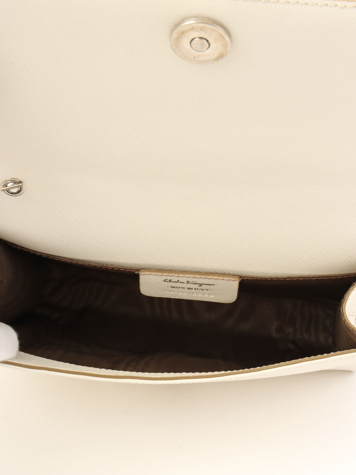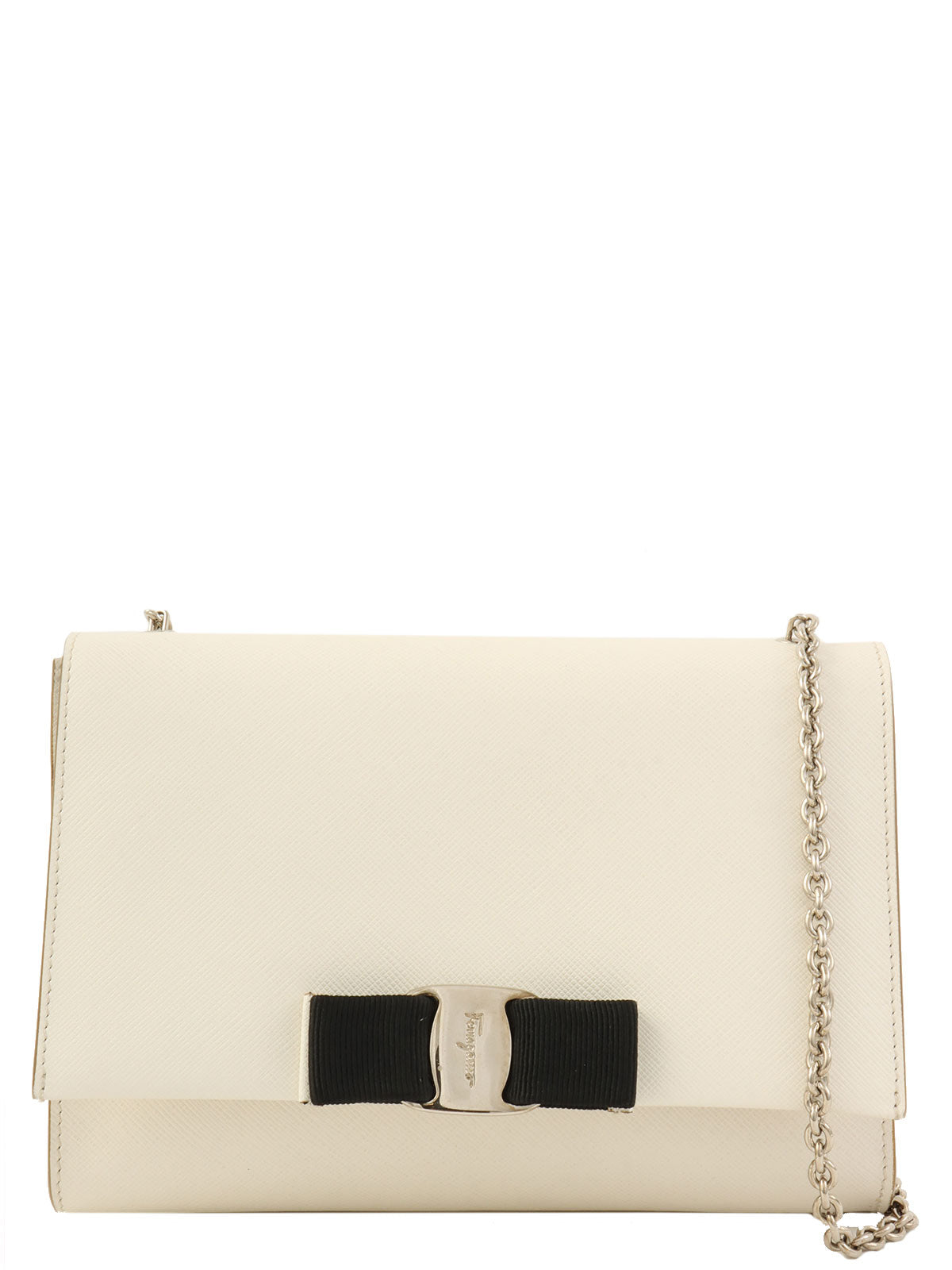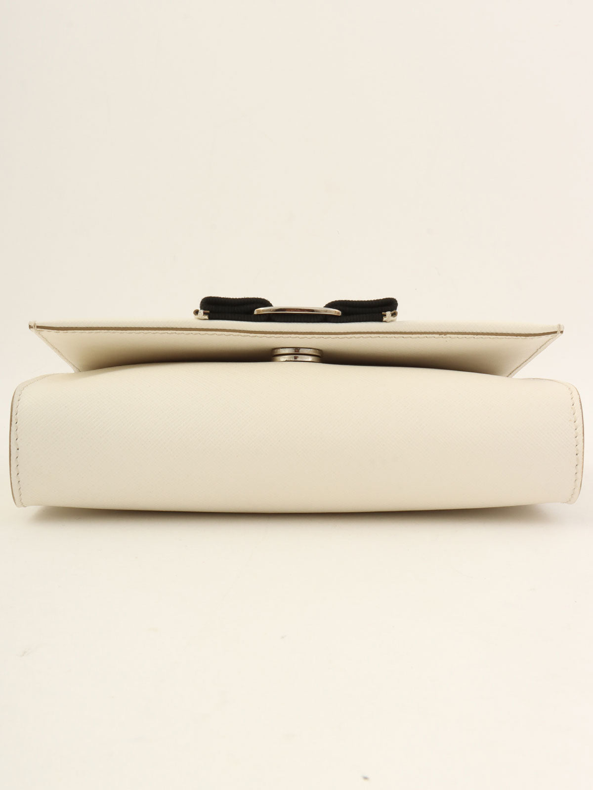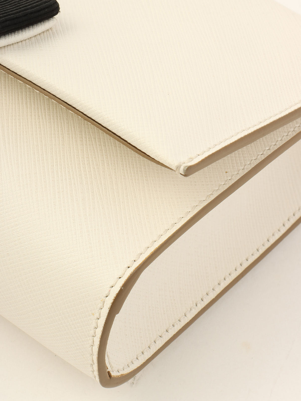 サフィアーノヴァラリボンチェーンショルダーバッグ ホワイト