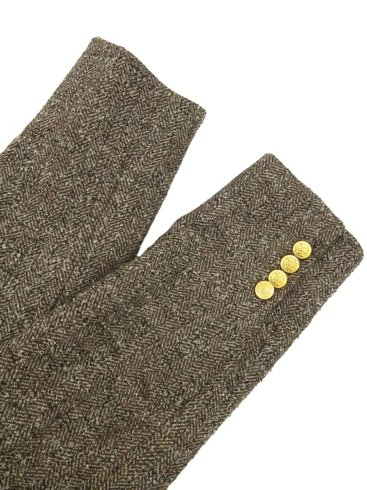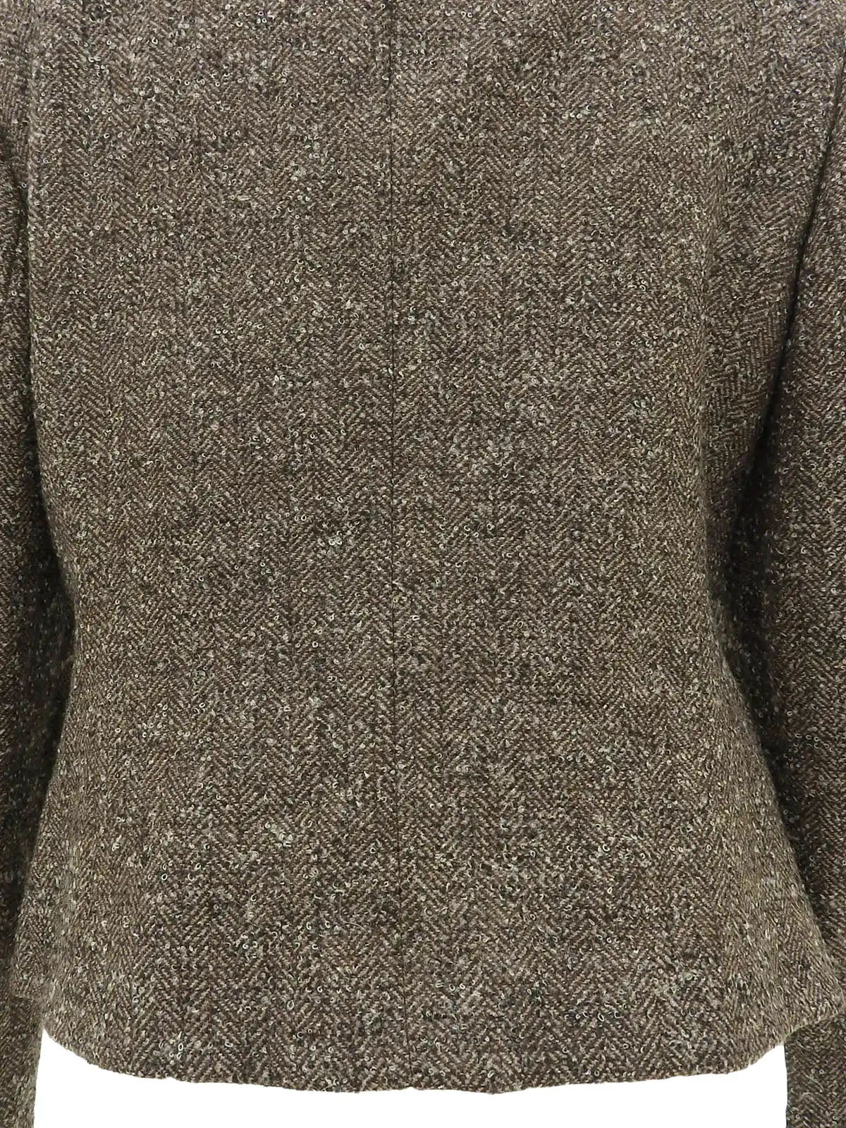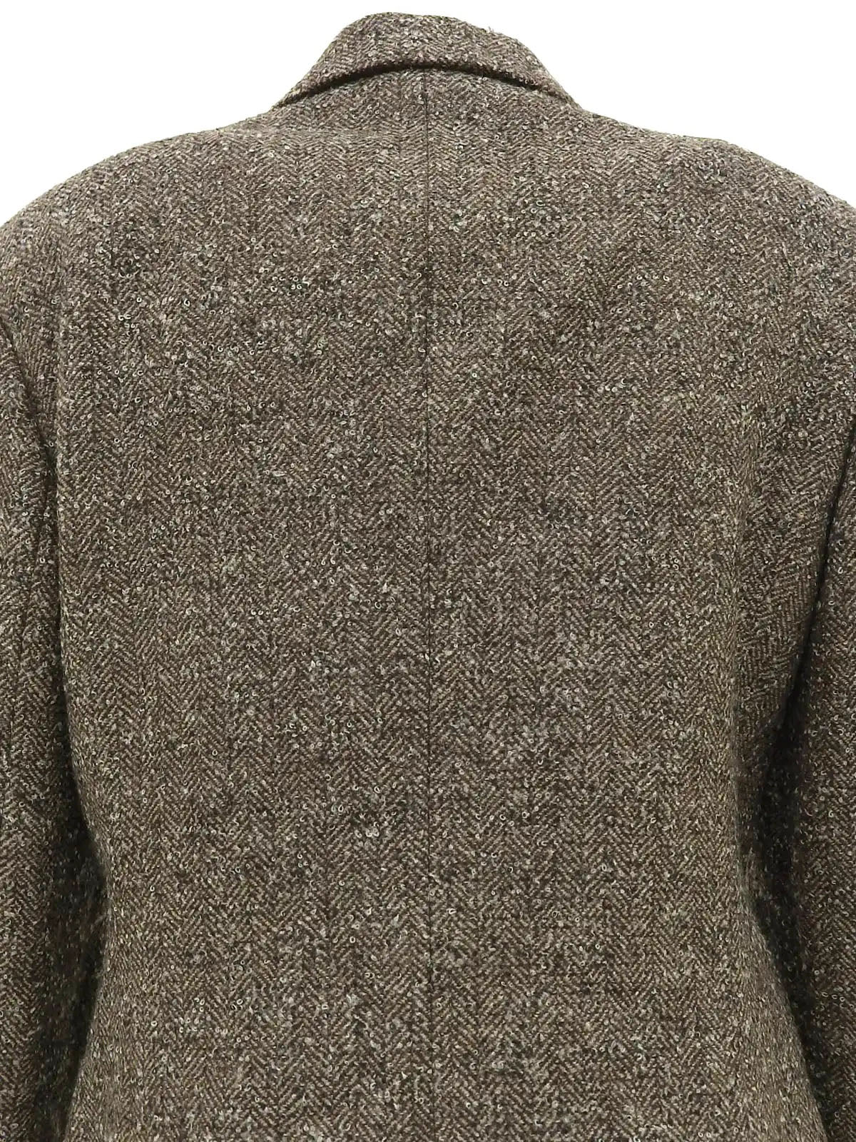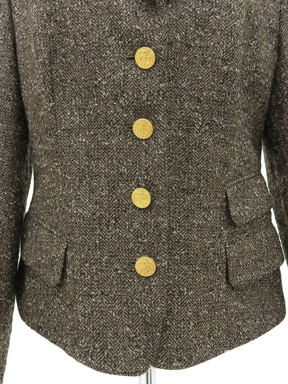 ヘリンボーンパターンヒールボタンジャケット ブラウン/グレー