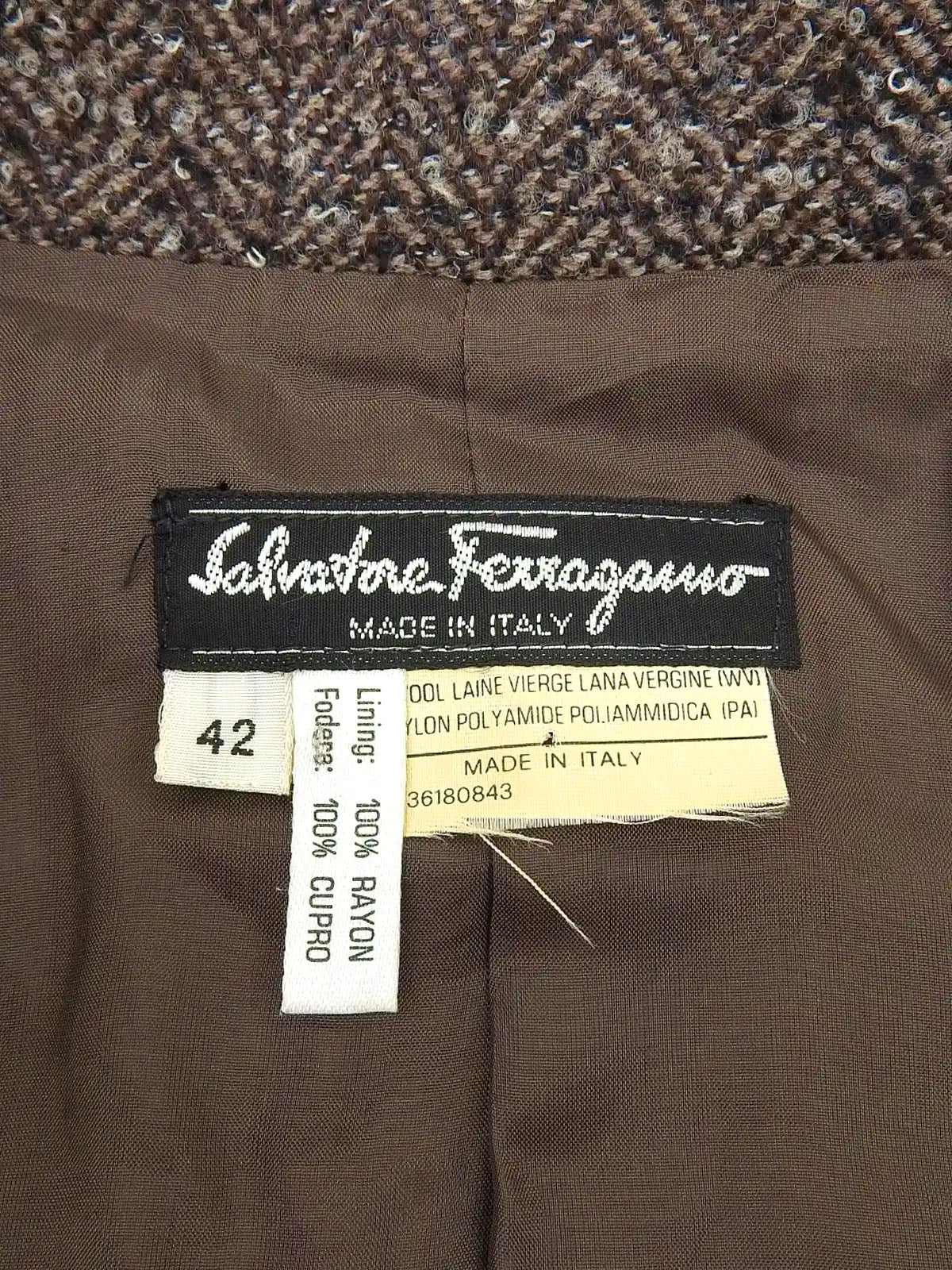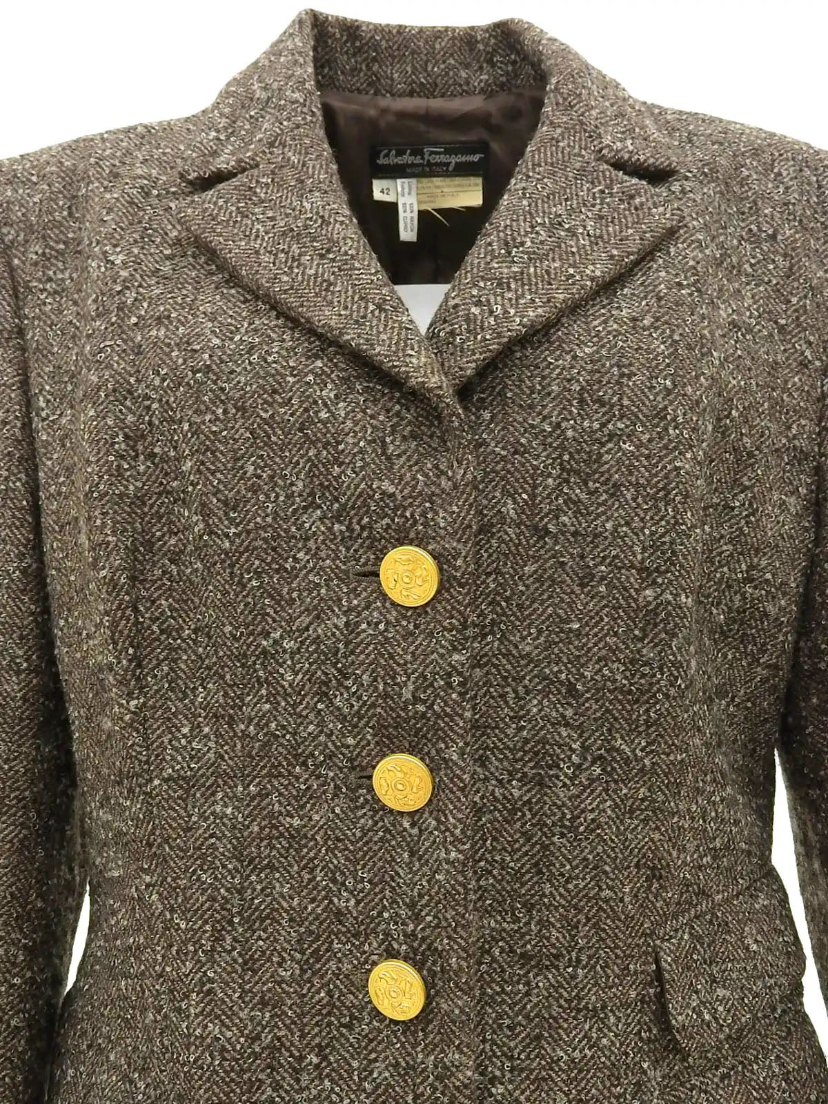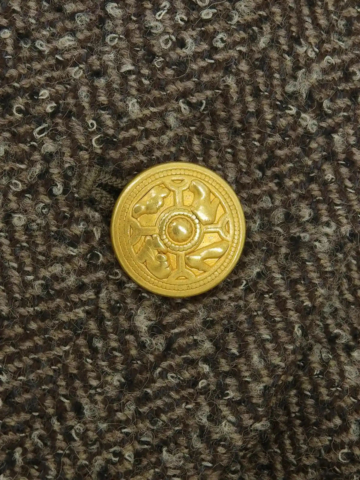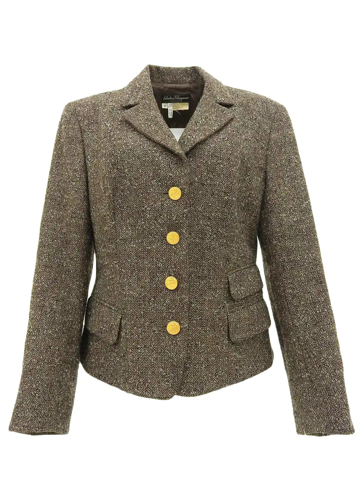 ヘリンボーンパターンヒールボタンジャケット ブラウン/グレー