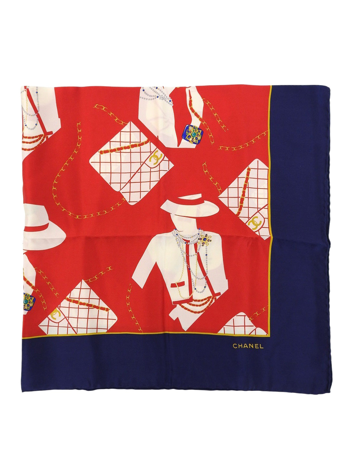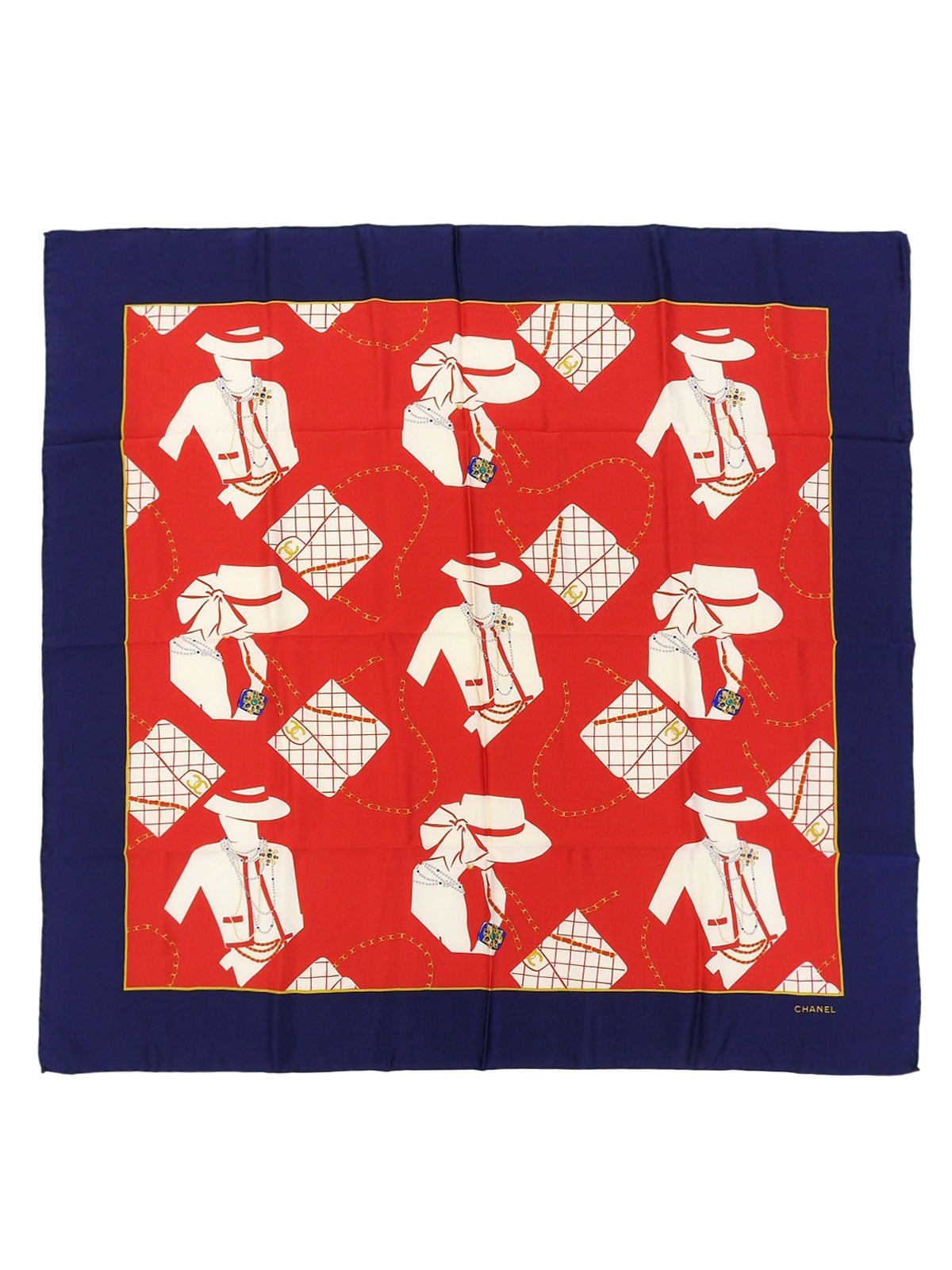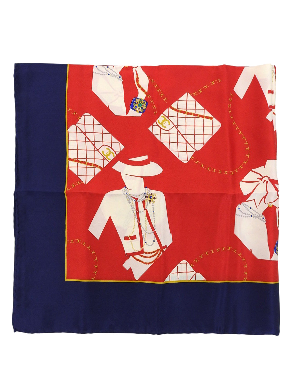 マドモアゼルパターンスカーフ レッド/ネイビー/マルチ
