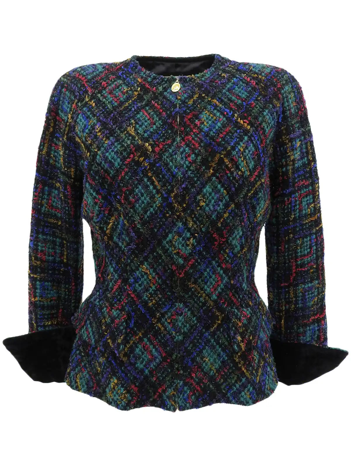 ツイードロゴジップアップジャケット グリーン/ブラック/マルチ