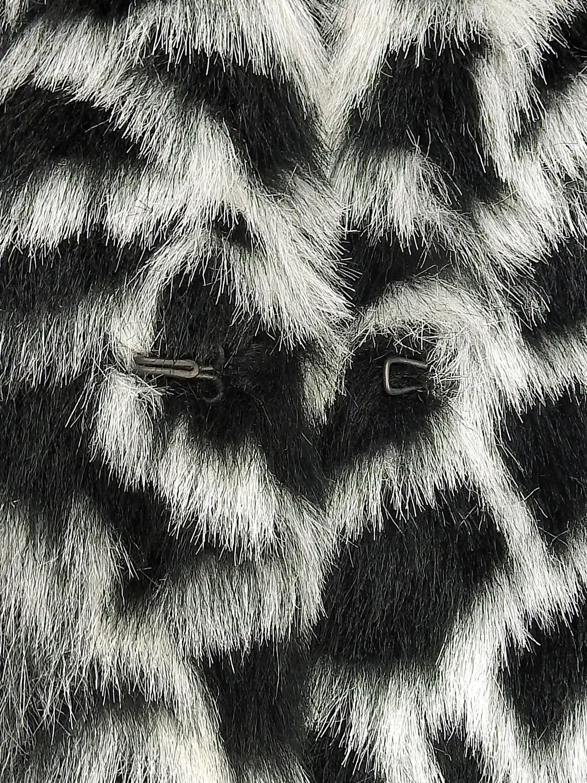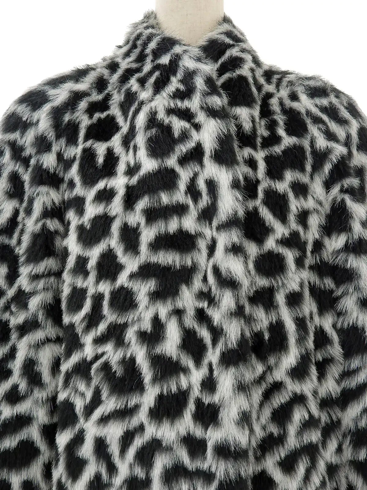 レオパードパターンフェイクファーコート ホワイト/ブラック