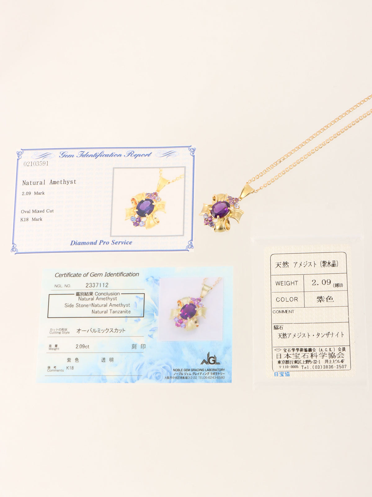 18Kアメジストタンザナイトデザインネックレス ゴールド/パープル