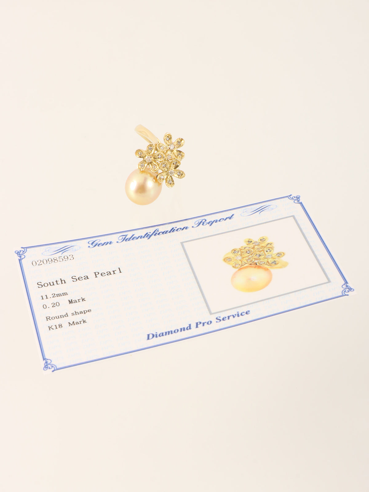 18Kダイヤモンドパールフラワーモチーフリング ゴールド