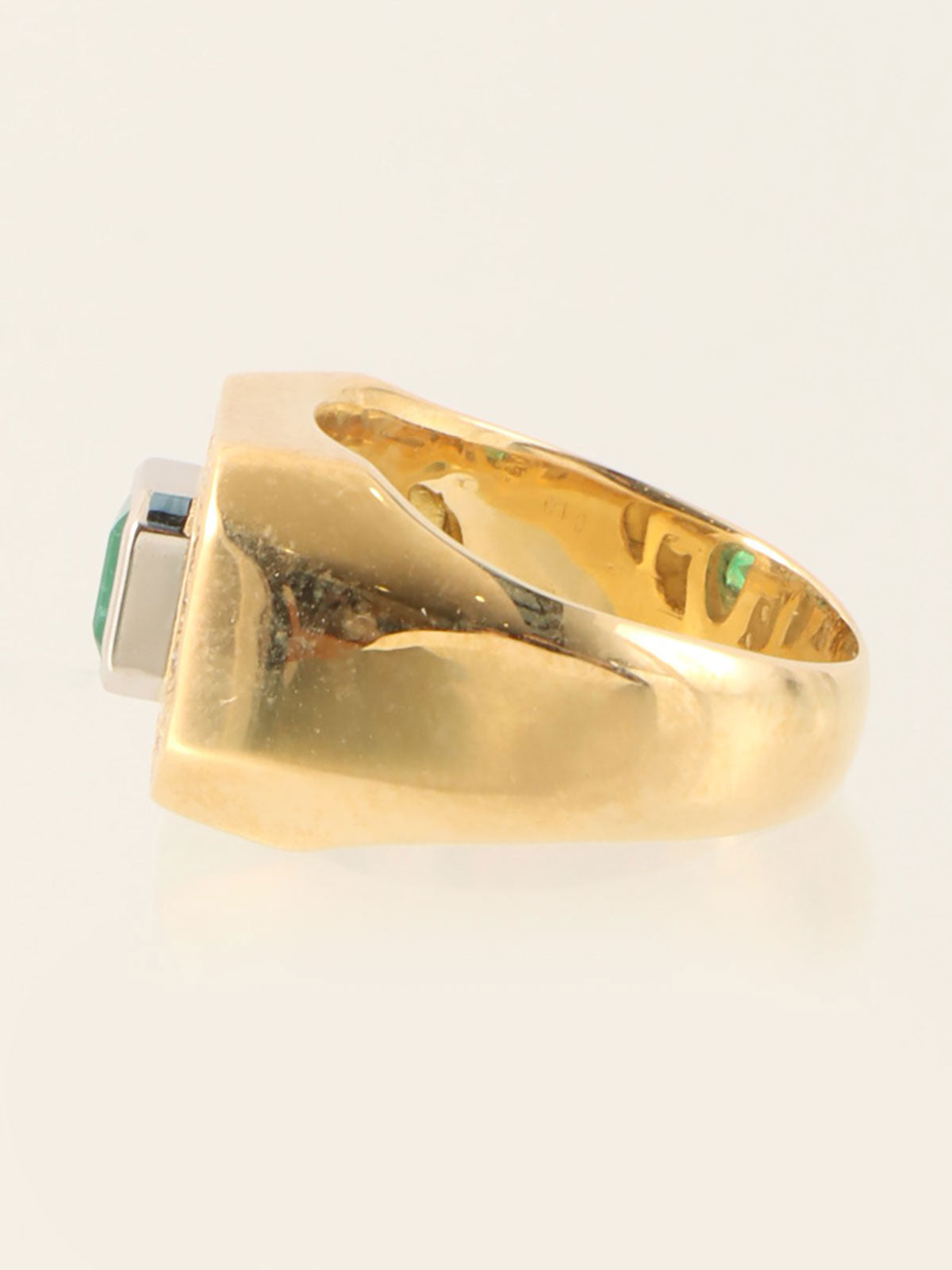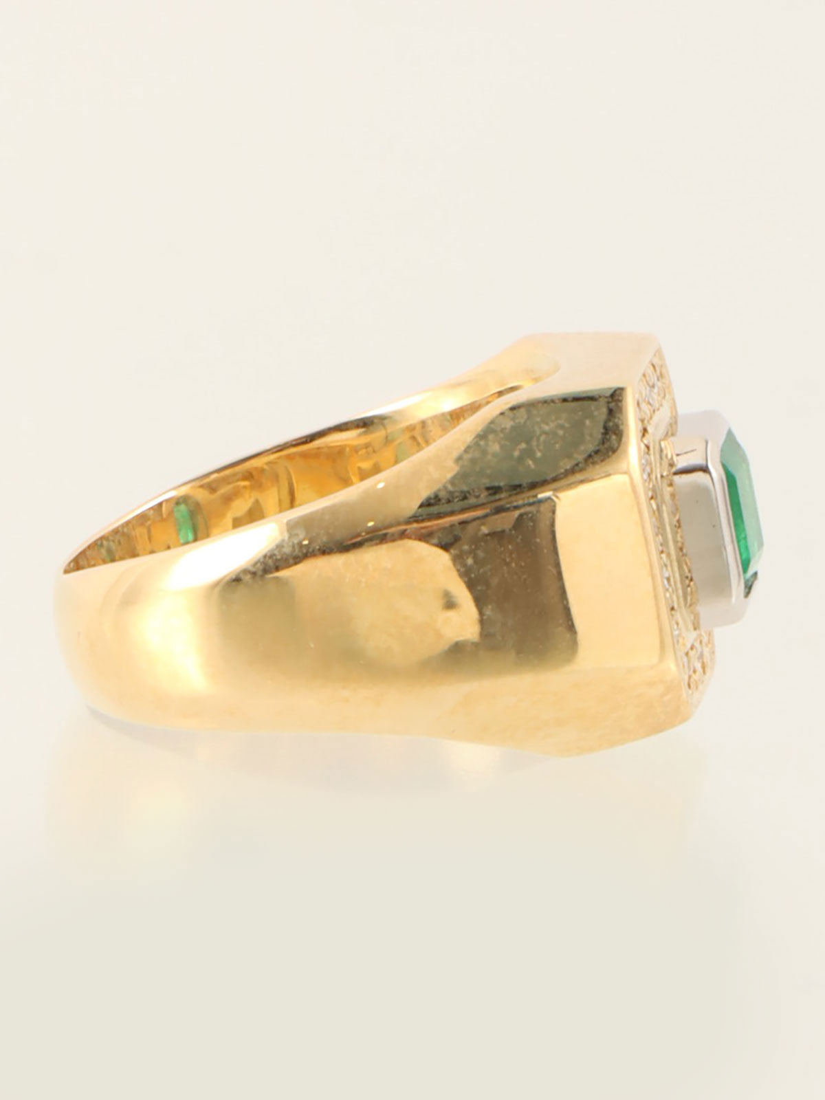 18Kプラチナエメラルドダイヤモンドスクエアデザインリング ゴールド/グリーン