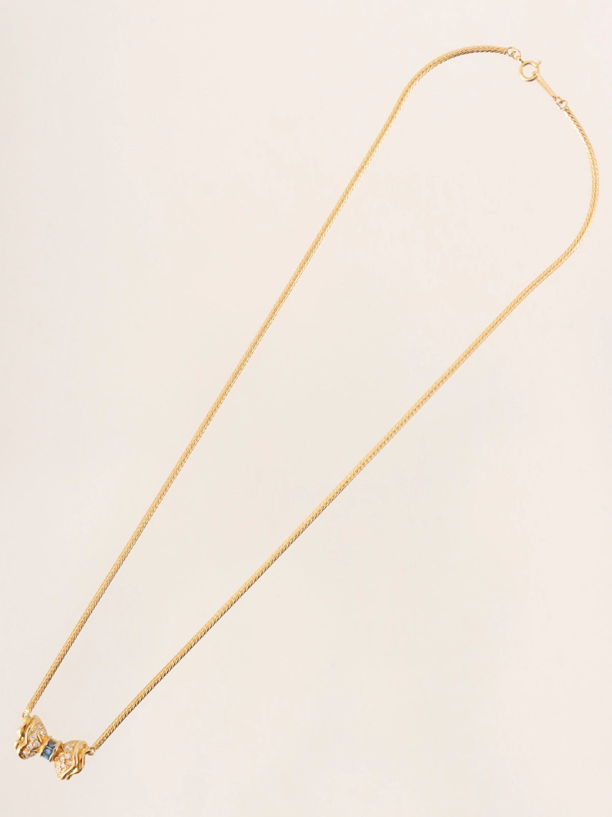 18Kダイヤモンドリボンモチーフネックレス ゴールド/ブルー