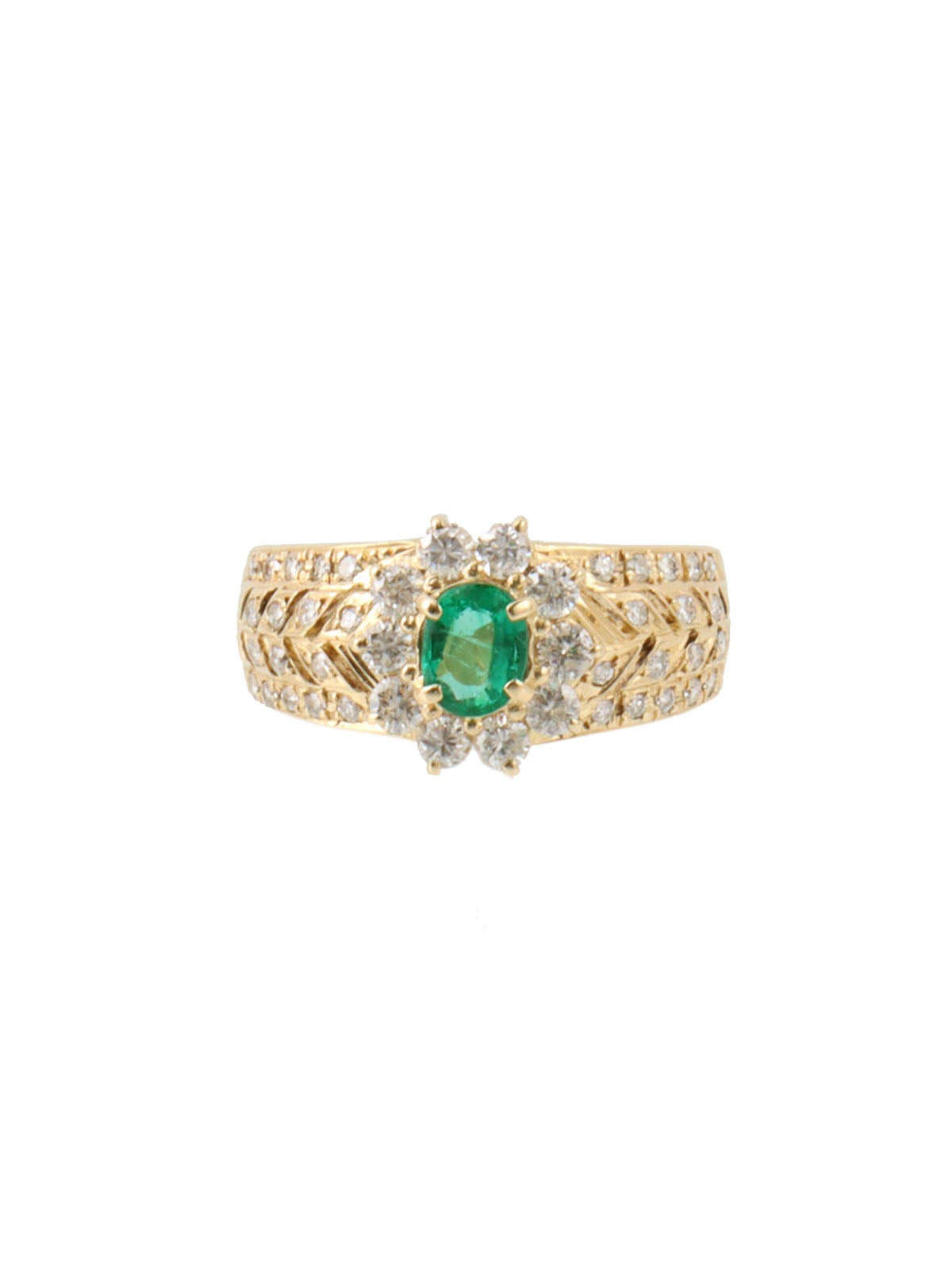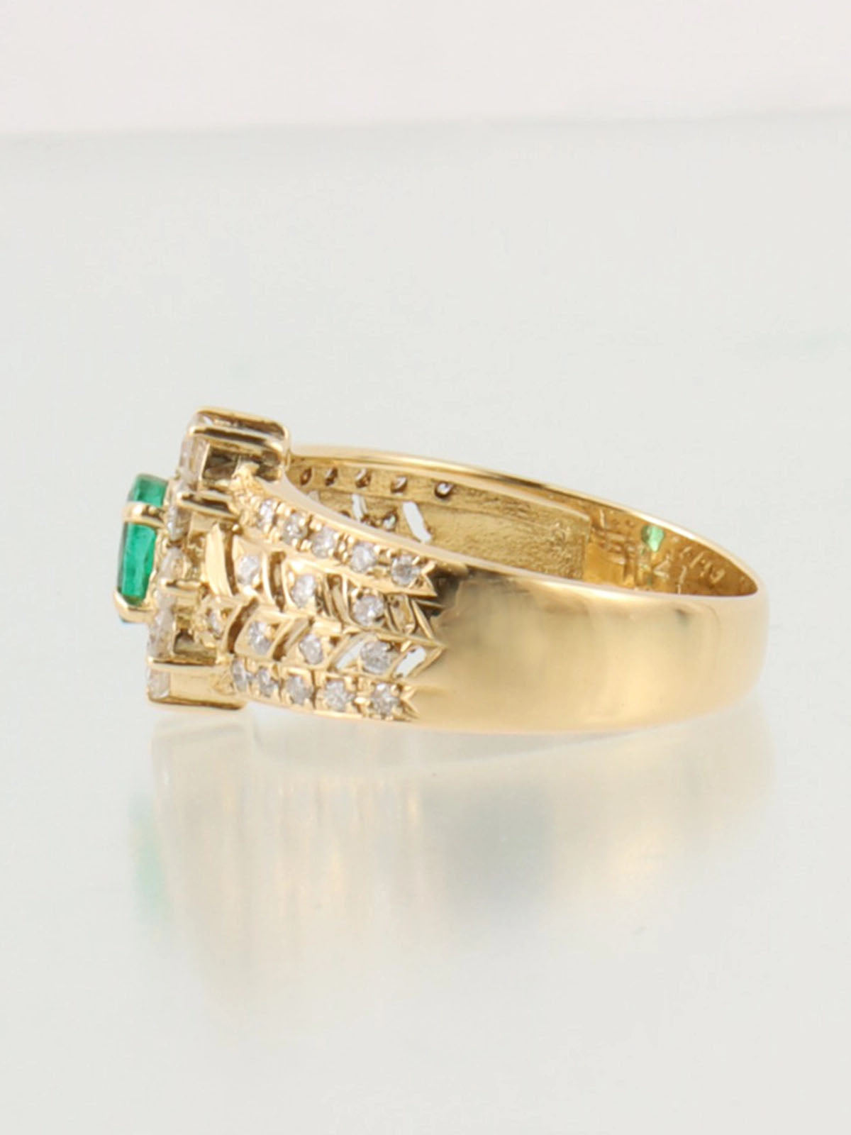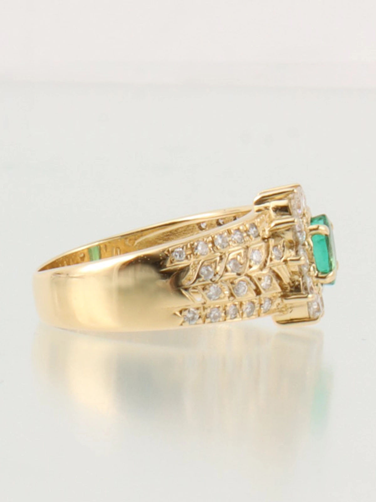 18Kエメラルドダイヤモンドデザインリング ゴールド/グリーン