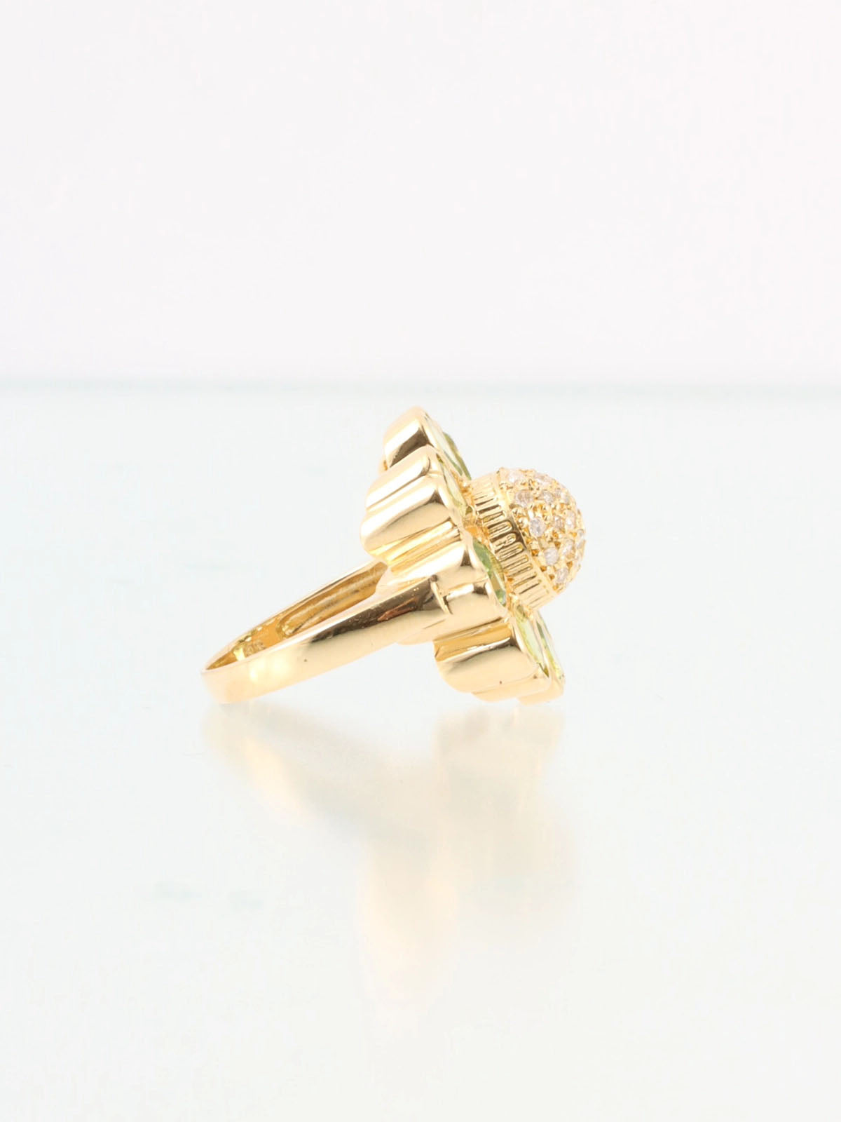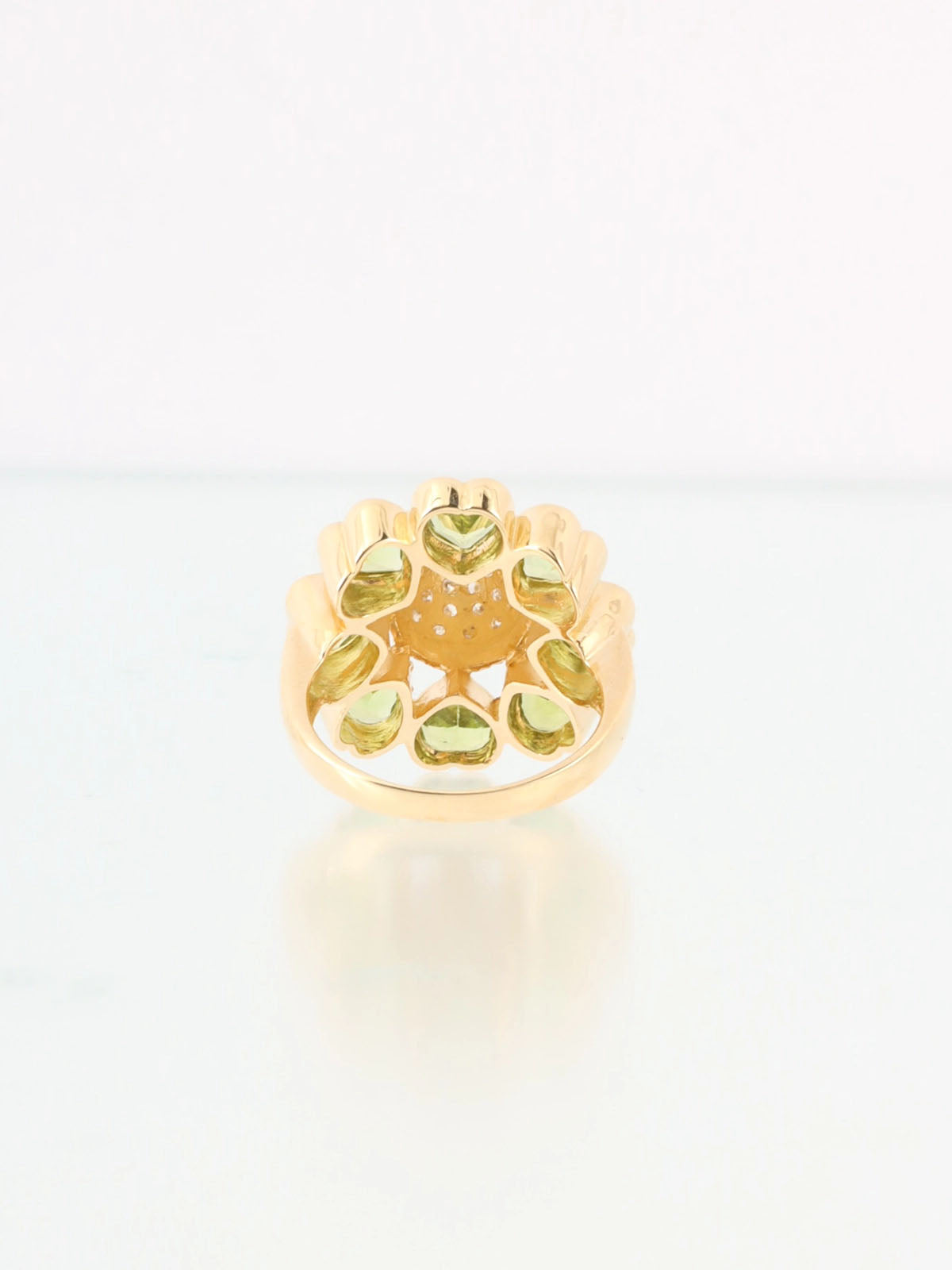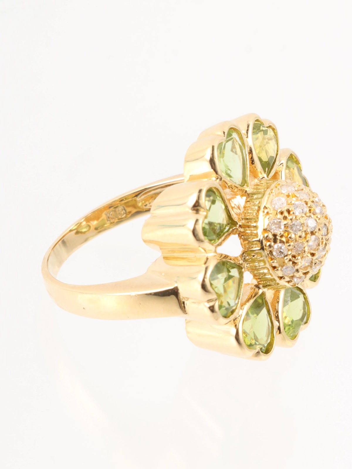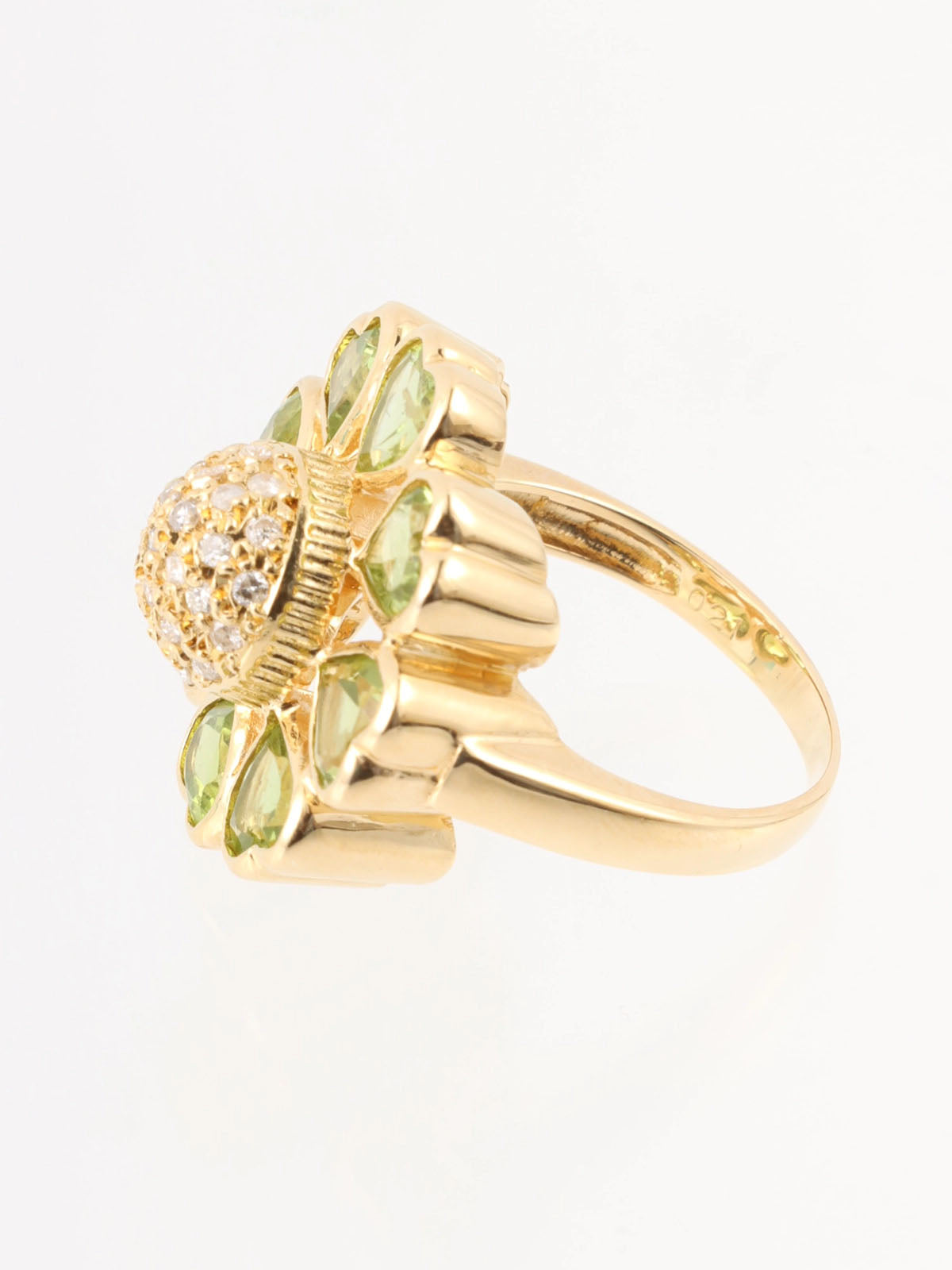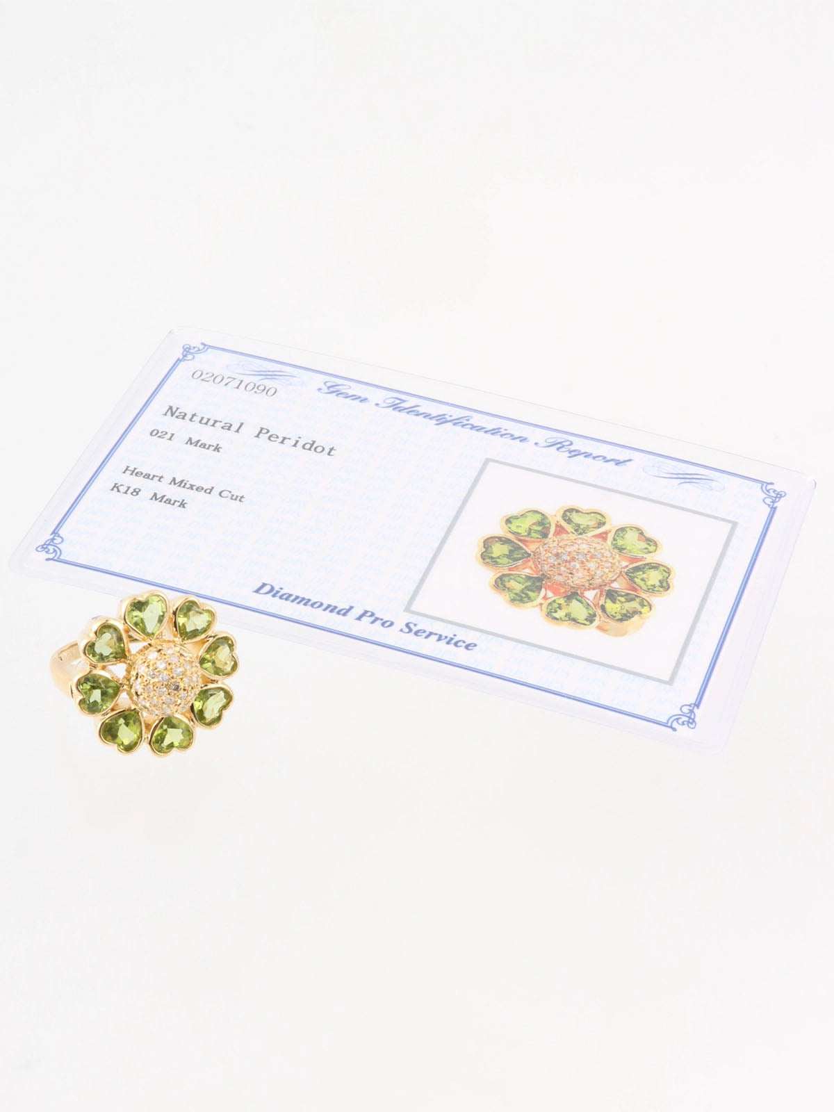 18Kダイヤモンドペリドットフワラーモチーフリング ゴールド/ライトグリーン