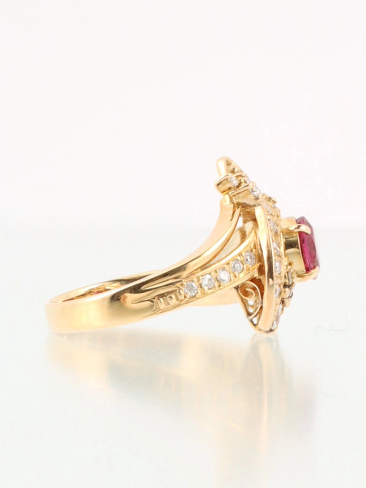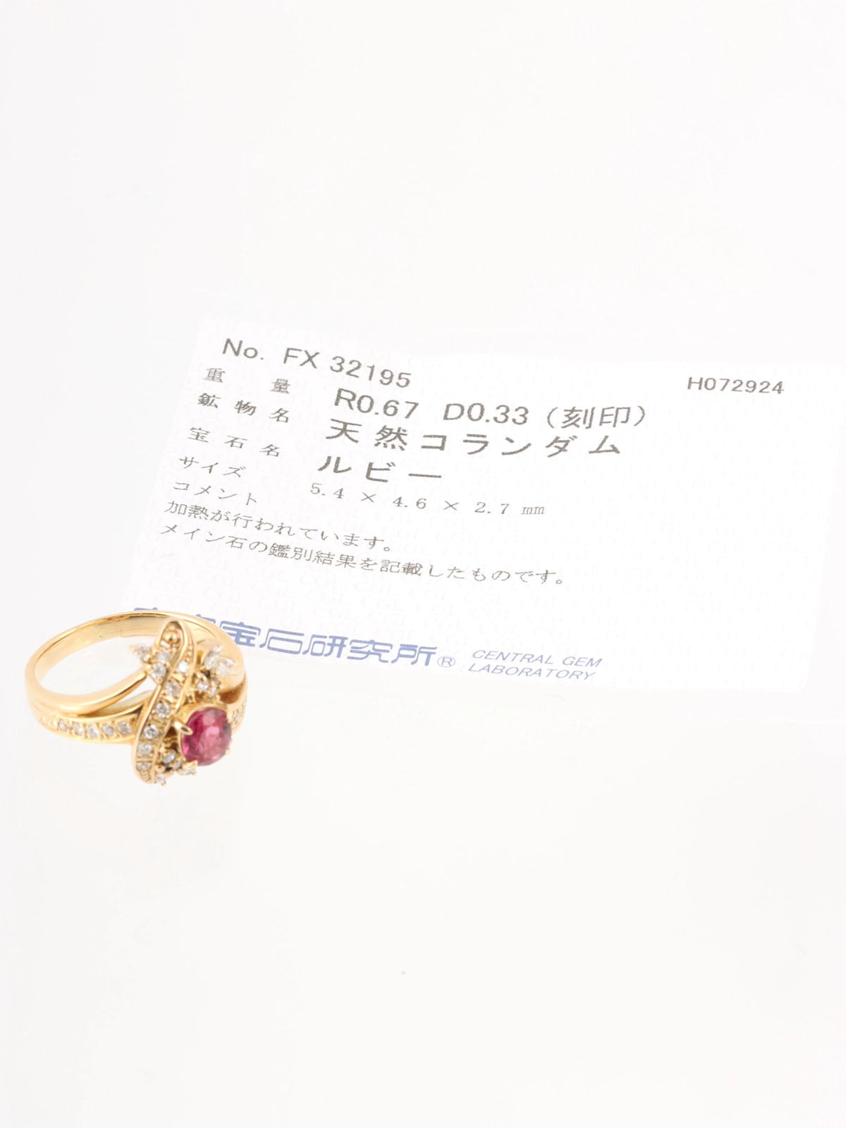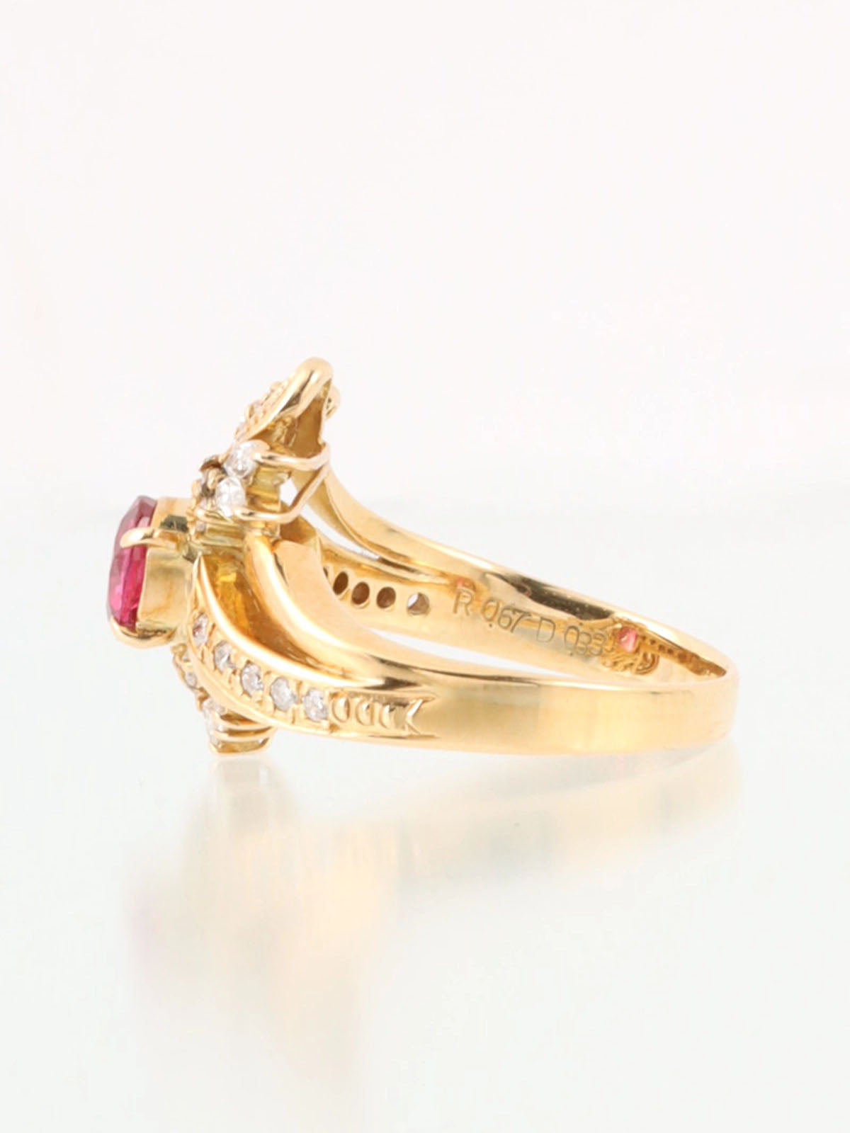 18Kダイヤモンドルビーデザインリング ゴールド/チェーリーレッド