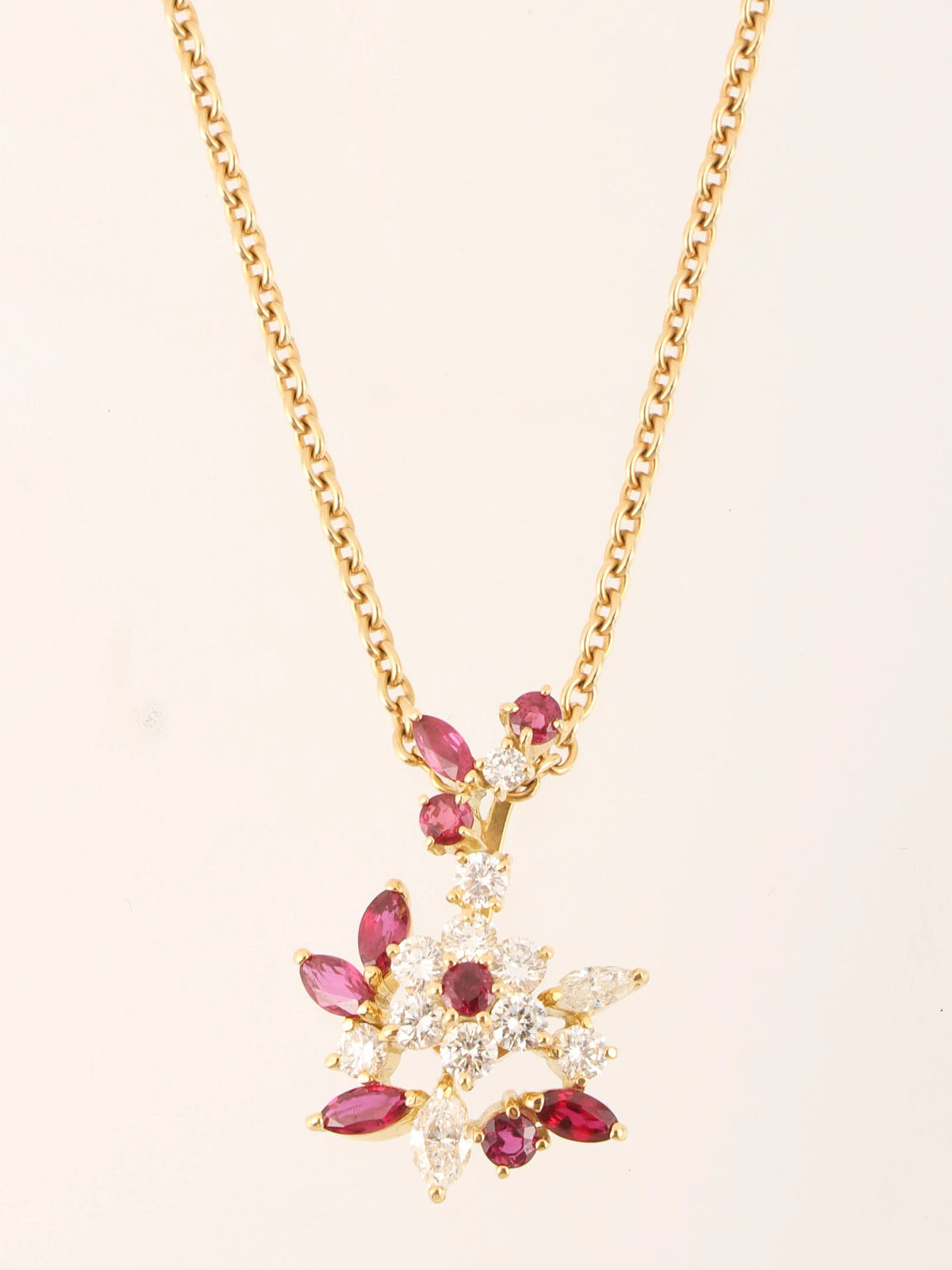 WALTHAM 18Kダイヤモンドルビーフラワーモチーフスイングネックレス チェリーレッド/ゴールド