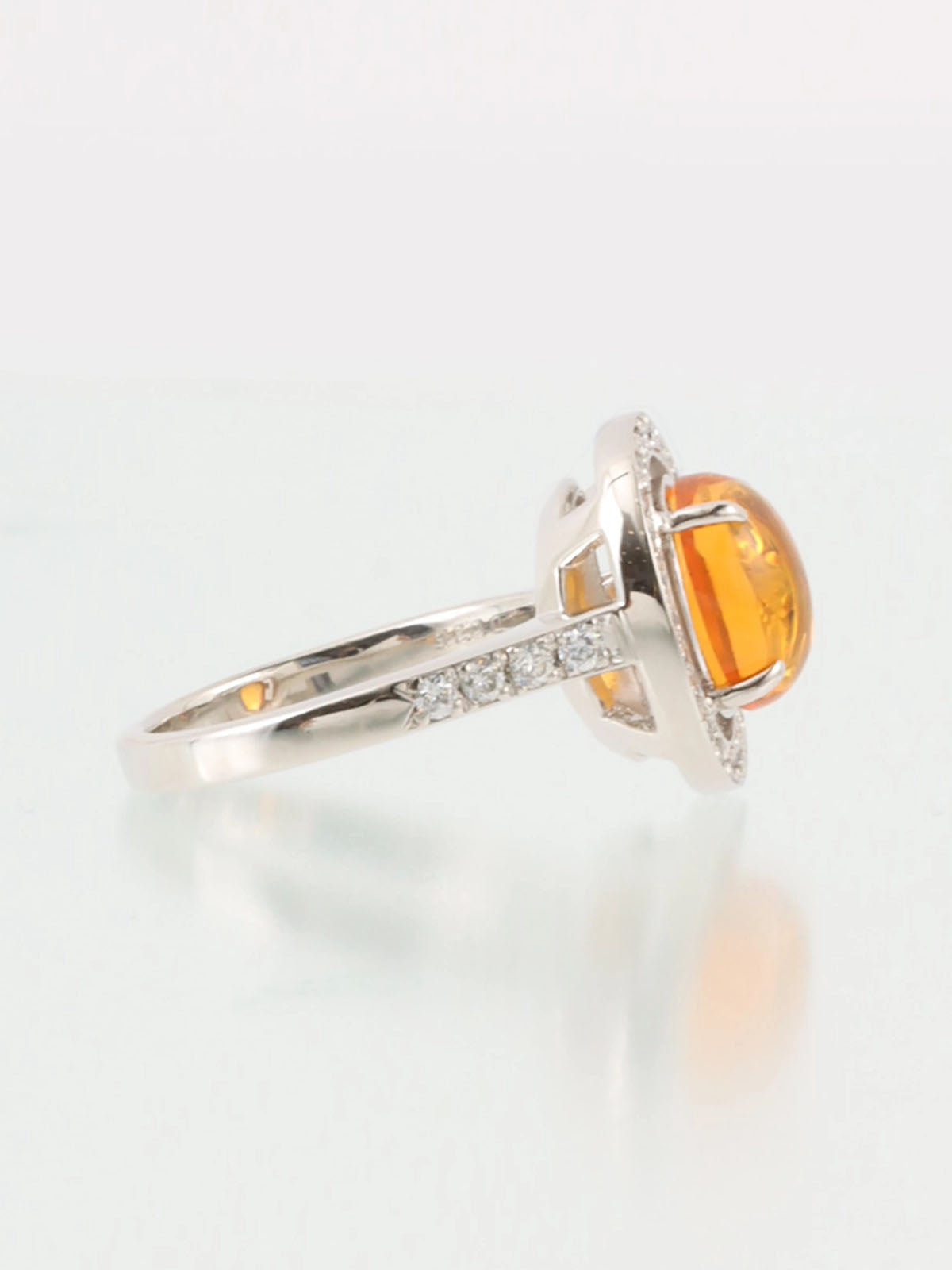 プラチナダイヤモンドファイヤーオパールリング シルバー/オレンジ