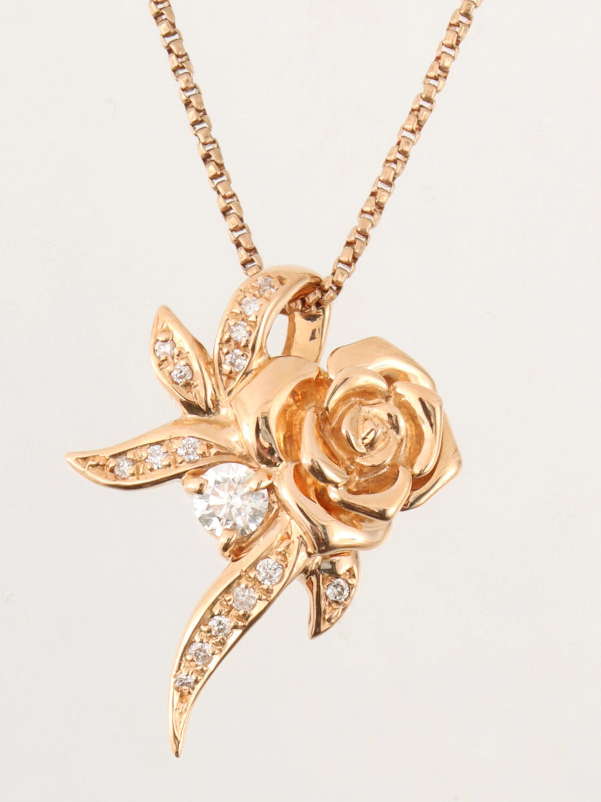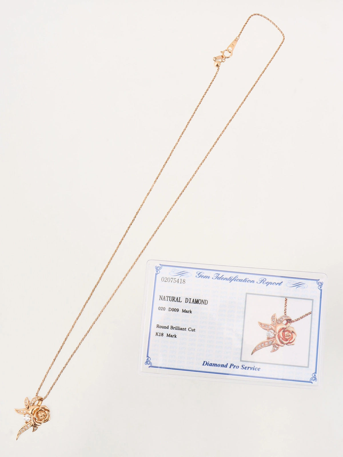18Kダイヤモンドローズモチーフネックレス ピンクゴールド