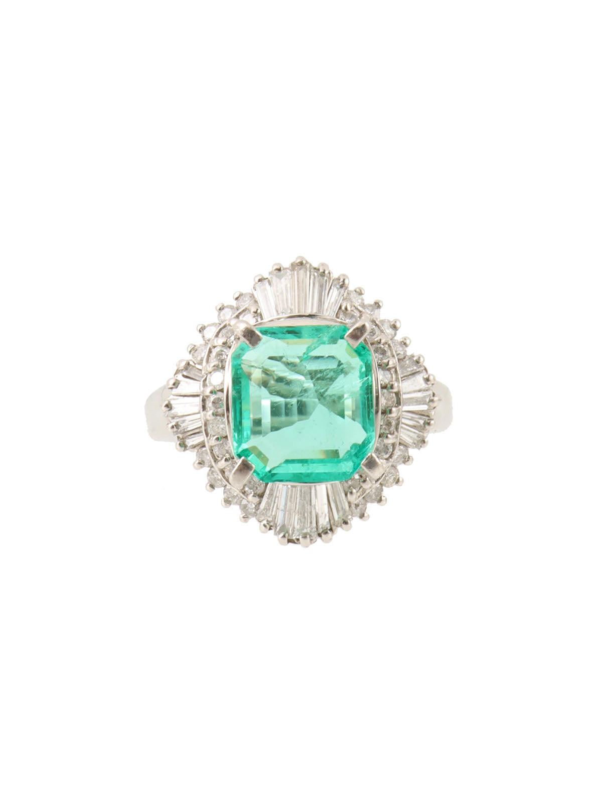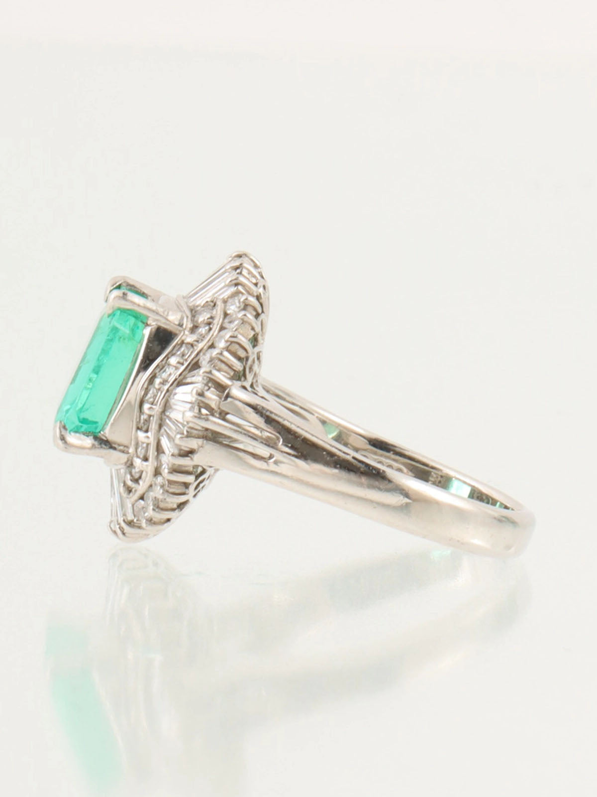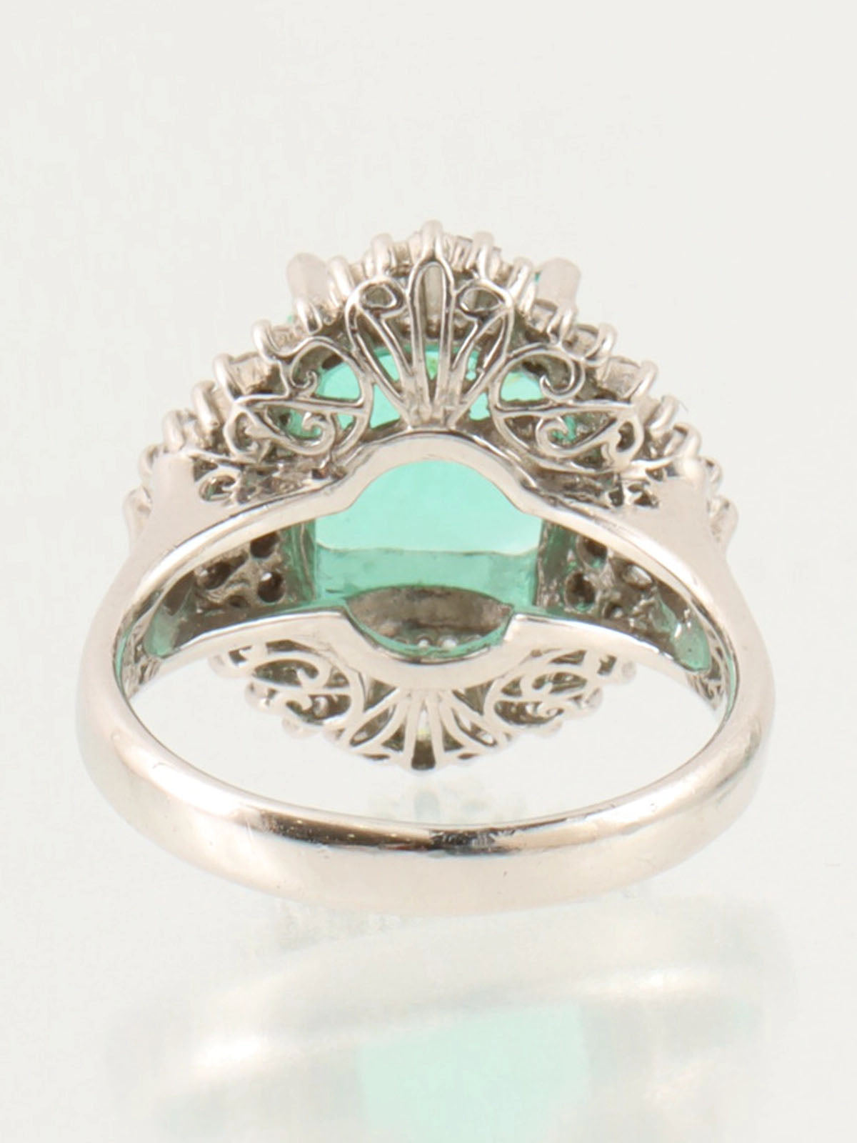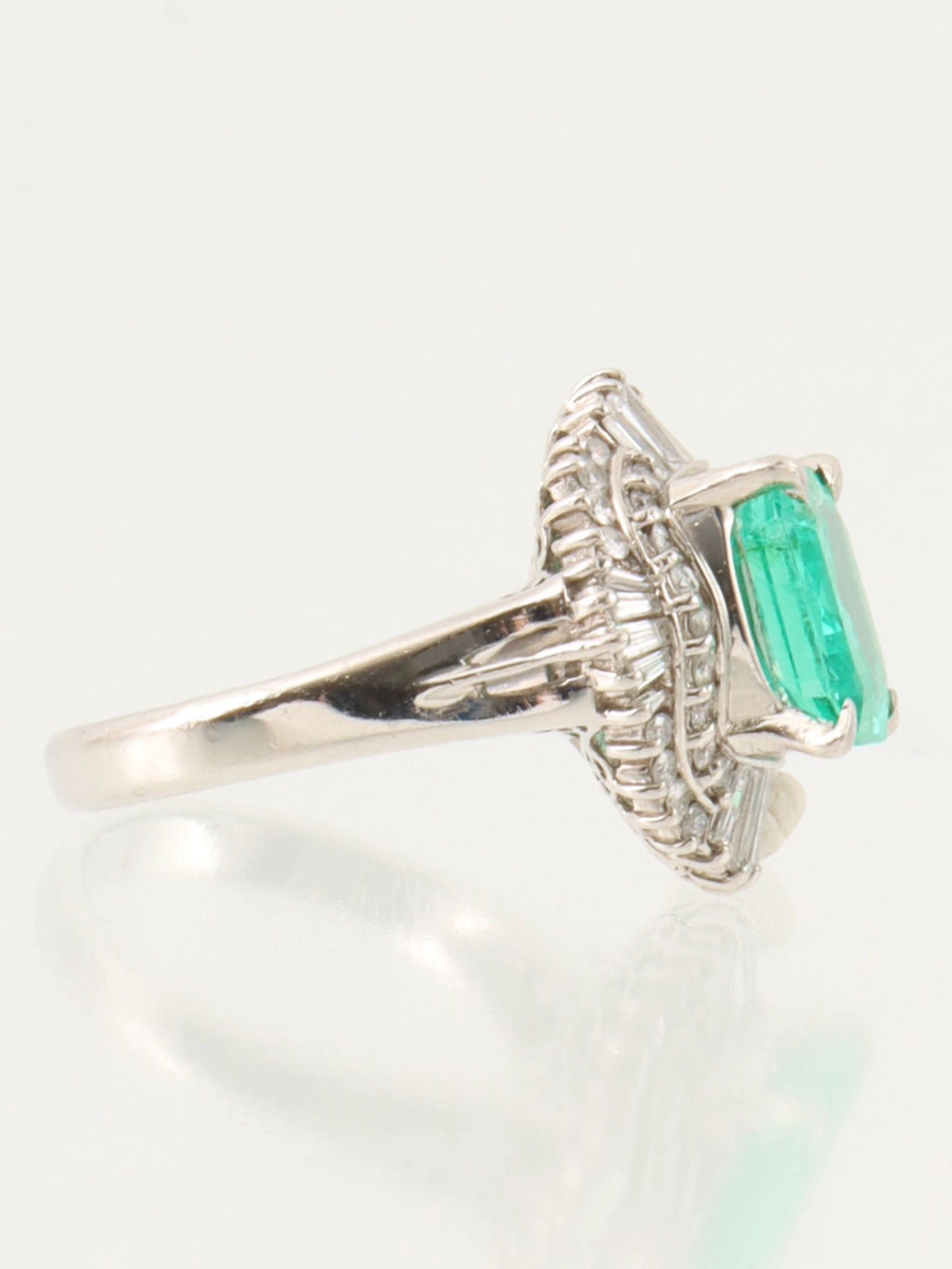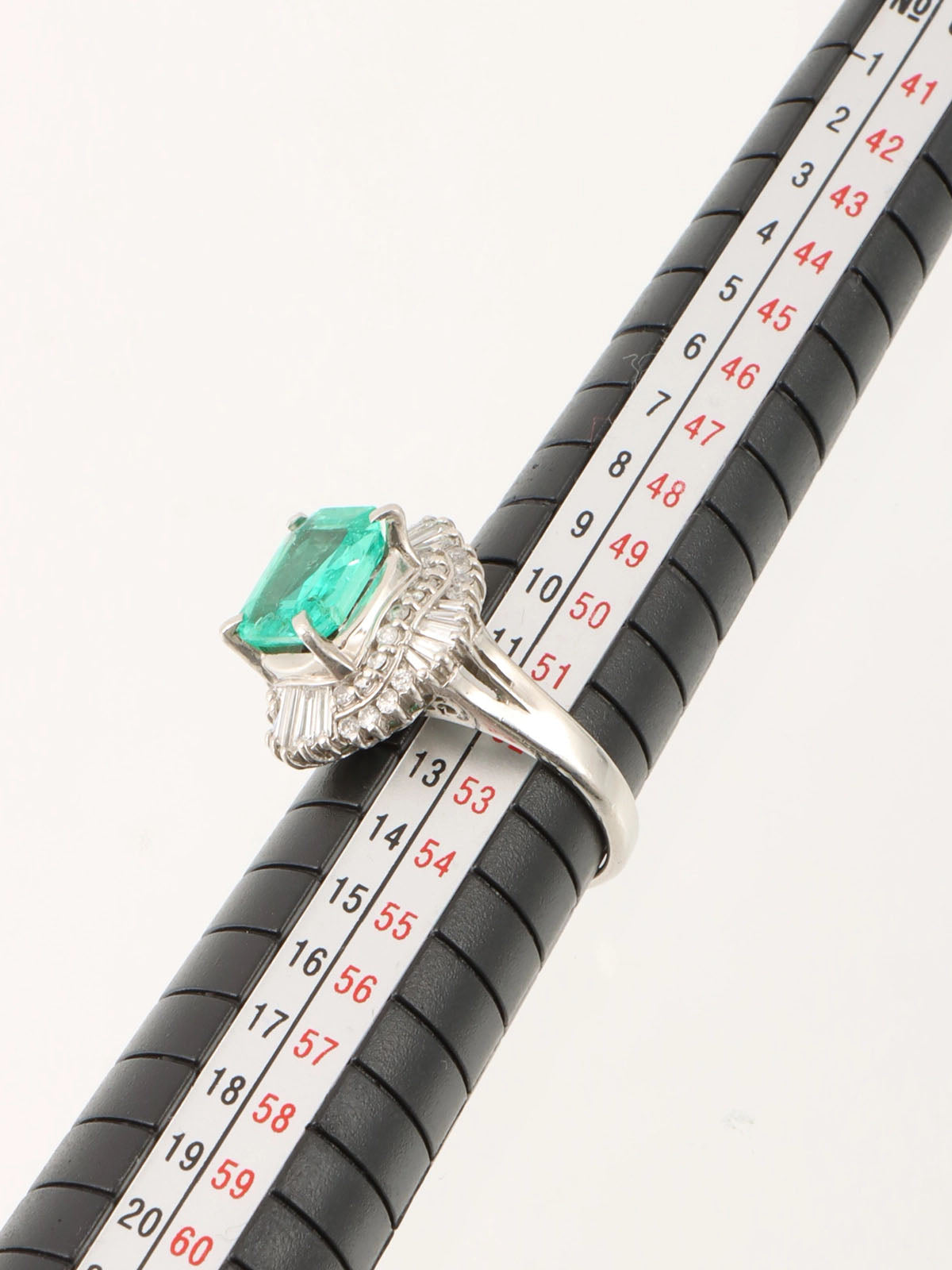 プラチナエメラルドダイヤモンドデザインリング シルバー/グリーン