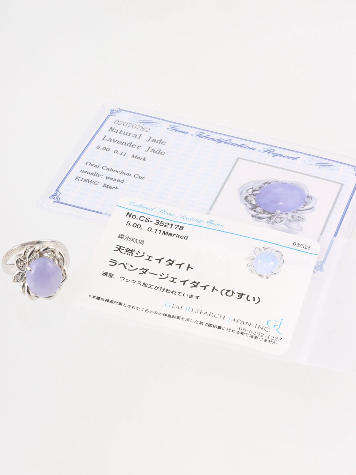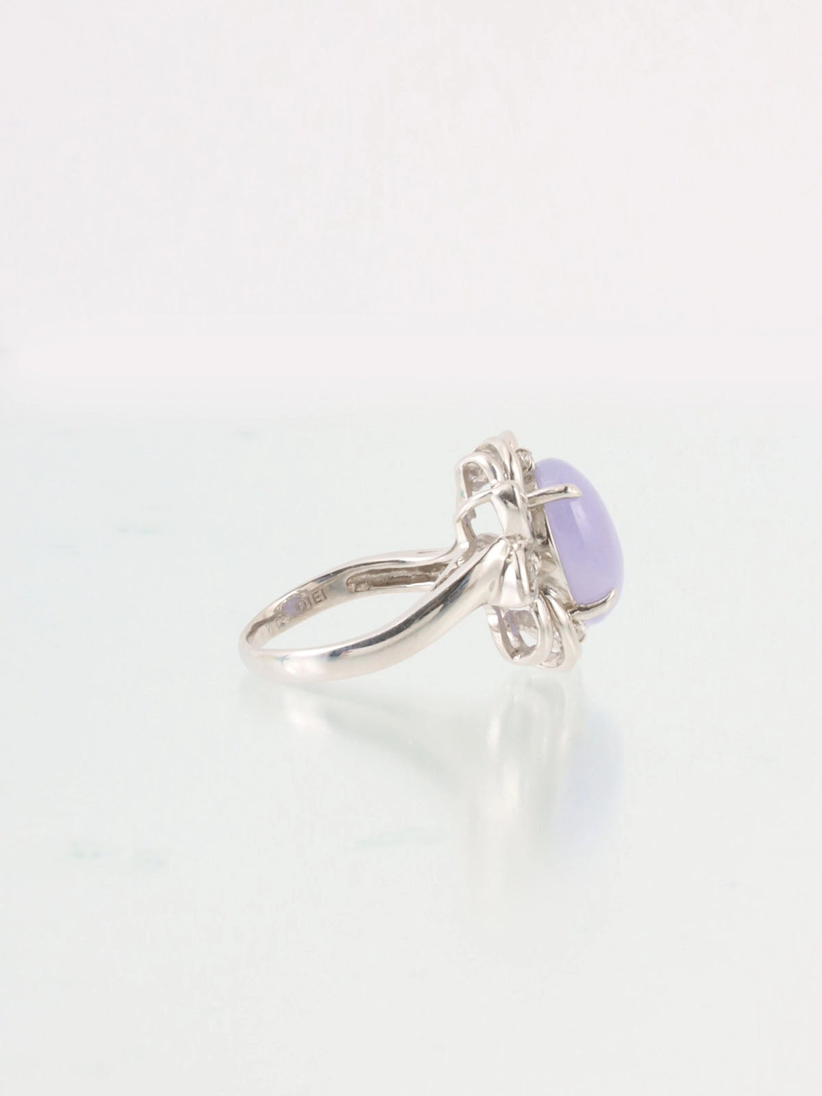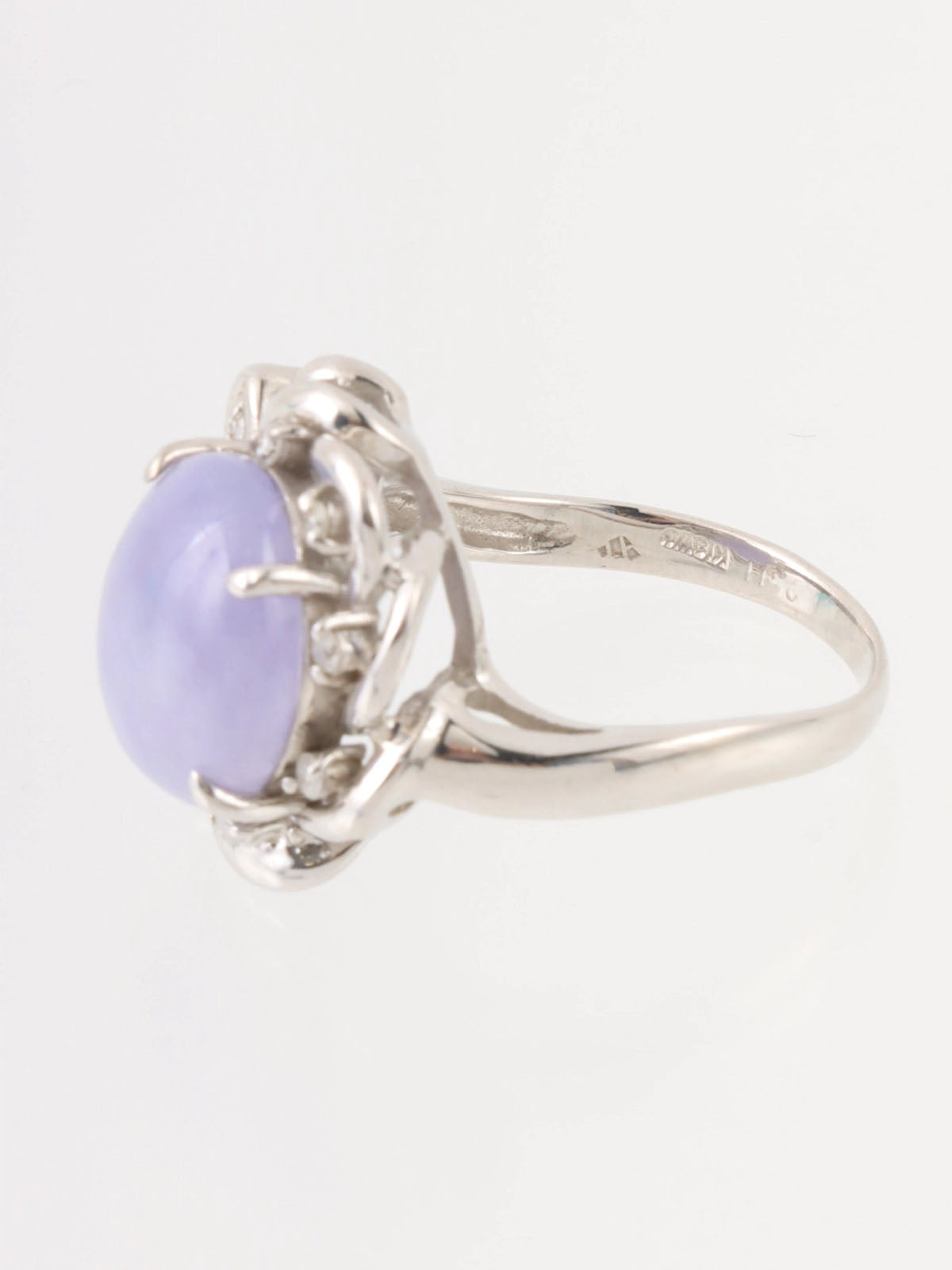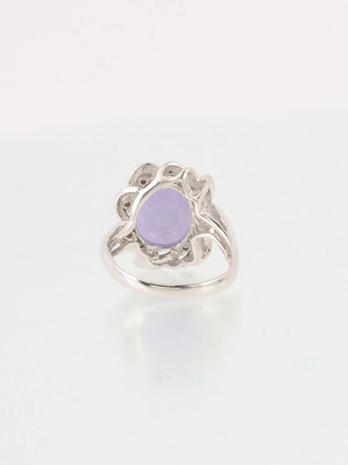 18Kダイヤモンドジェイダイトオーバルデザインリング シルバー/ラベンダー