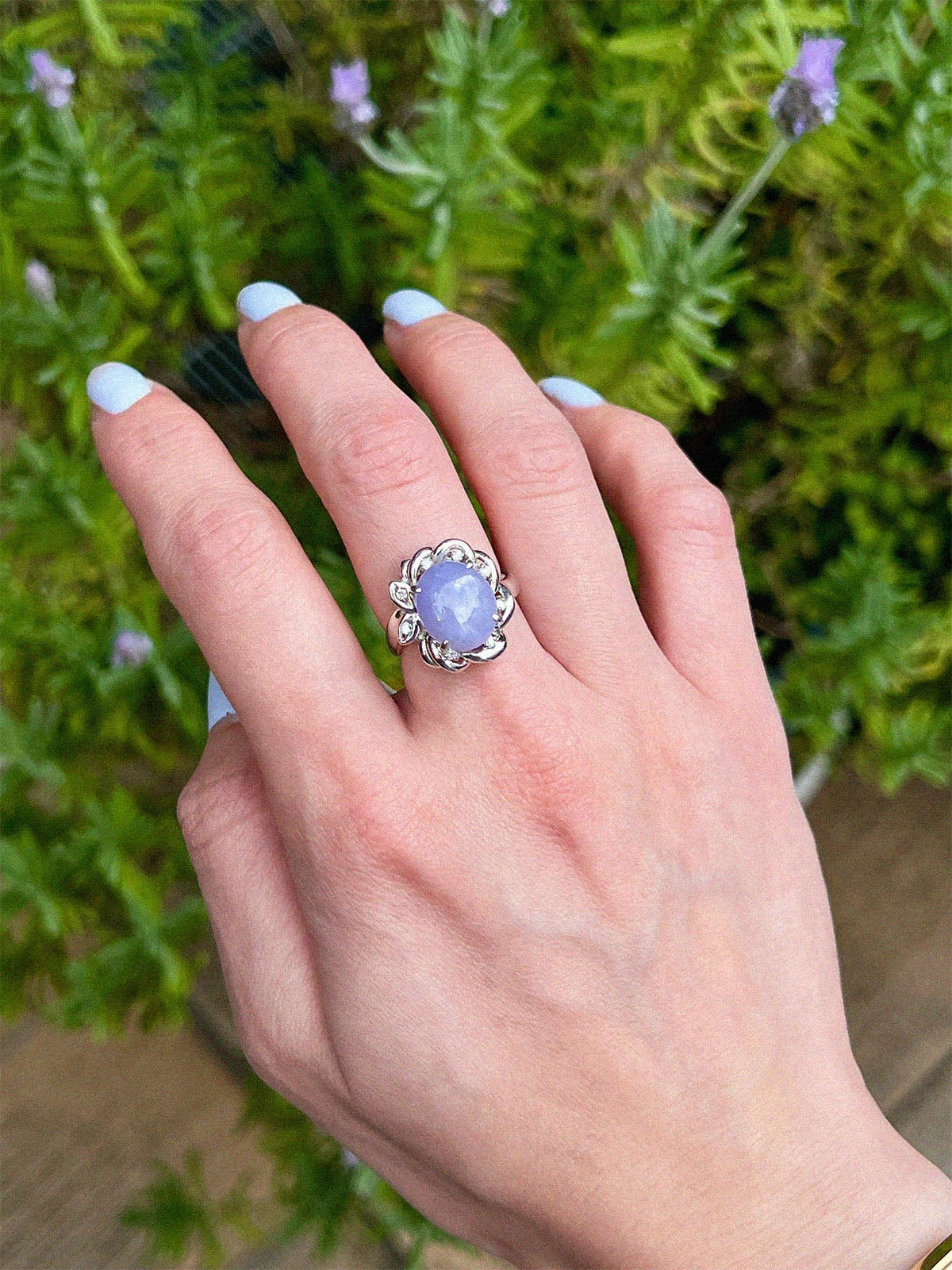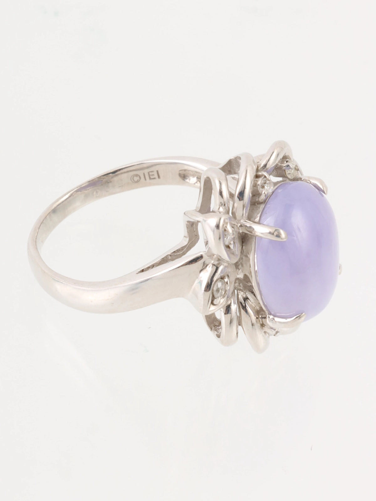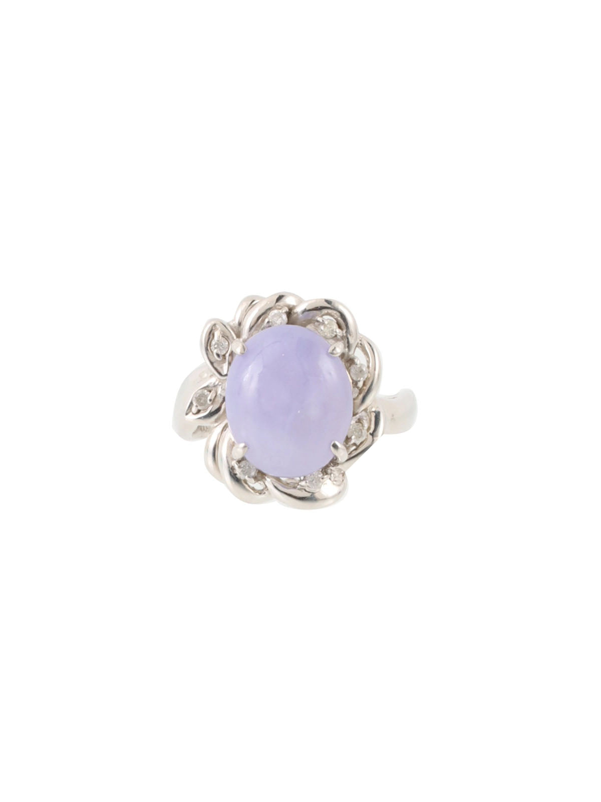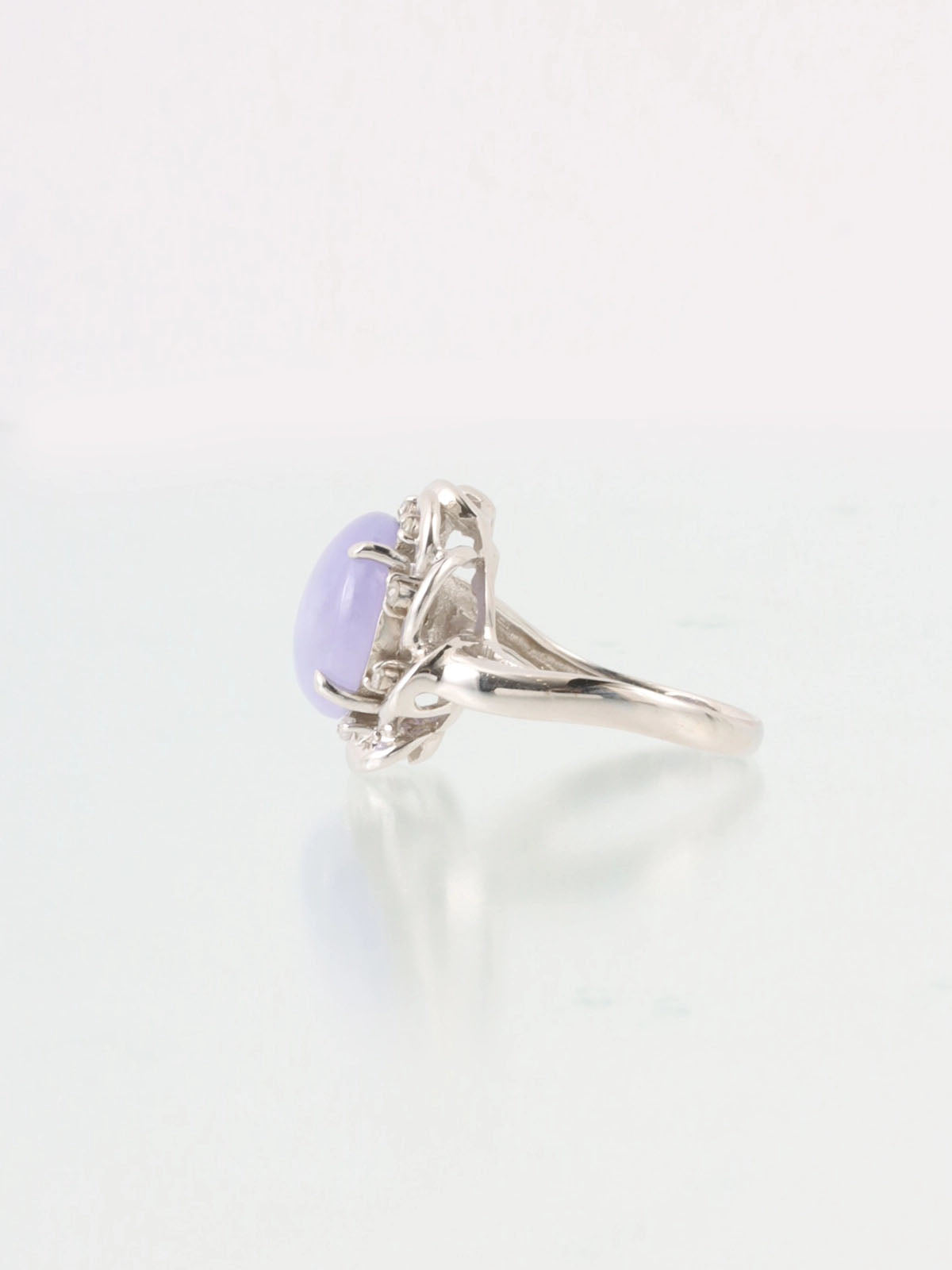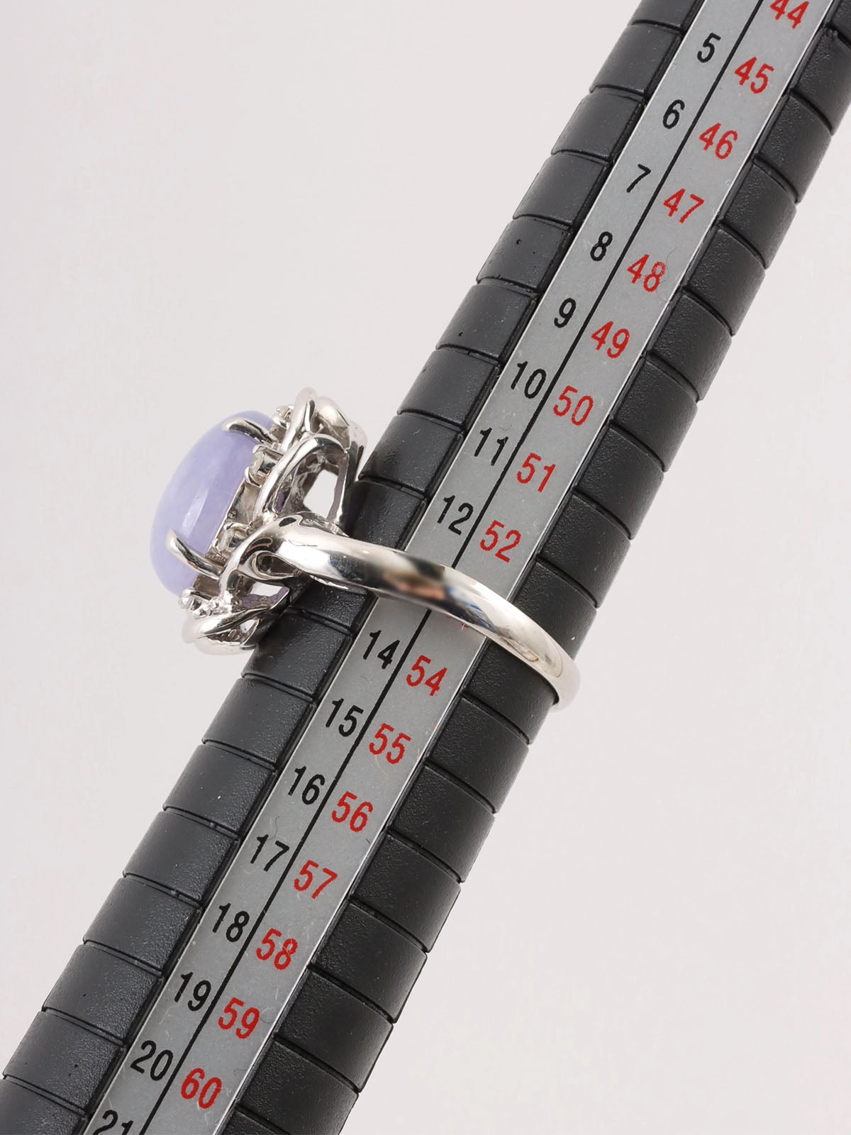 18Kダイヤモンドジェイダイトオーバルデザインリング シルバー/ラベンダー