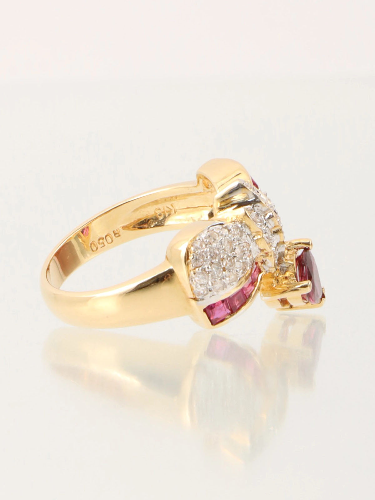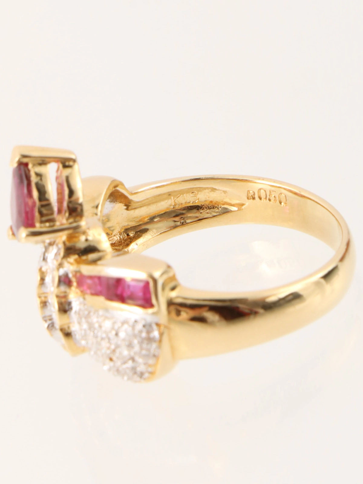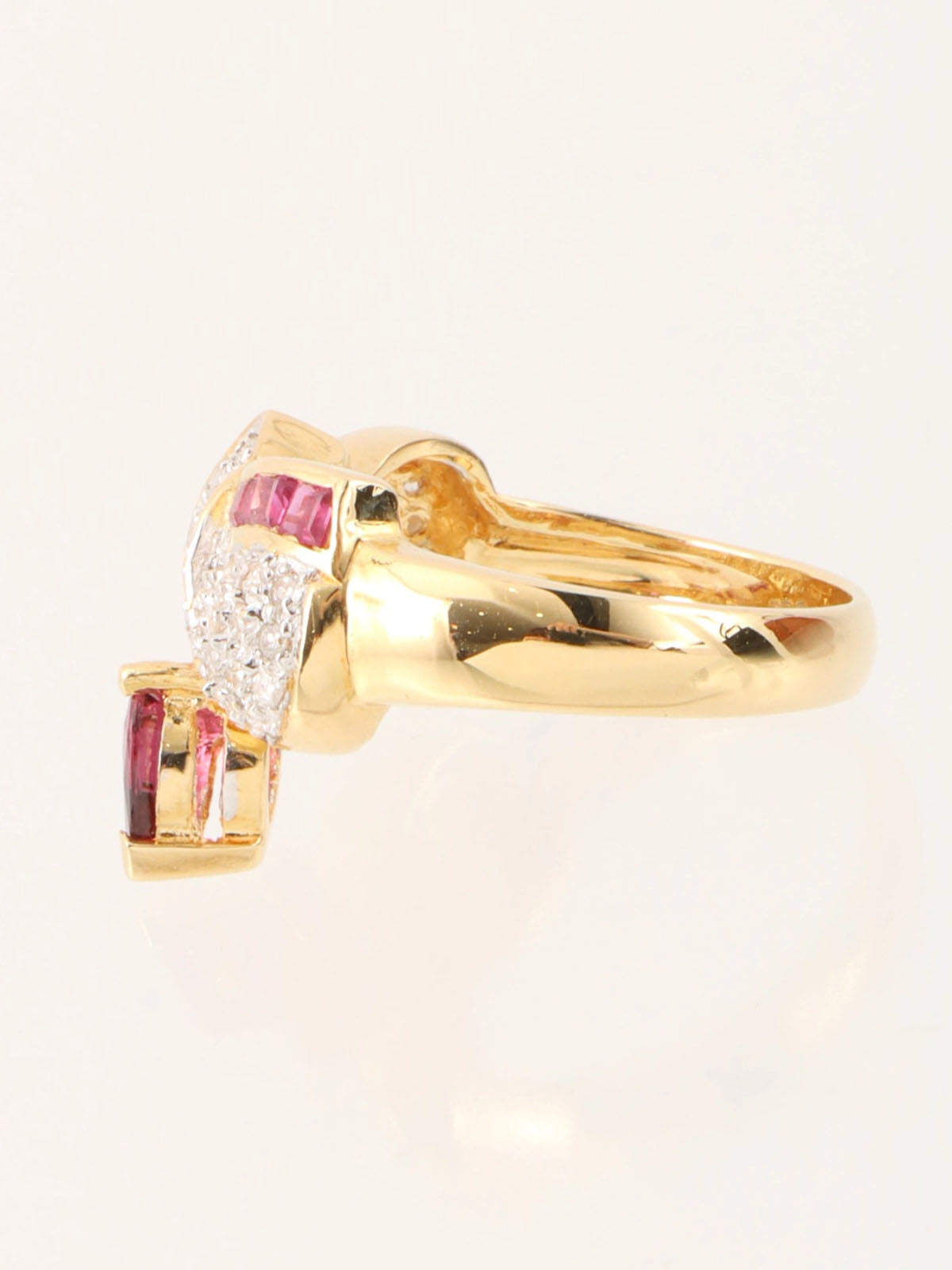 18Kダイヤモンドルビーデザインモチーフリング ゴールド/ピンク