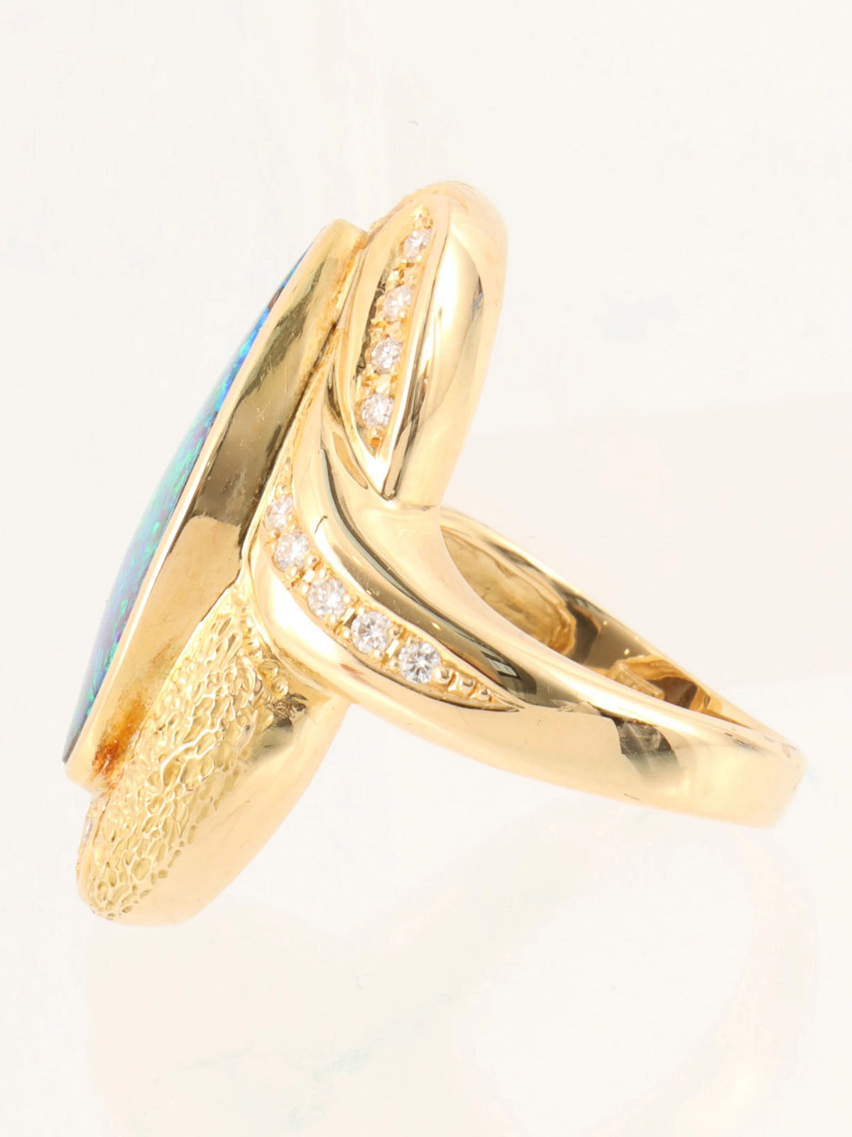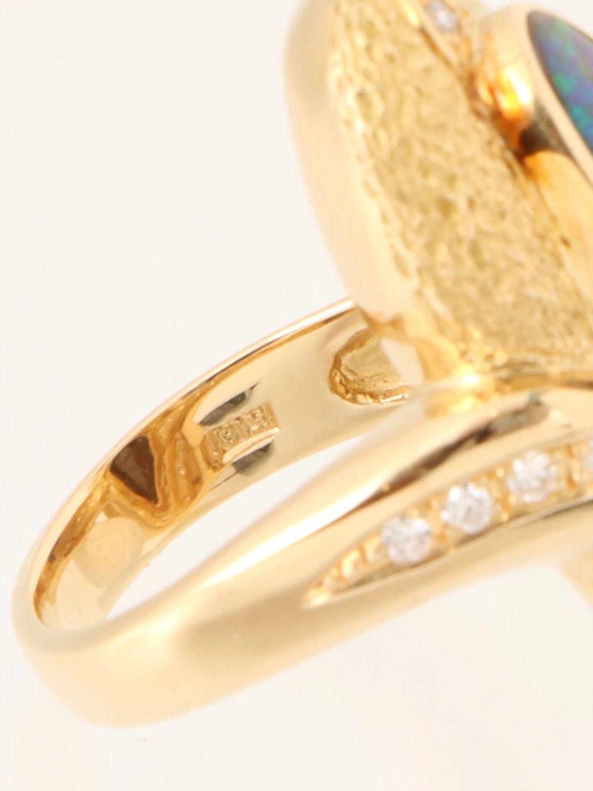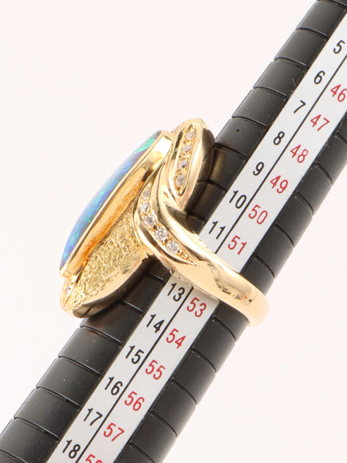 18Kダイヤモンドブラックオパールデザインリング ゴールド/グリーン