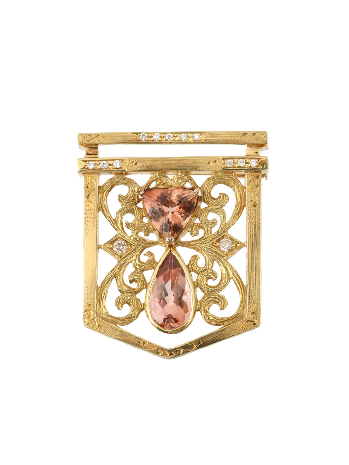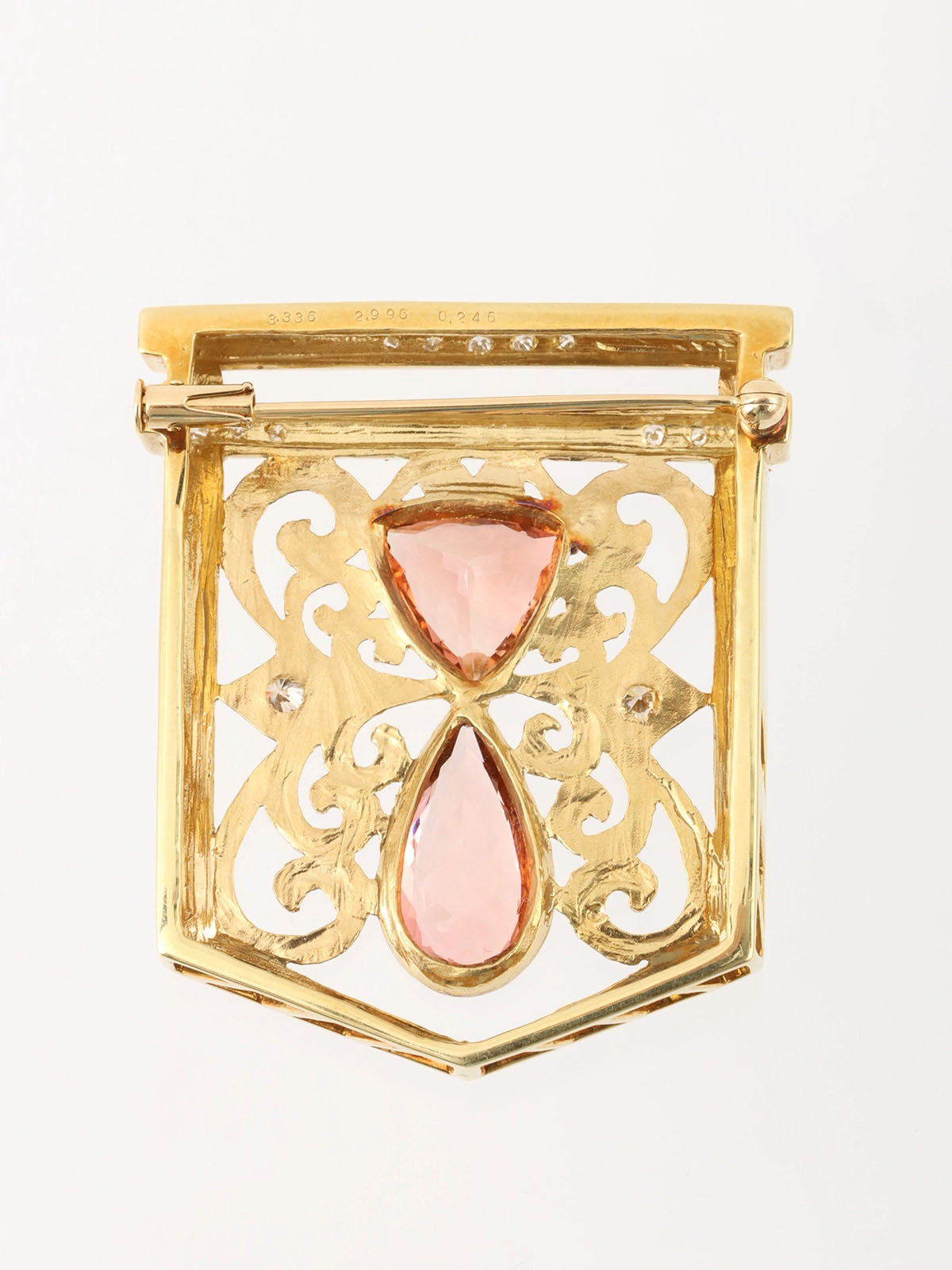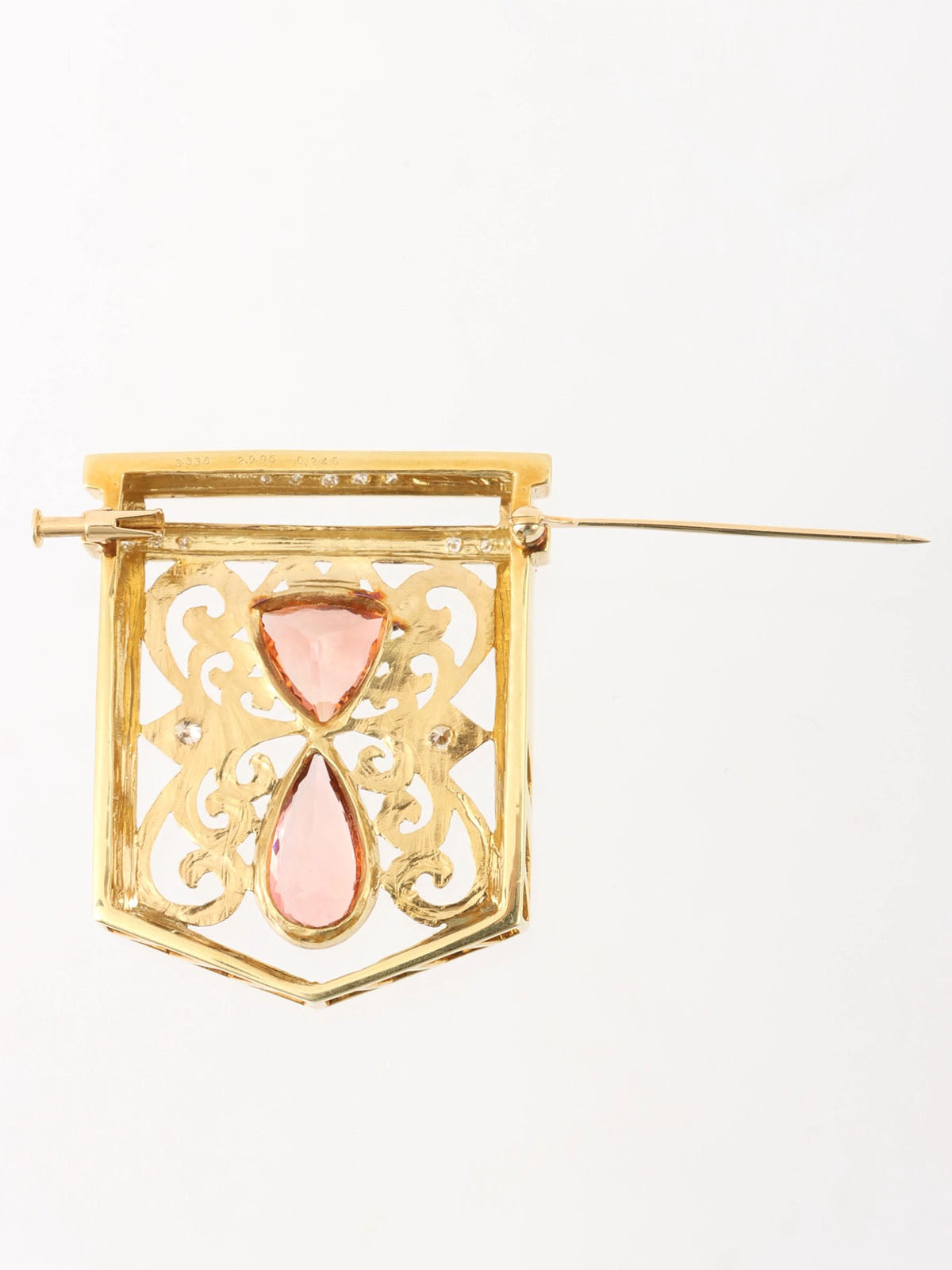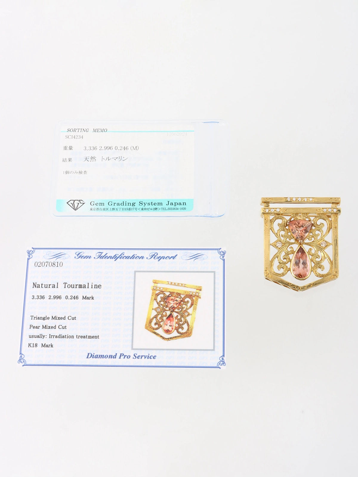18Kトルマリンダイヤモンドデザインブローチ ピンク/ゴールド