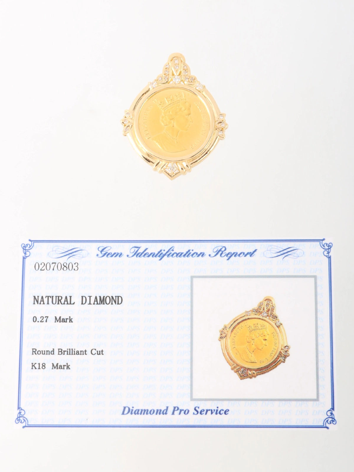 1995年製 18Kダイヤモンドクイーンエリザベスペンダントトップ ゴールド