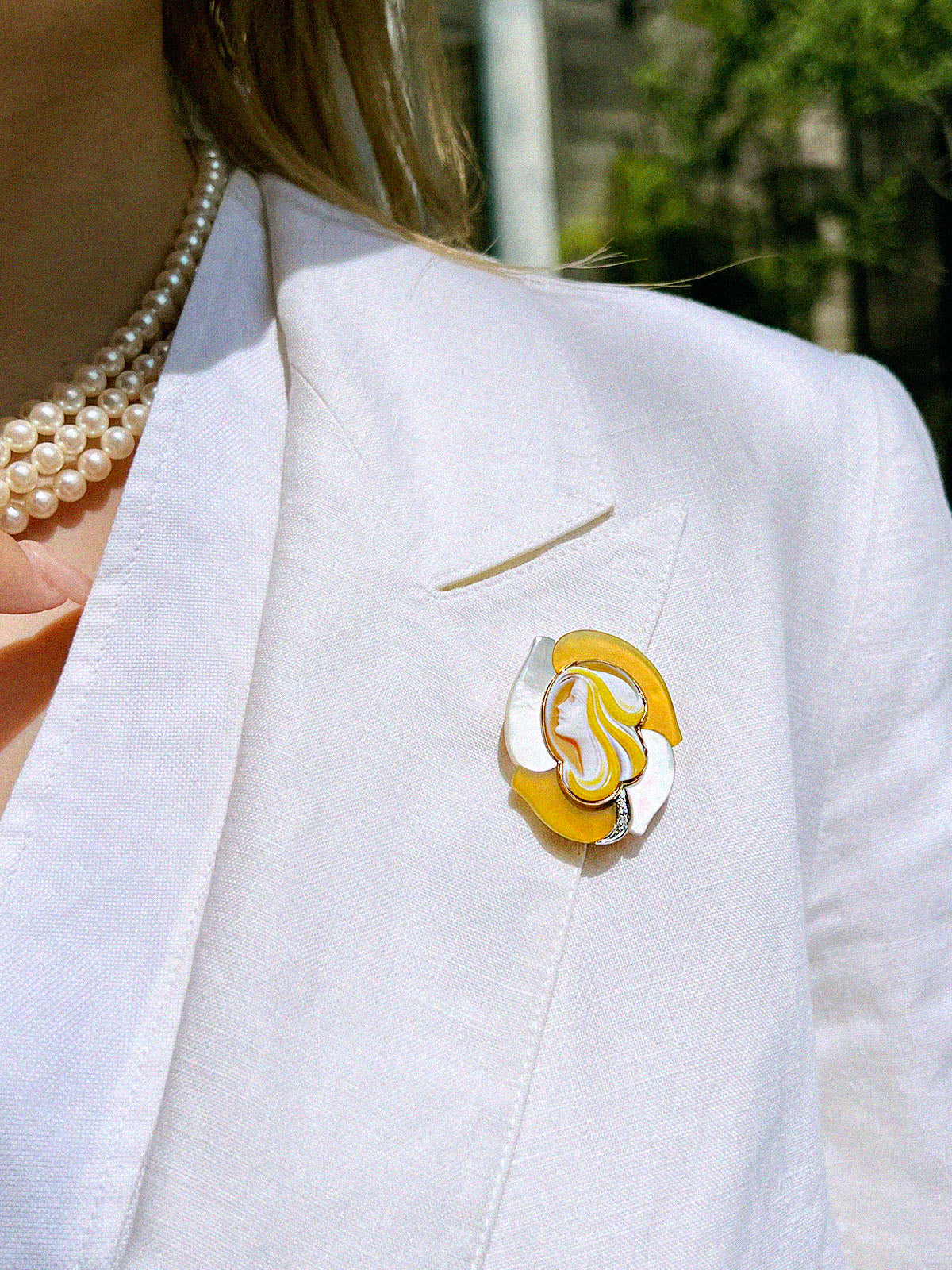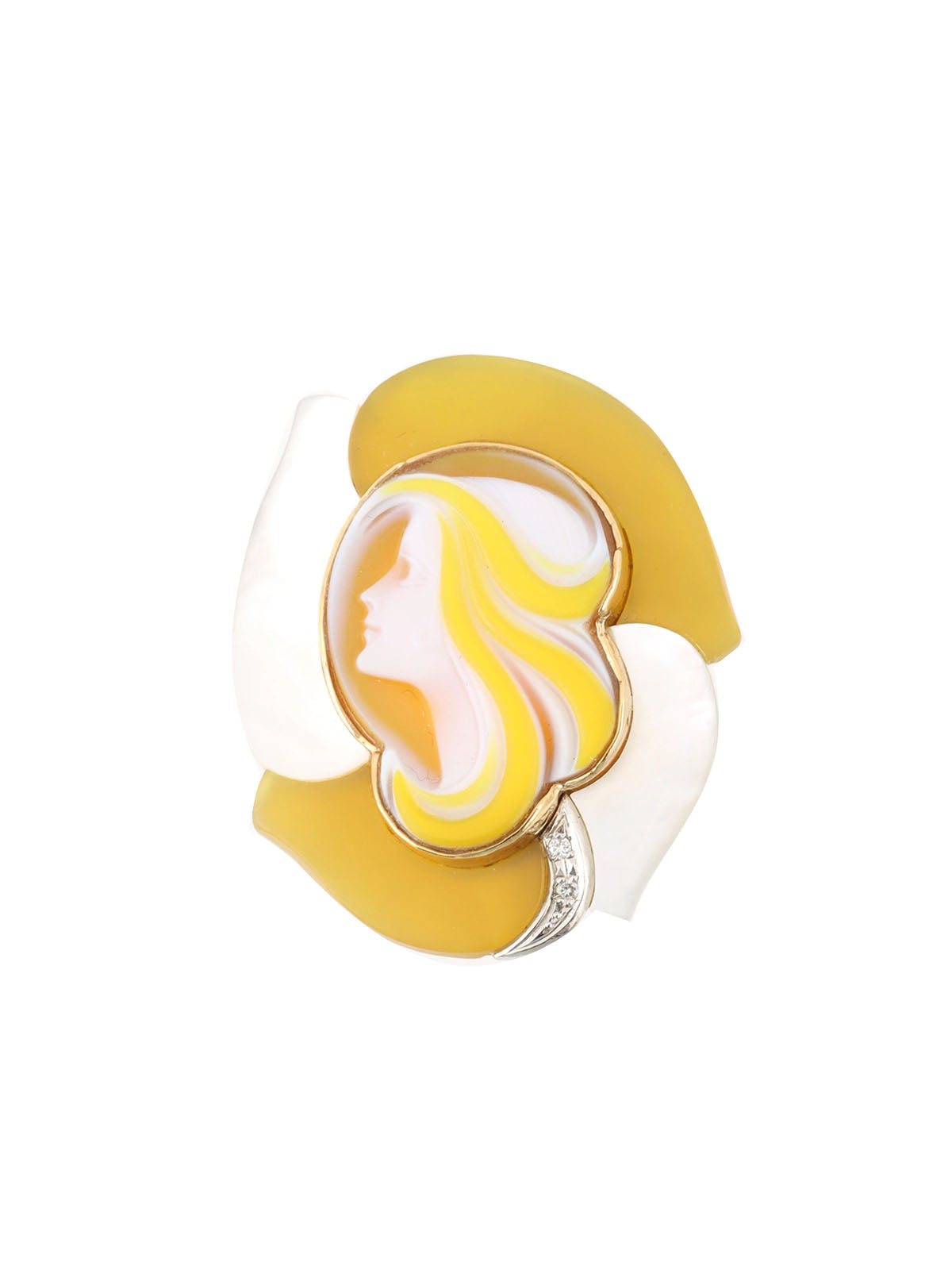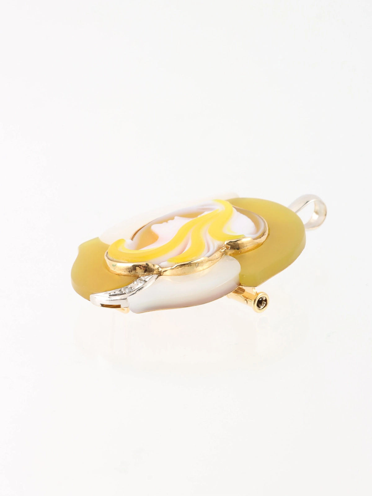 エルヴィンポーリー18Kプラチナダイヤモンドブローチ ゴールド/イエロー/シェル
