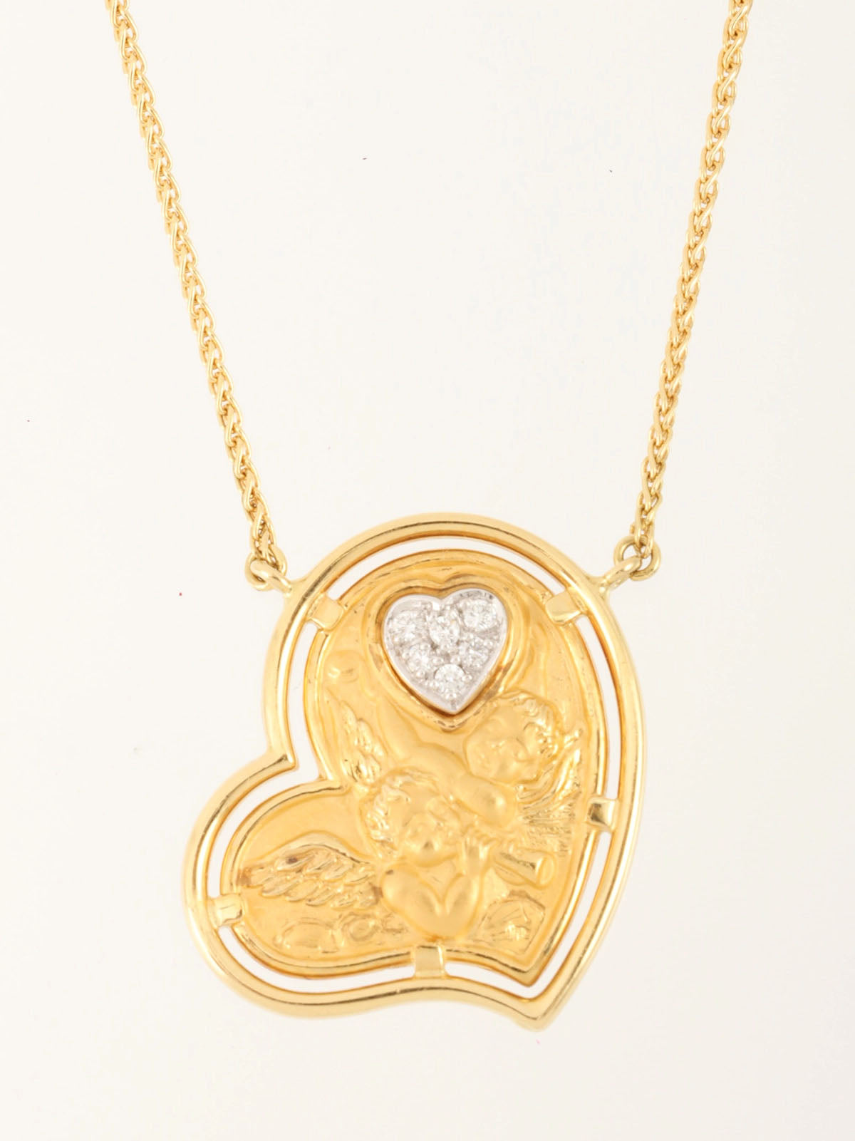 Carrera y Carrera 18Kダイヤモンドハートエンジェルネックレス ゴールド